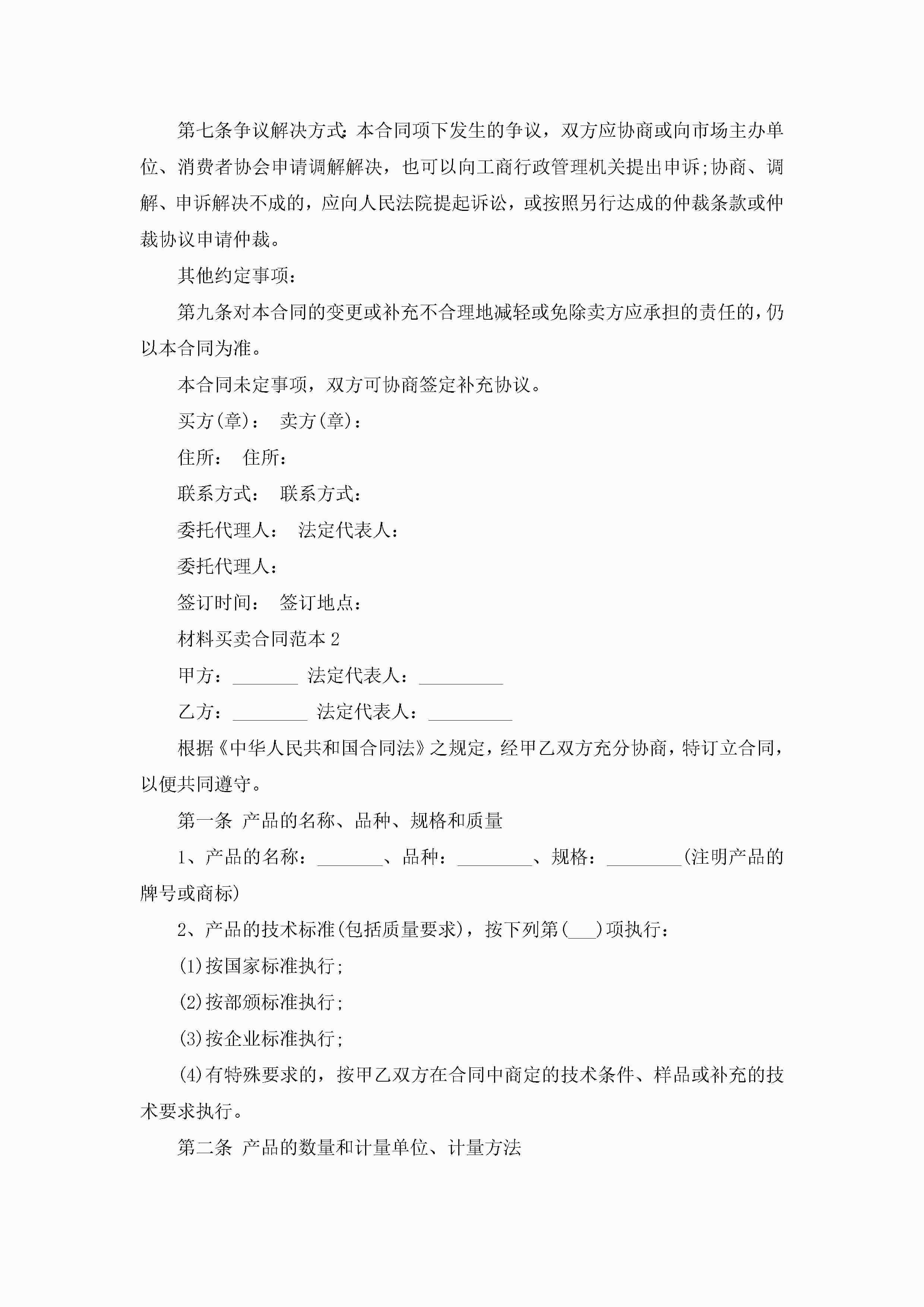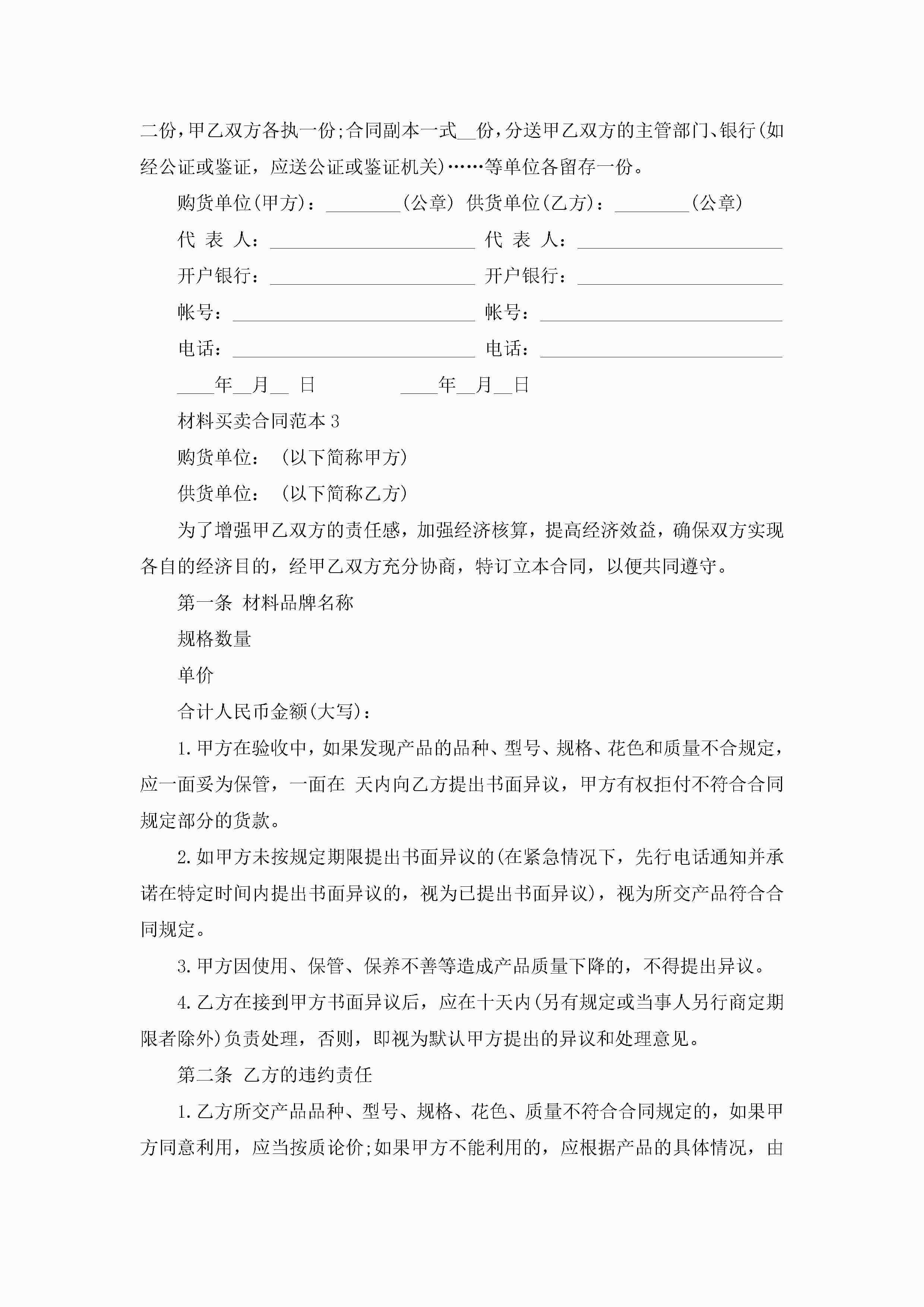材料买卖合同范本5篇jugei3月23日 01:38发布关注191 材料买卖合同范本5篇此内容为付费资源,请付费后查看¥10.9 单篇文档限时特惠¥15个人会员开通企业会员开通立即下载无需登陆!可直接快捷下载单个模板付费资源© 版权声明THE ENDWord模板# 实用文档# 实用模板# 合同模板# 买卖合同 如有问题,可点击最底部“联系我们”联系客服 分享QQ空间微博QQ好友海报分享复制链接收藏