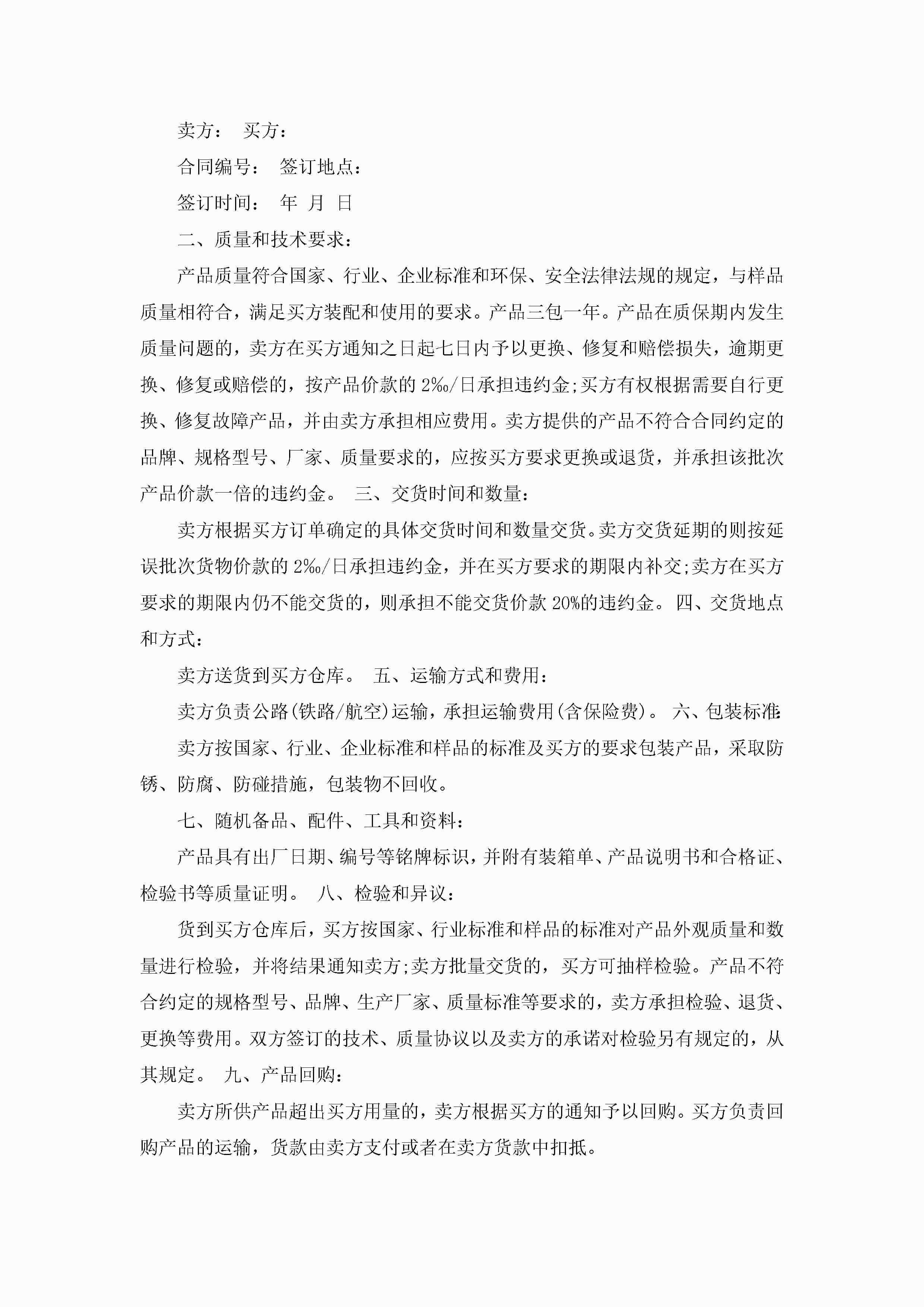 产品买卖合同模板5篇jugei3月23日 01:38发布关注254 产品买卖合同模板5篇此内容为付费资源,请付费后查看¥10.9 单篇文档限时特惠¥15个人会员开通企业会员开通立即下载无需登陆!可直接快捷下载单个模板付费资源© 版权声明THE ENDWord模板# 实用文档# 实用模板# 合同模板# 买卖合同 如有问题,可点击最底部“联系我们”联系客服 分享QQ空间微博QQ好友海报分享复制链接收藏