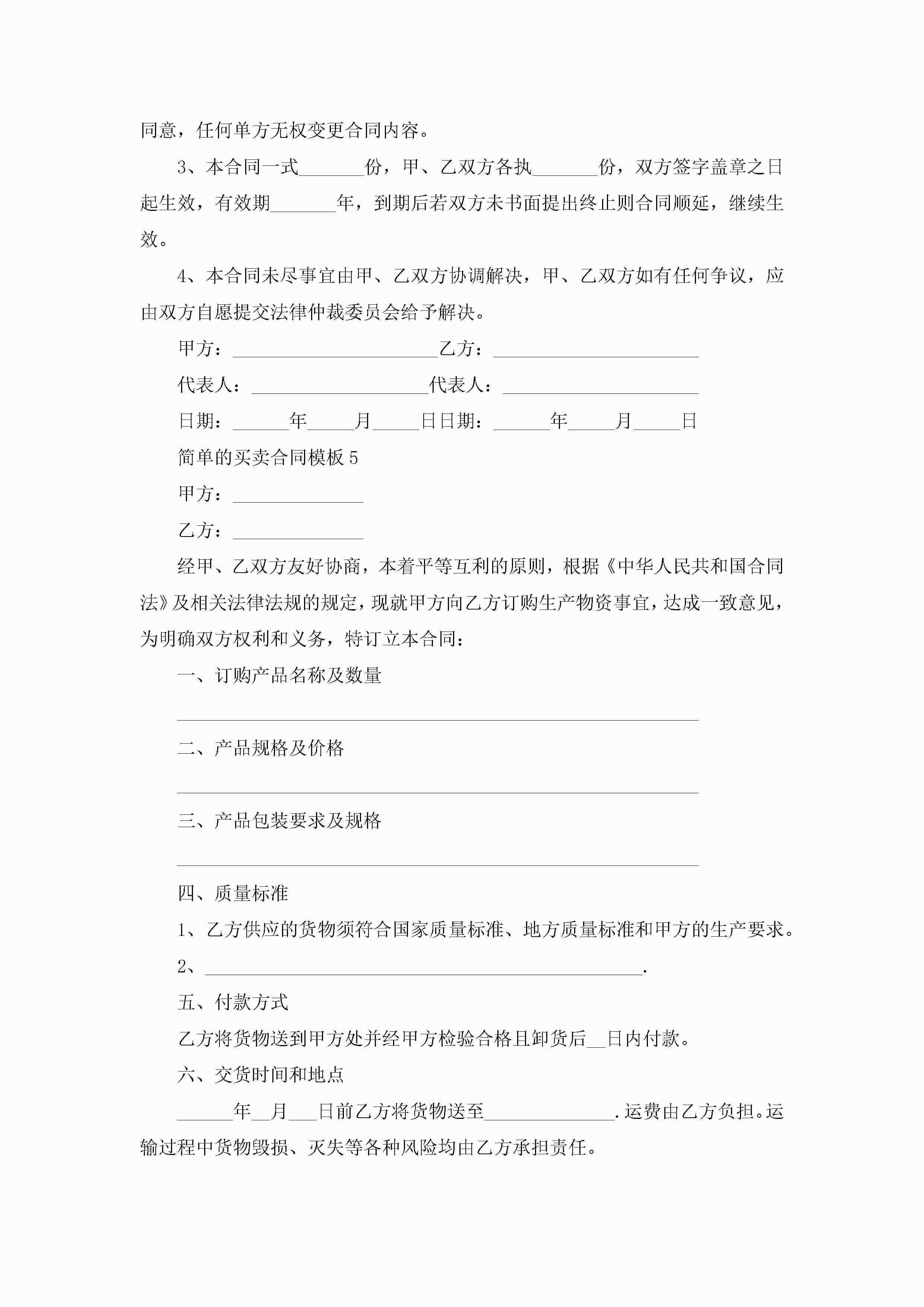 简单的买卖合同模板5篇jugei3月23日 01:38发布关注191 简单的买卖合同模板5篇此内容为付费资源,请付费后查看¥10.9 单篇文档限时特惠¥15个人会员开通企业会员开通立即下载无需登陆!可直接快捷下载单个模板付费资源© 版权声明THE ENDWord模板# 实用文档# 实用模板# 合同模板# 买卖合同 如有问题,可点击最底部“联系我们”联系客服 分享QQ空间微博QQ好友海报分享复制链接收藏