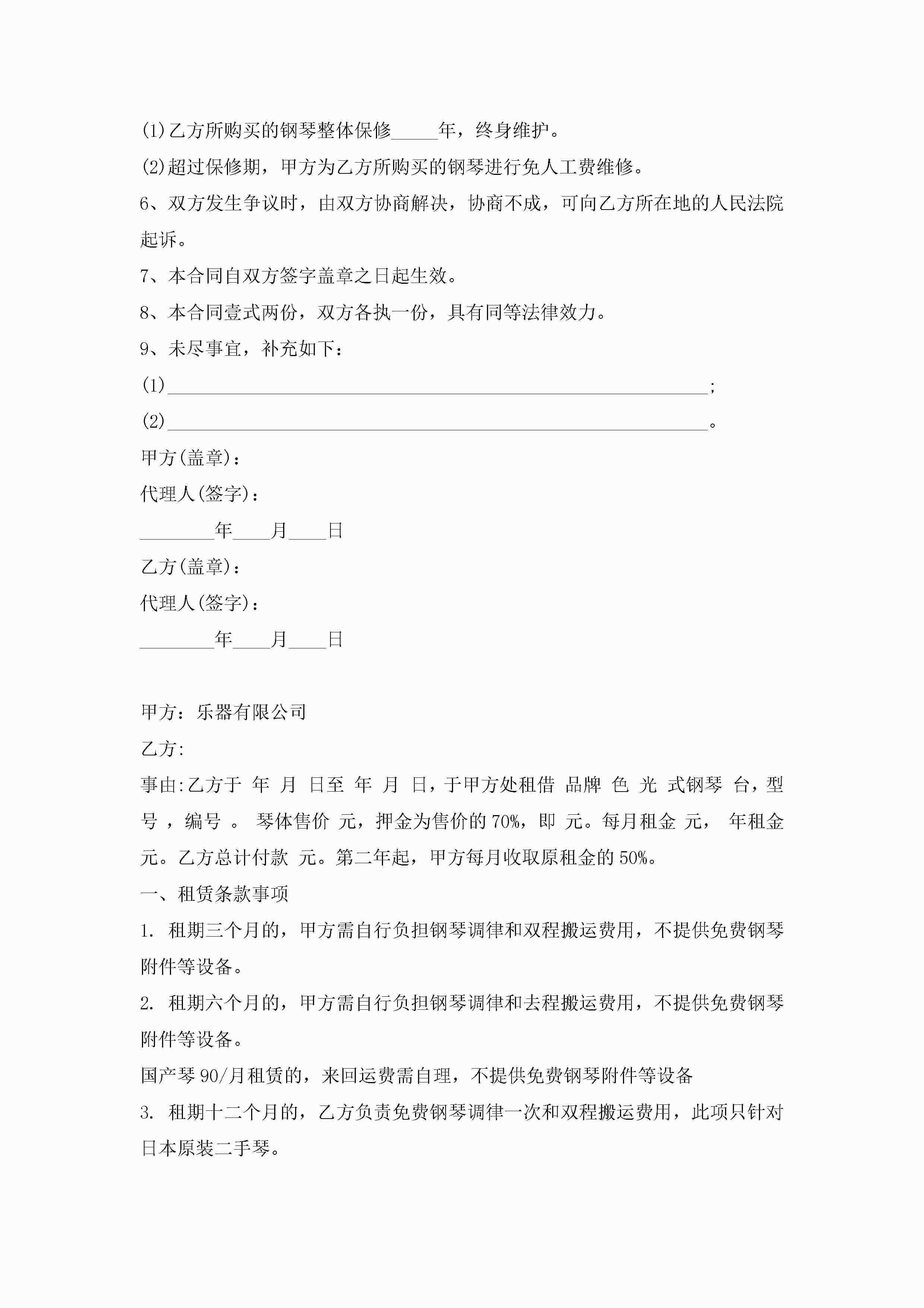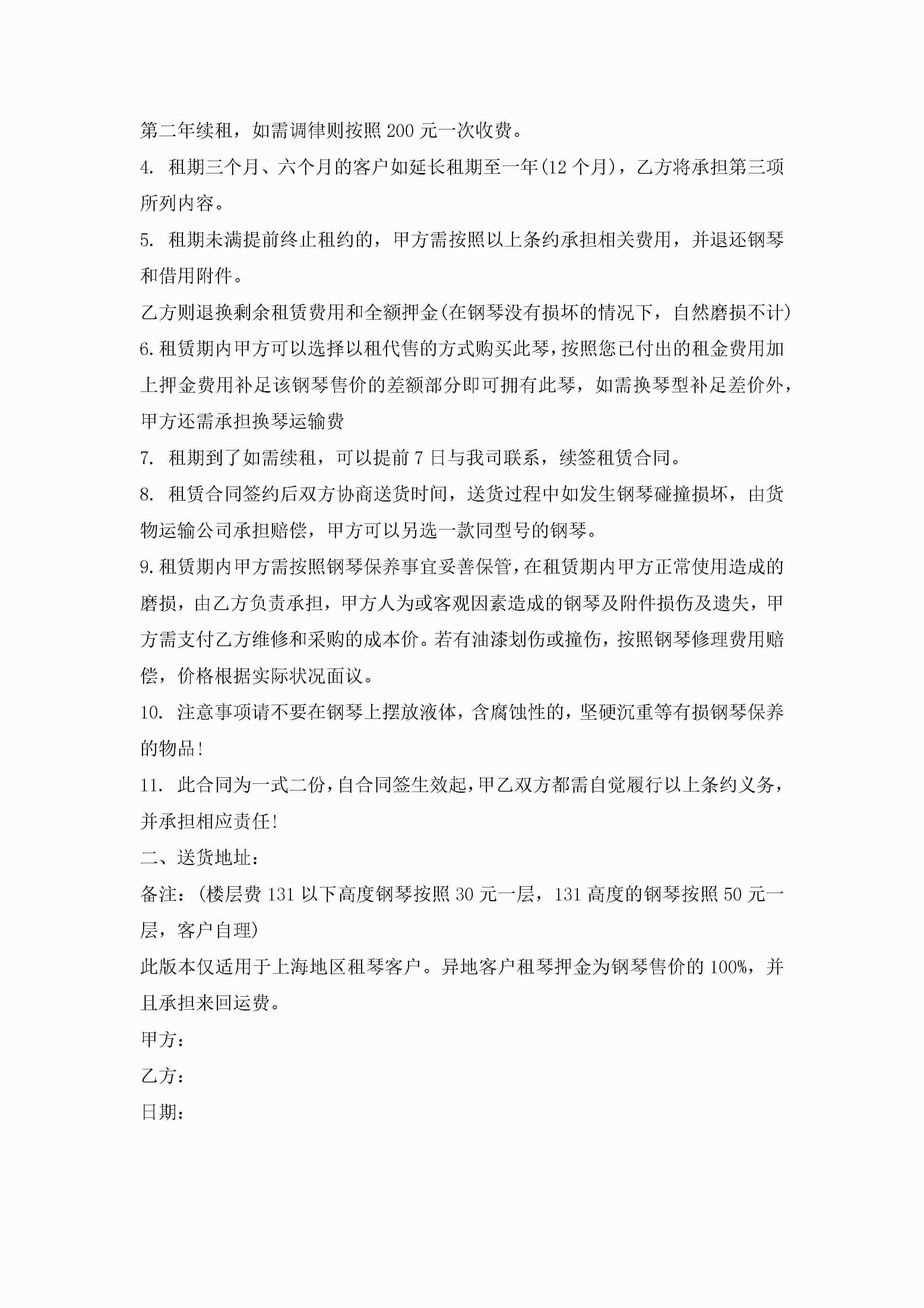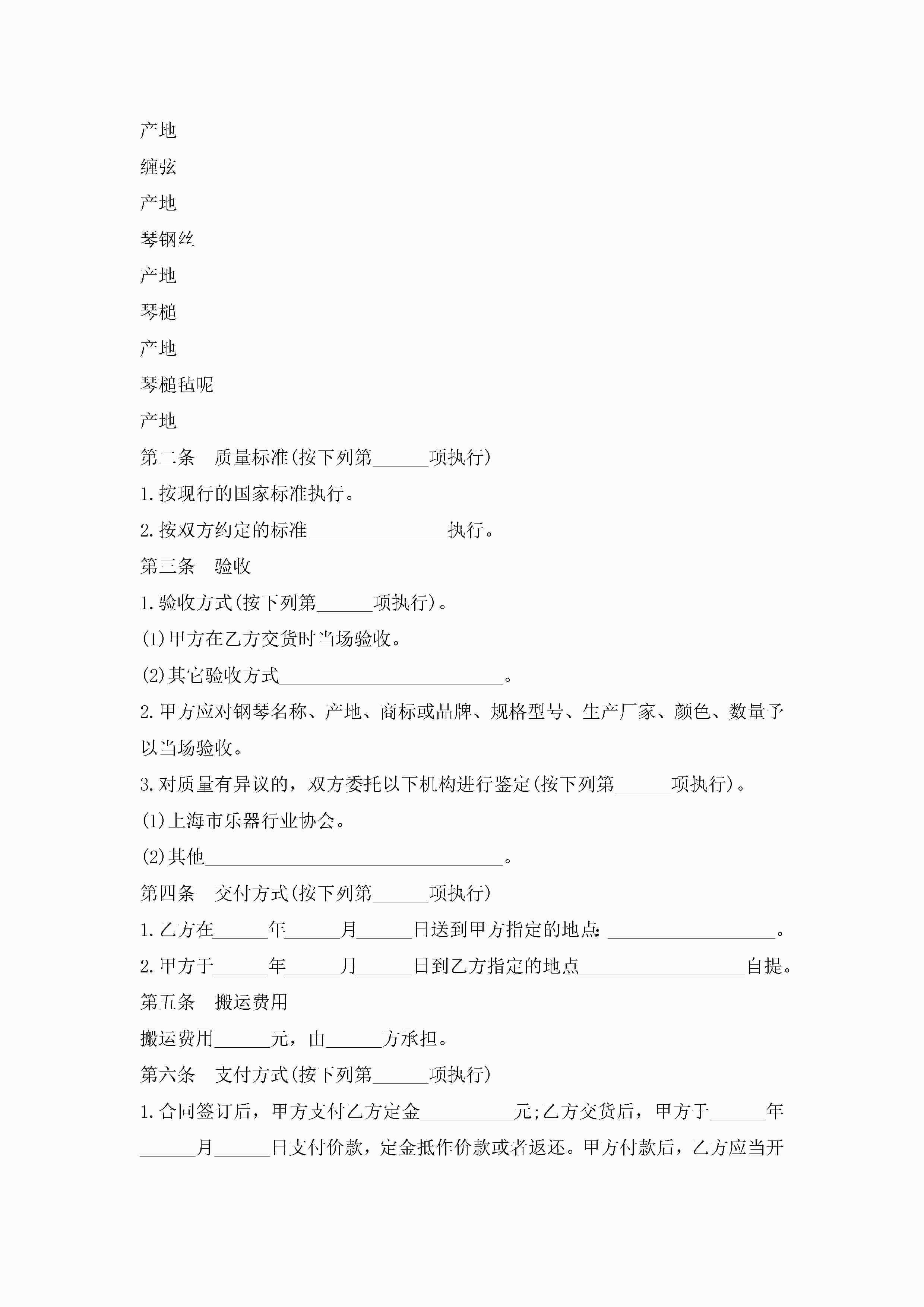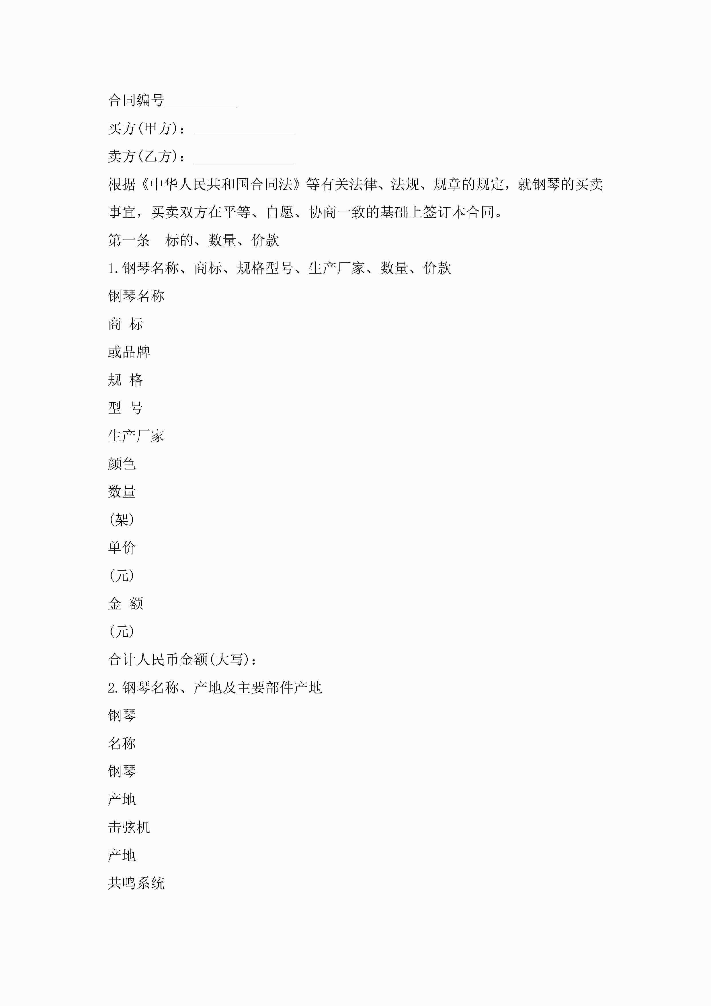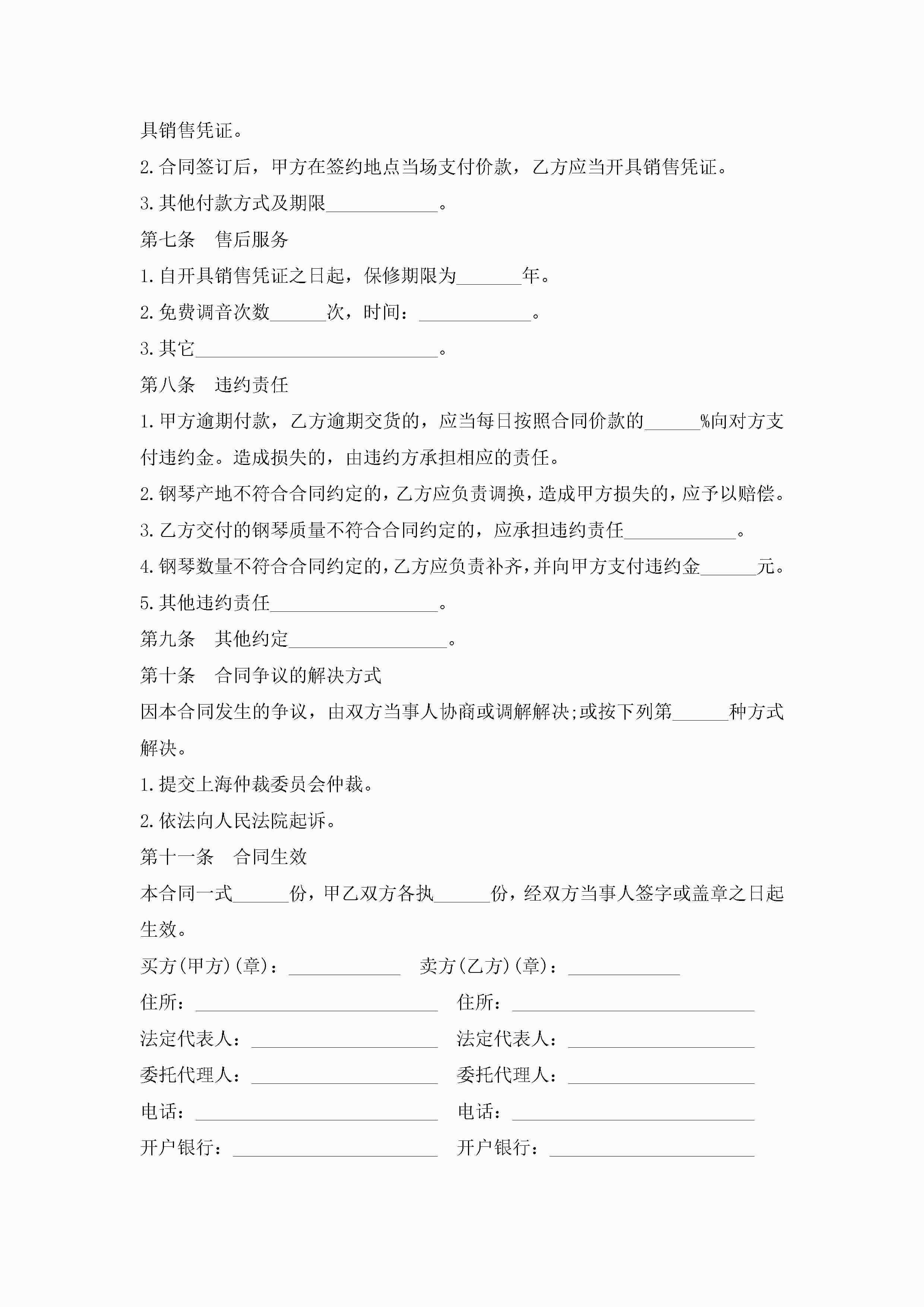 钢琴买卖合同范本5篇jugei3月23日 01:38发布关注186 钢琴买卖合同范本5篇此内容为付费资源,请付费后查看¥10.9 单篇文档限时特惠¥15个人会员开通企业会员开通立即下载无需登陆!可直接快捷下载单个模板付费资源© 版权声明THE ENDWord模板# 实用文档# 实用模板# 合同模板# 买卖合同 如有问题,可点击最底部“联系我们”联系客服 分享QQ空间微博QQ好友海报分享复制链接收藏