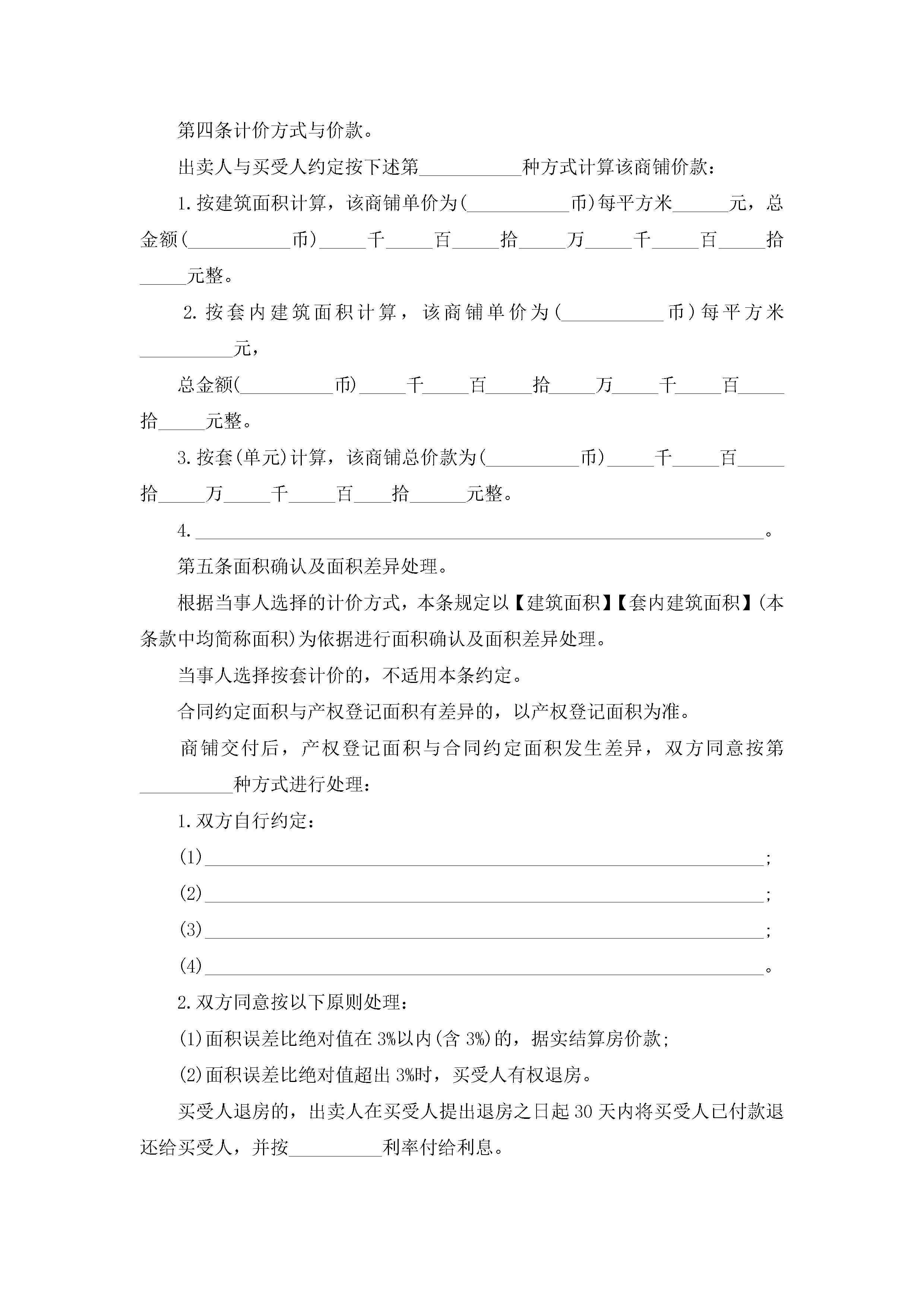 商铺买卖合同范本5篇jugei3月23日 01:38发布关注249 商铺买卖合同范本5篇此内容为付费资源,请付费后查看¥10.9 单篇文档限时特惠¥15个人会员开通企业会员开通立即下载无需登陆!可直接快捷下载单个模板付费资源© 版权声明THE ENDWord模板# 实用文档# 实用模板# 合同模板# 买卖合同 如有问题,可点击最底部“联系我们”联系客服 分享QQ空间微博QQ好友海报分享复制链接收藏