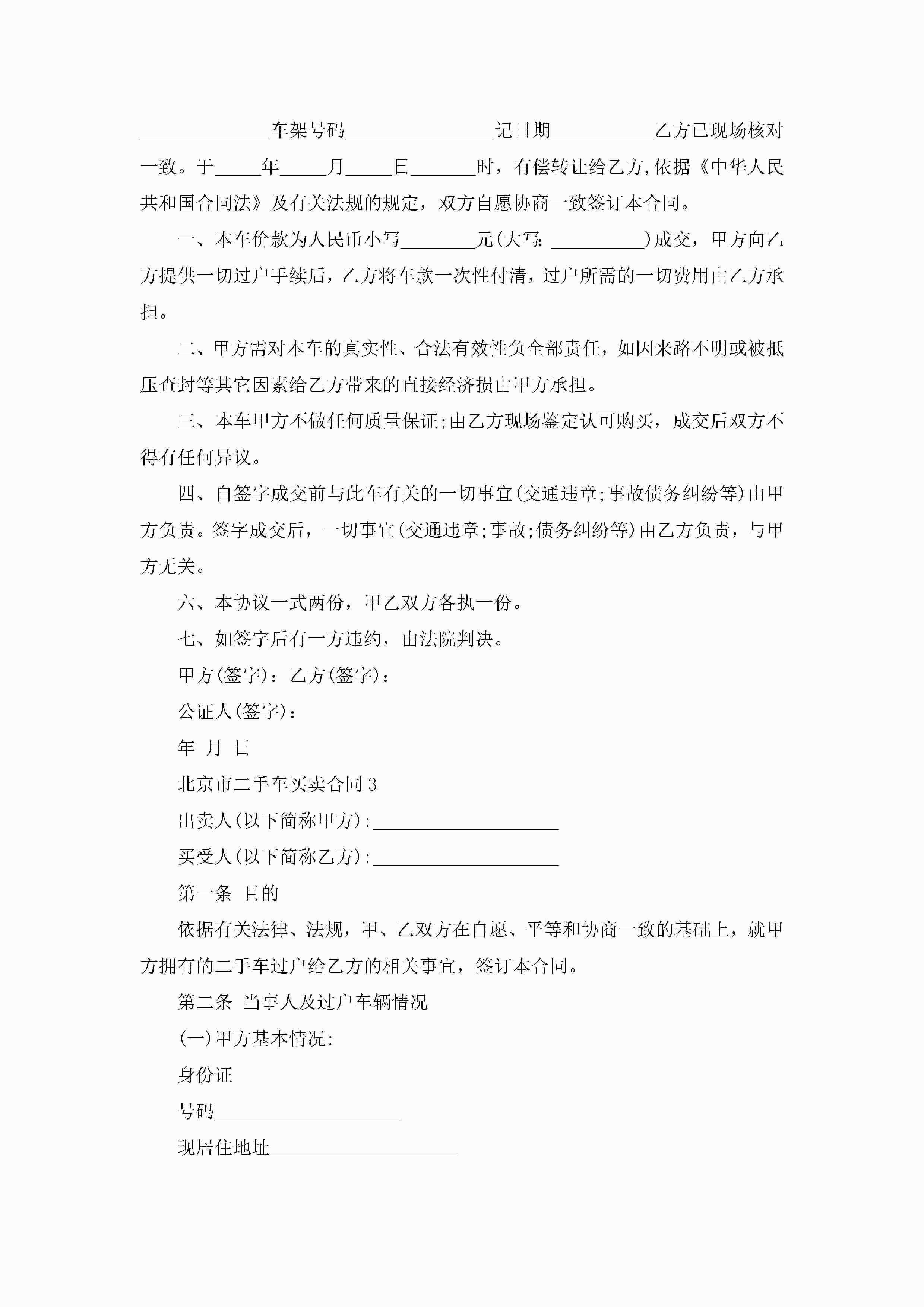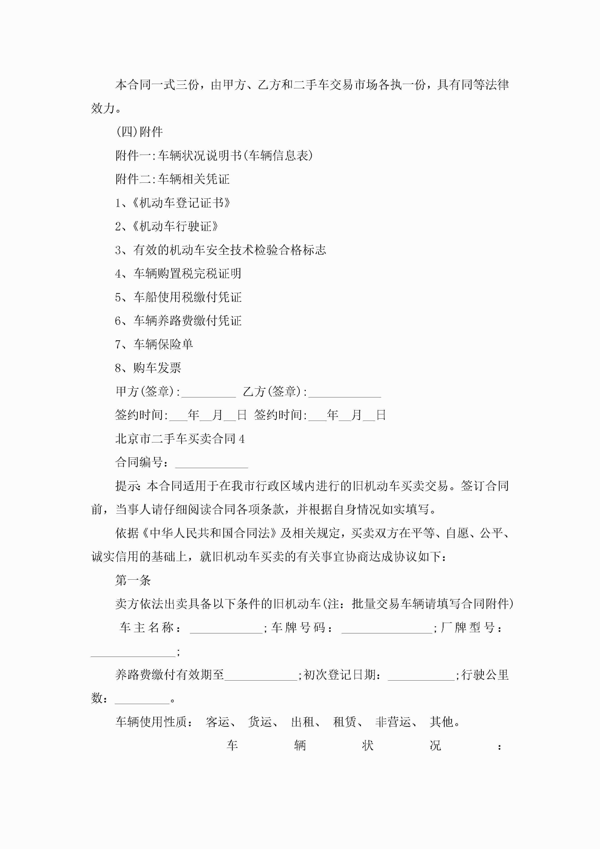 北京市二手车买卖合同5篇jugei3月23日 01:38发布关注261 北京市二手车买卖合同5篇此内容为付费资源,请付费后查看¥10.9 单篇文档限时特惠¥15个人会员开通企业会员开通立即下载无需登陆!可直接快捷下载单个模板付费资源© 版权声明THE ENDWord模板# 实用文档# 实用模板# 合同模板# 买卖合同 如有问题,可点击最底部“联系我们”联系客服 分享QQ空间微博QQ好友海报分享复制链接收藏