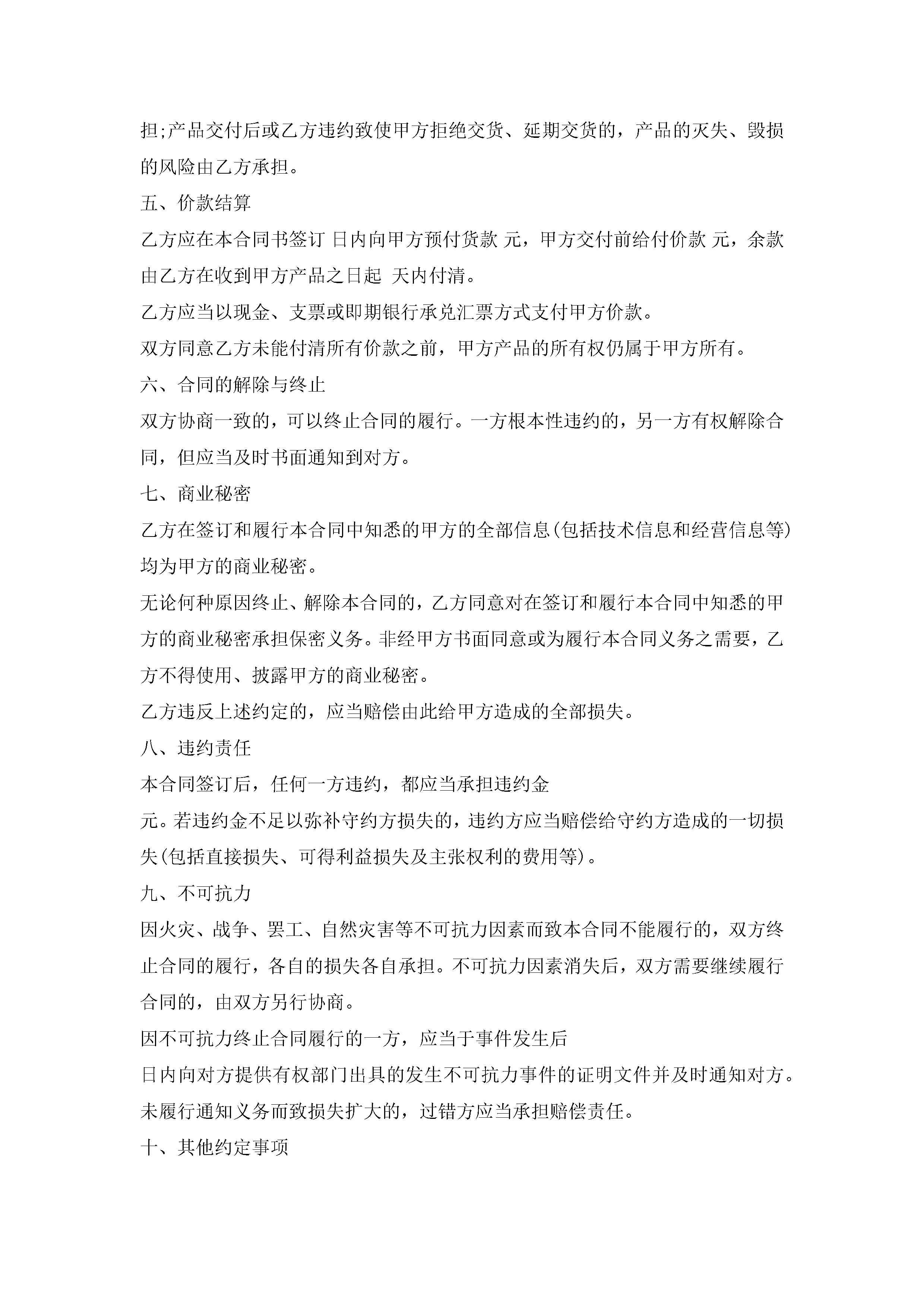 标准的买卖合同范本5篇jugei3月23日 01:38发布关注198 标准的买卖合同范本5篇此内容为付费资源,请付费后查看¥10.9 单篇文档限时特惠¥15个人会员开通企业会员开通立即下载无需登陆!可直接快捷下载单个模板付费资源© 版权声明THE ENDWord模板# 实用文档# 实用模板# 合同模板# 买卖合同 如有问题,可点击最底部“联系我们”联系客服 分享QQ空间微博QQ好友海报分享复制链接收藏