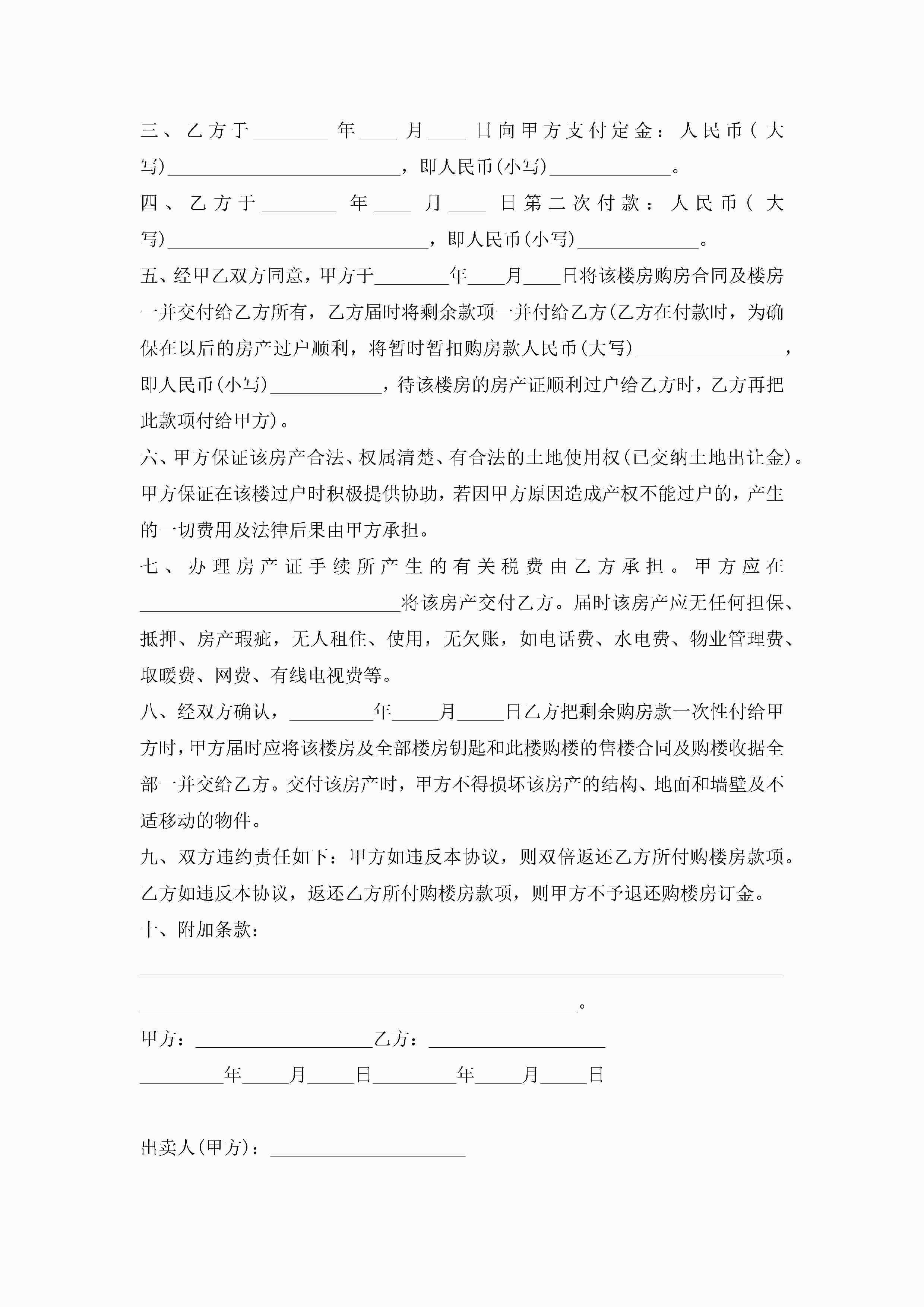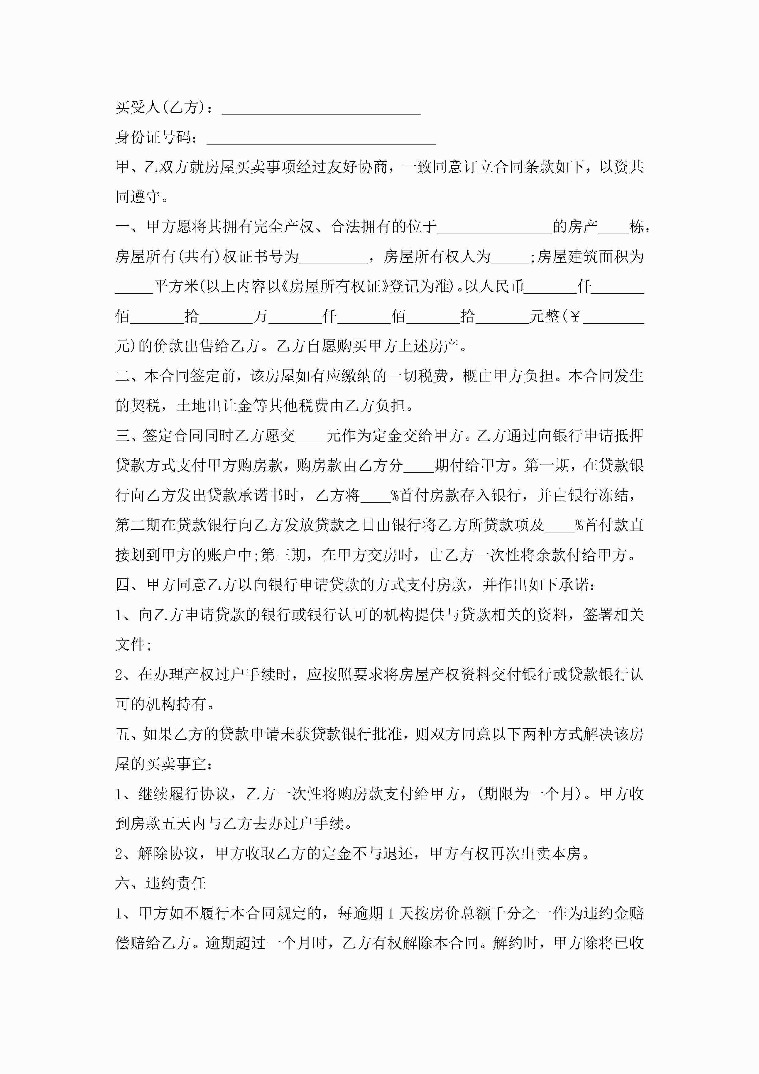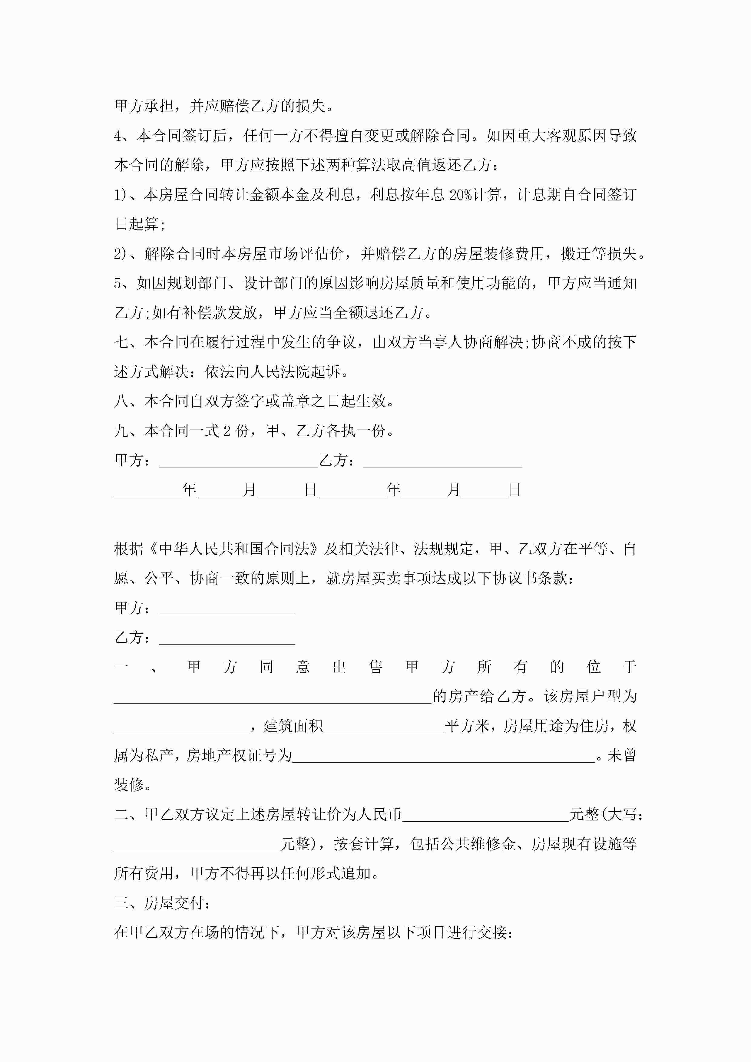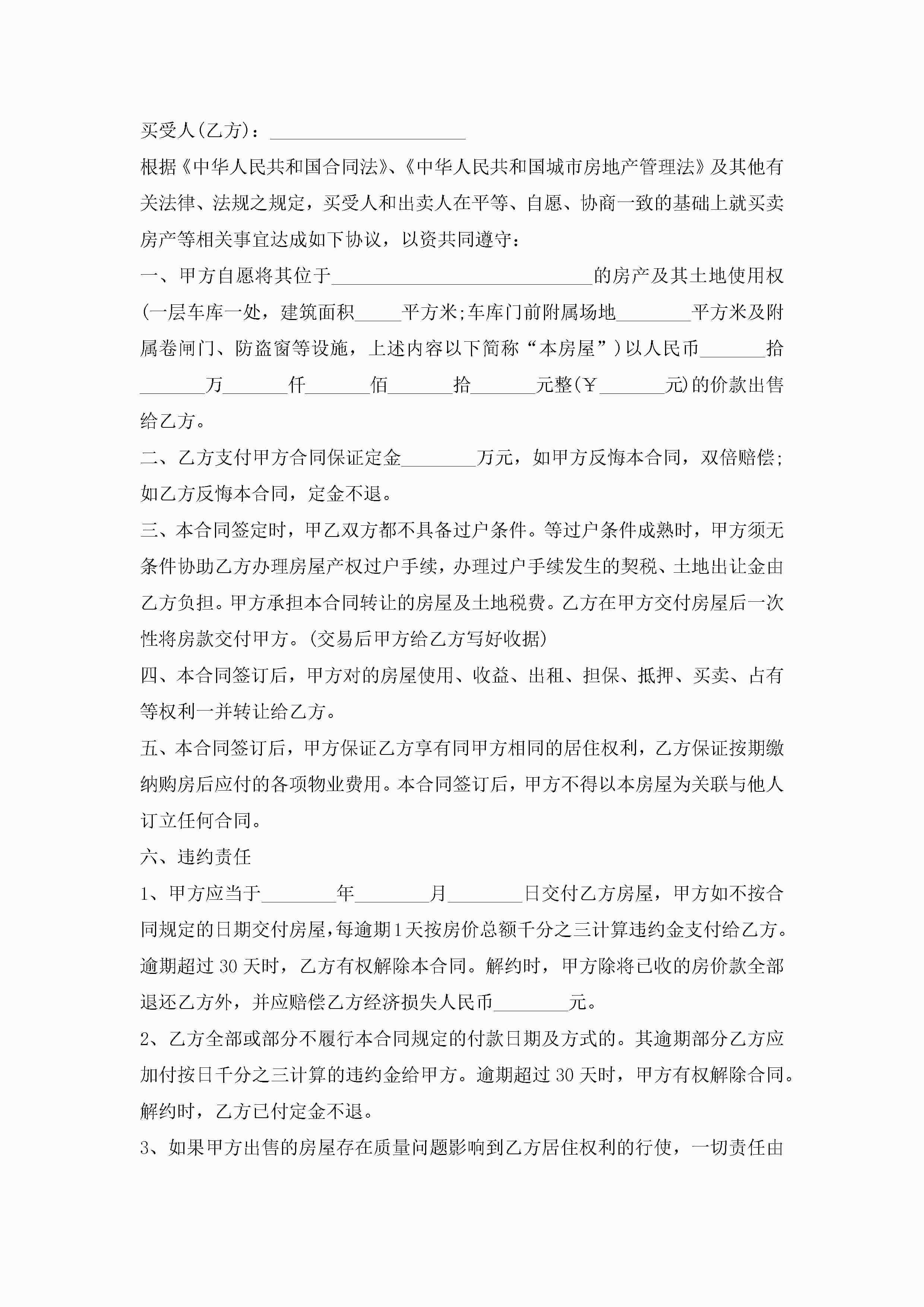 标准个人房屋买卖合同模板5篇jugei3月23日 01:38发布关注233 标准个人房屋买卖合同模板5篇此内容为付费资源,请付费后查看¥10.9 单篇文档限时特惠¥15个人会员开通企业会员开通立即下载无需登陆!可直接快捷下载单个模板付费资源© 版权声明THE ENDWord模板# 实用文档# 实用模板# 合同模板# 买卖合同 如有问题,可点击最底部“联系我们”联系客服 分享QQ空间微博QQ好友海报分享复制链接收藏