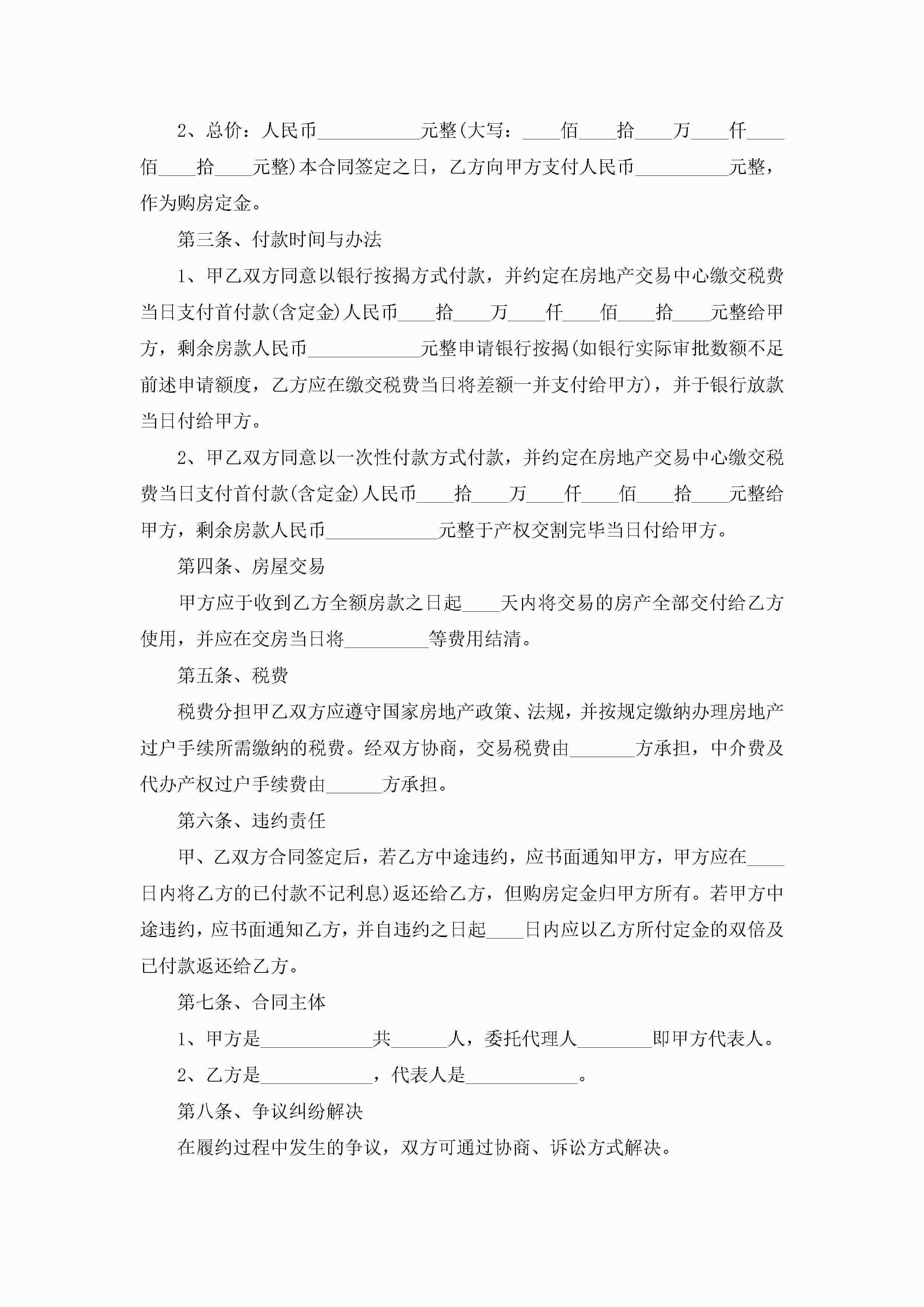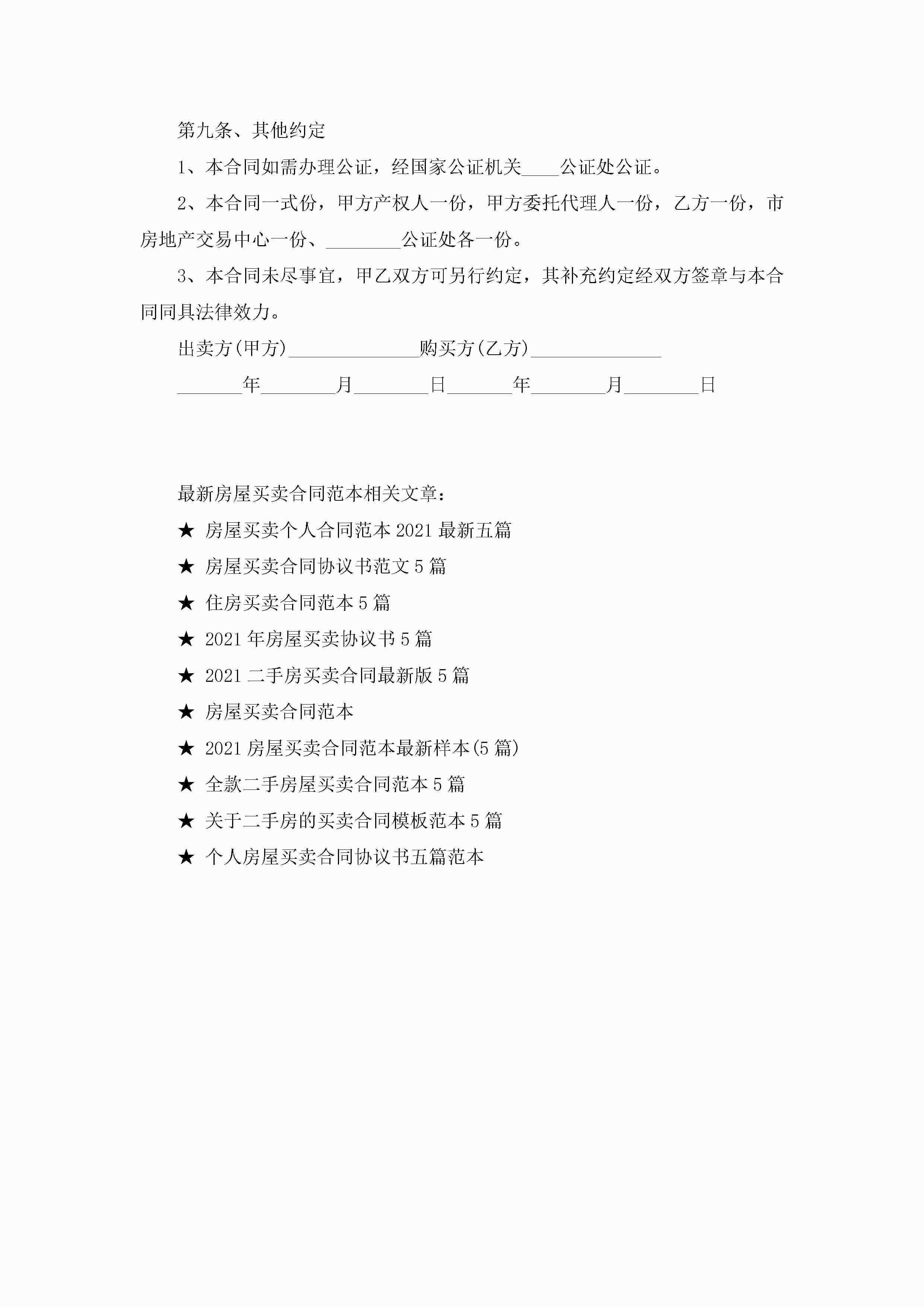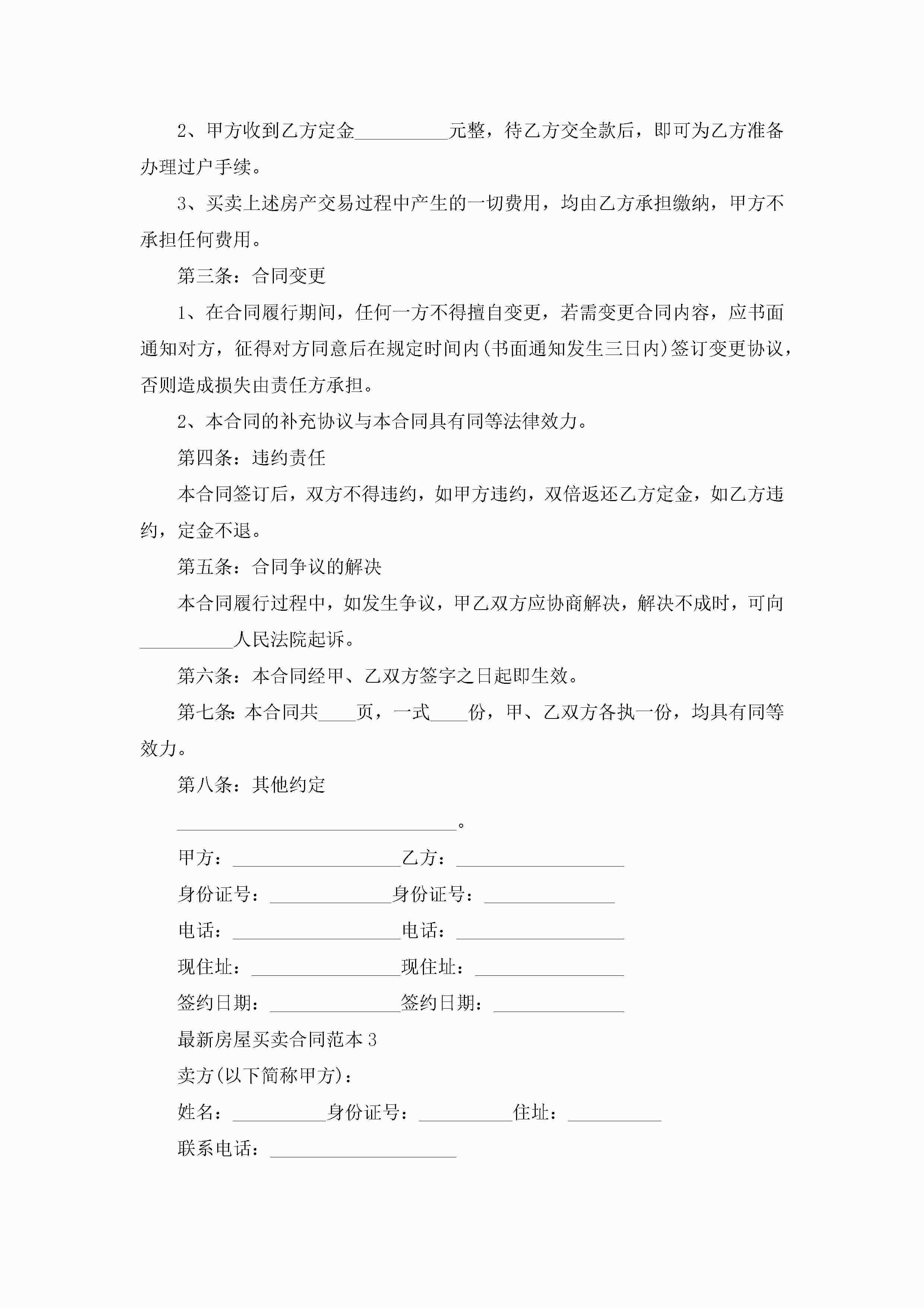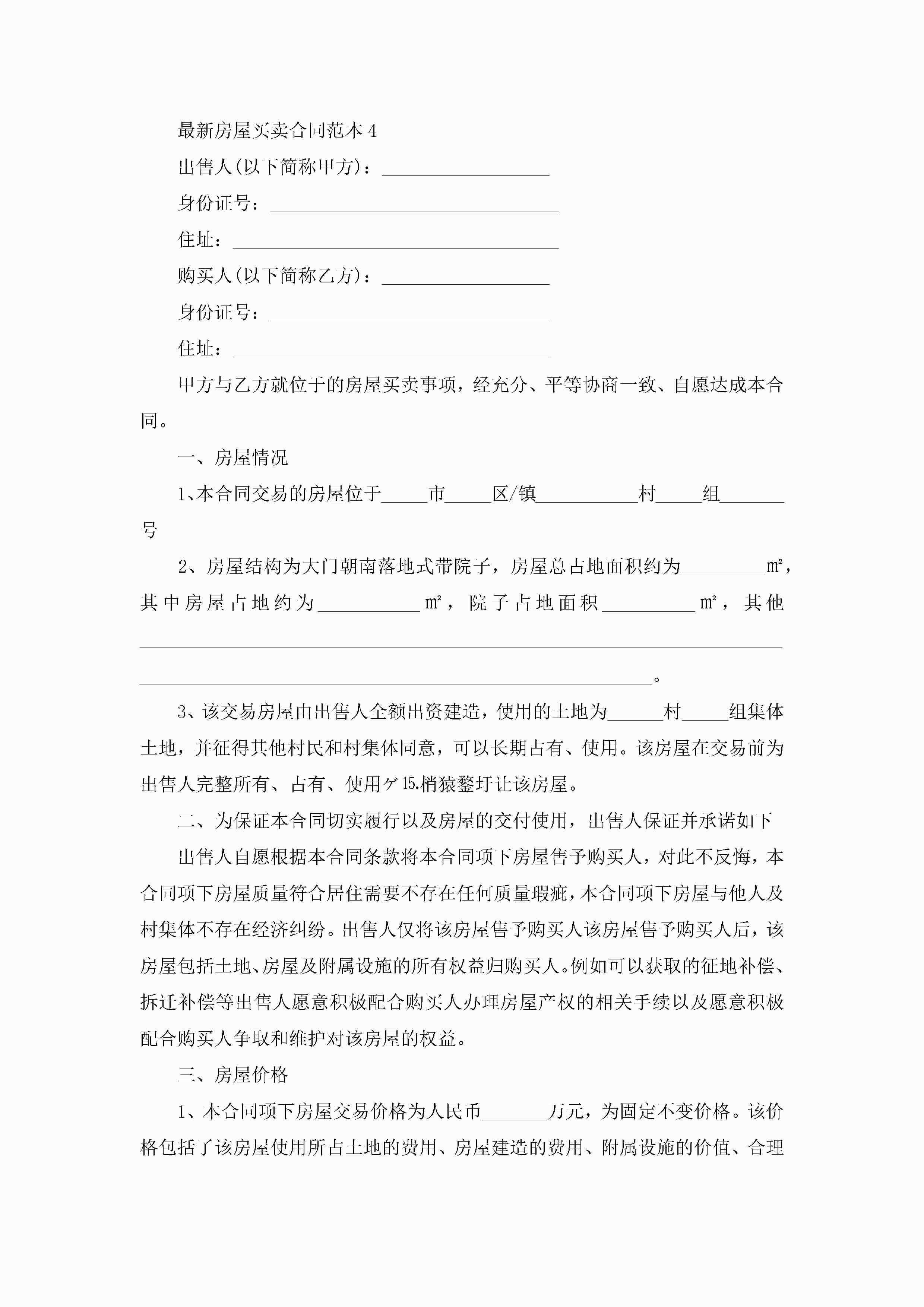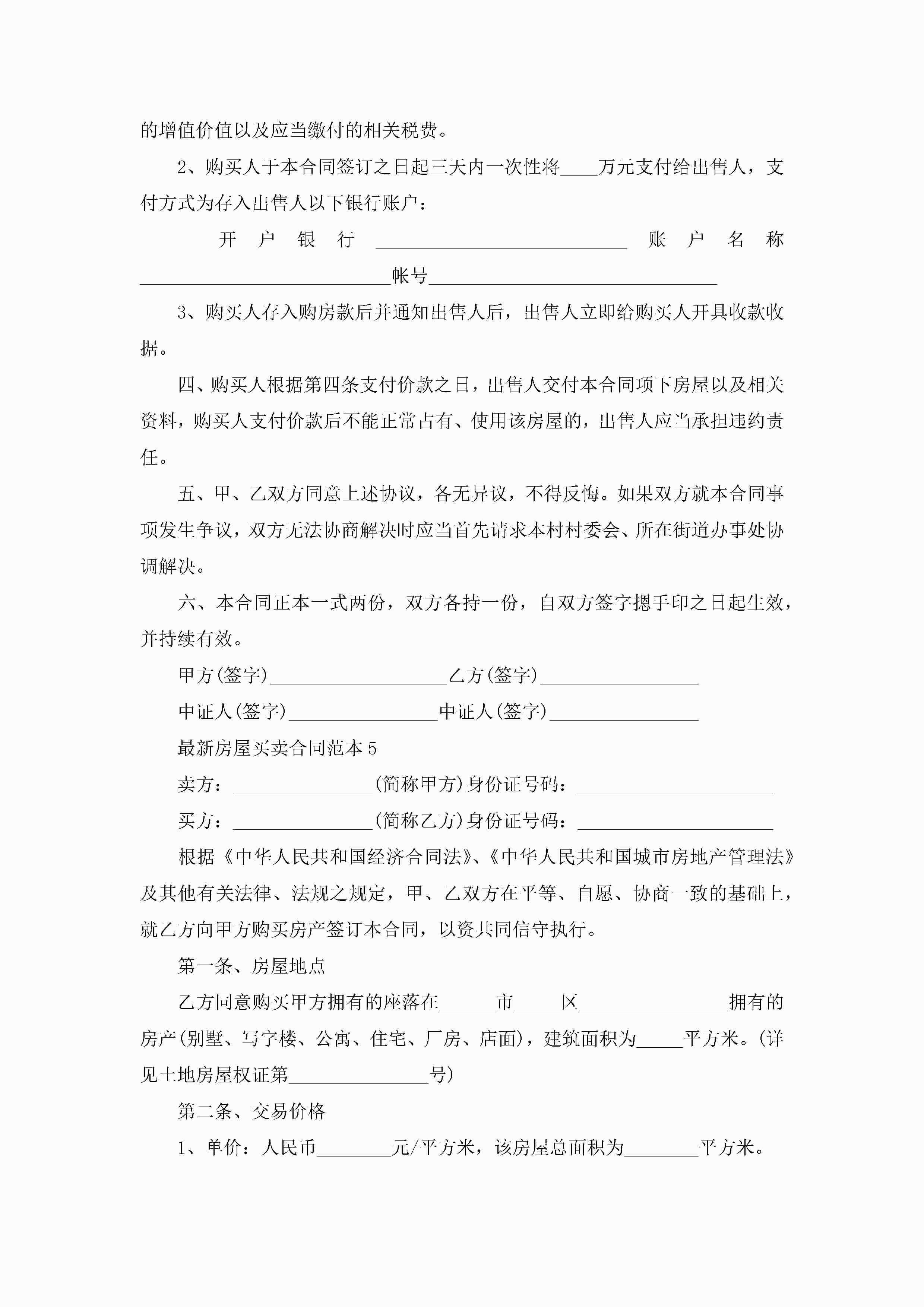 最新房屋买卖合同范本5篇jugei3月23日 01:38发布关注190 最新房屋买卖合同范本5篇此内容为付费资源,请付费后查看¥10.9 单篇文档限时特惠¥15个人会员开通企业会员开通立即下载无需登陆!可直接快捷下载单个模板付费资源© 版权声明THE ENDWord模板# 实用文档# 实用模板# 合同模板# 买卖合同 如有问题,可点击最底部“联系我们”联系客服 分享QQ空间微博QQ好友海报分享复制链接收藏