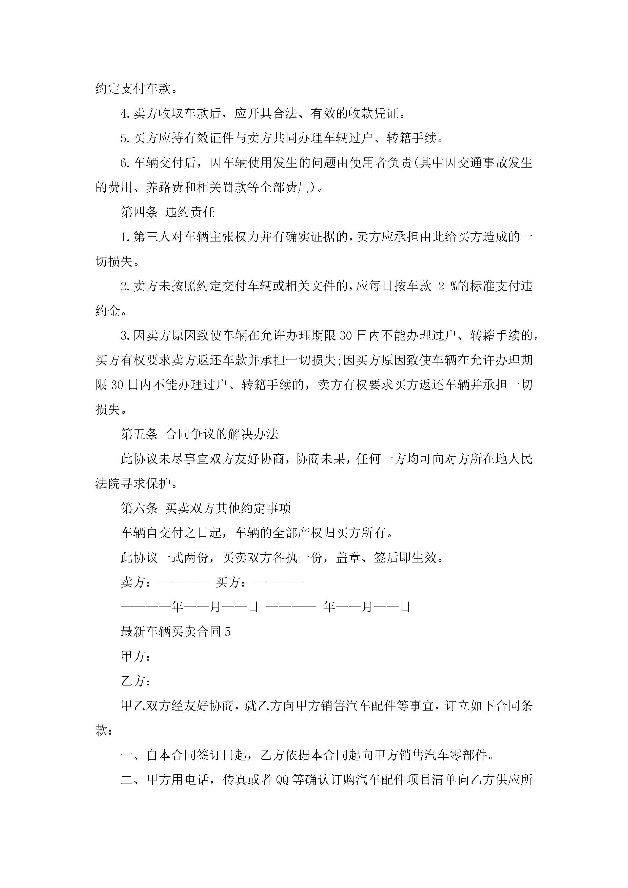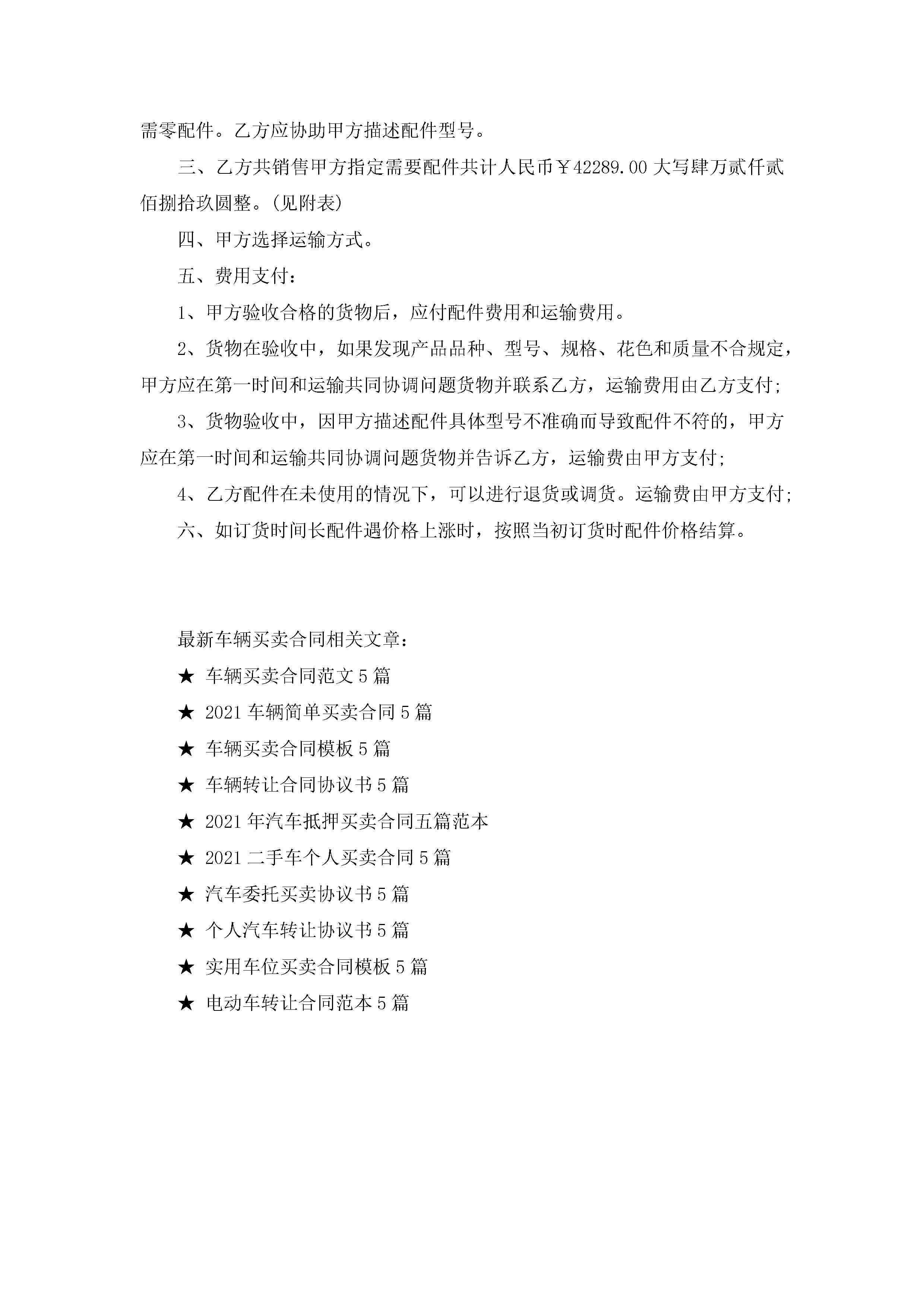 最新车辆买卖合同5篇jugei3月23日 01:38发布关注189 最新车辆买卖合同5篇此内容为付费资源,请付费后查看¥10.9 单篇文档限时特惠¥15个人会员开通企业会员开通立即下载无需登陆!可直接快捷下载单个模板付费资源© 版权声明THE ENDWord模板# 实用文档# 实用模板# 合同模板# 买卖合同 如有问题,可点击最底部“联系我们”联系客服 分享QQ空间微博QQ好友海报分享复制链接收藏