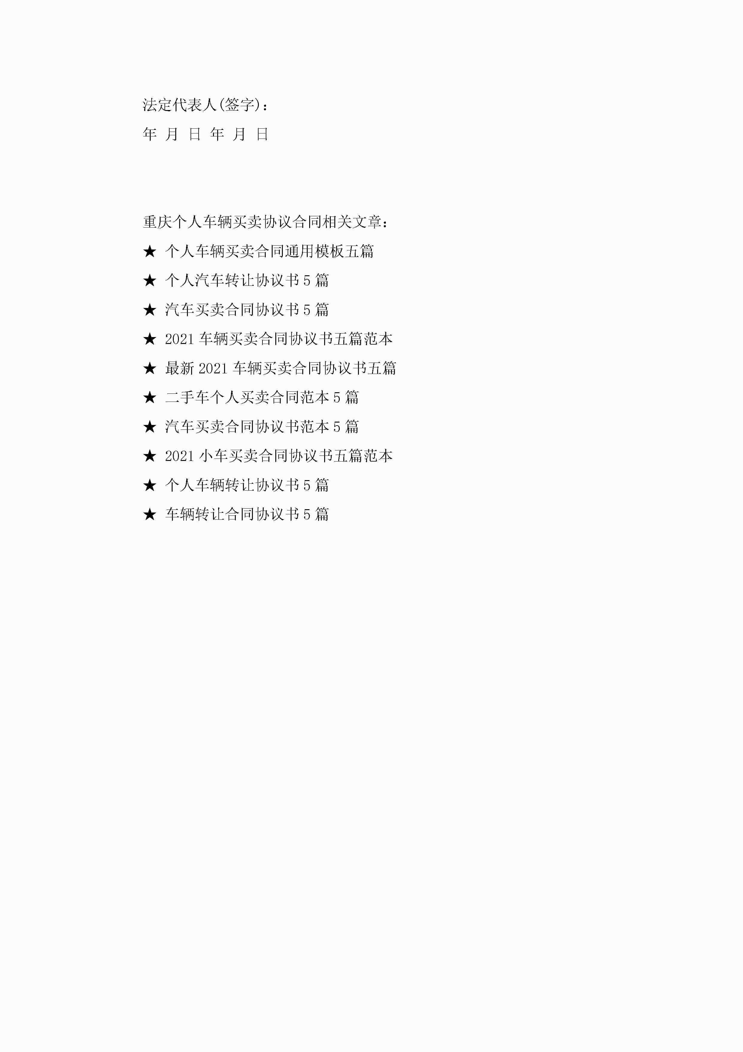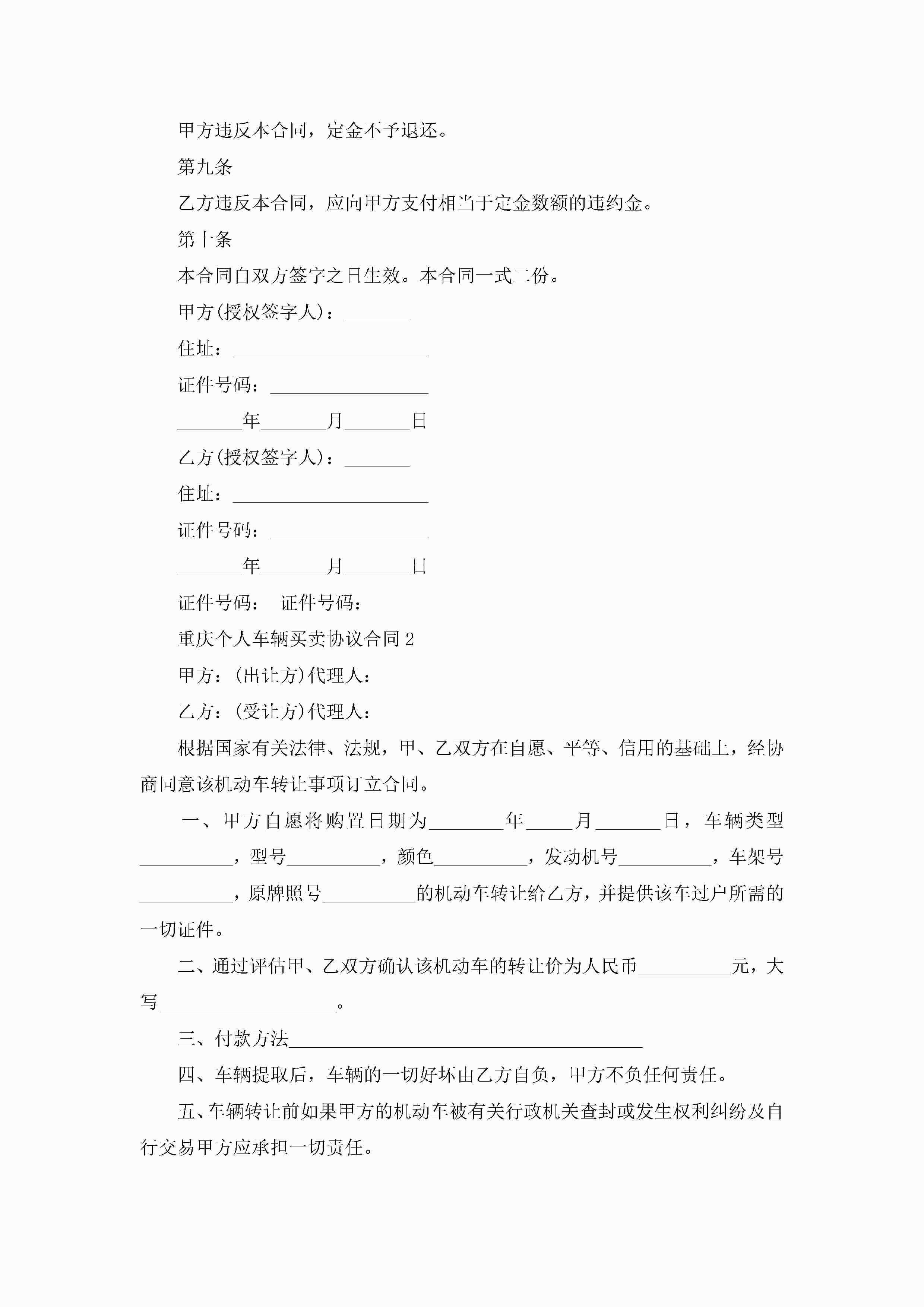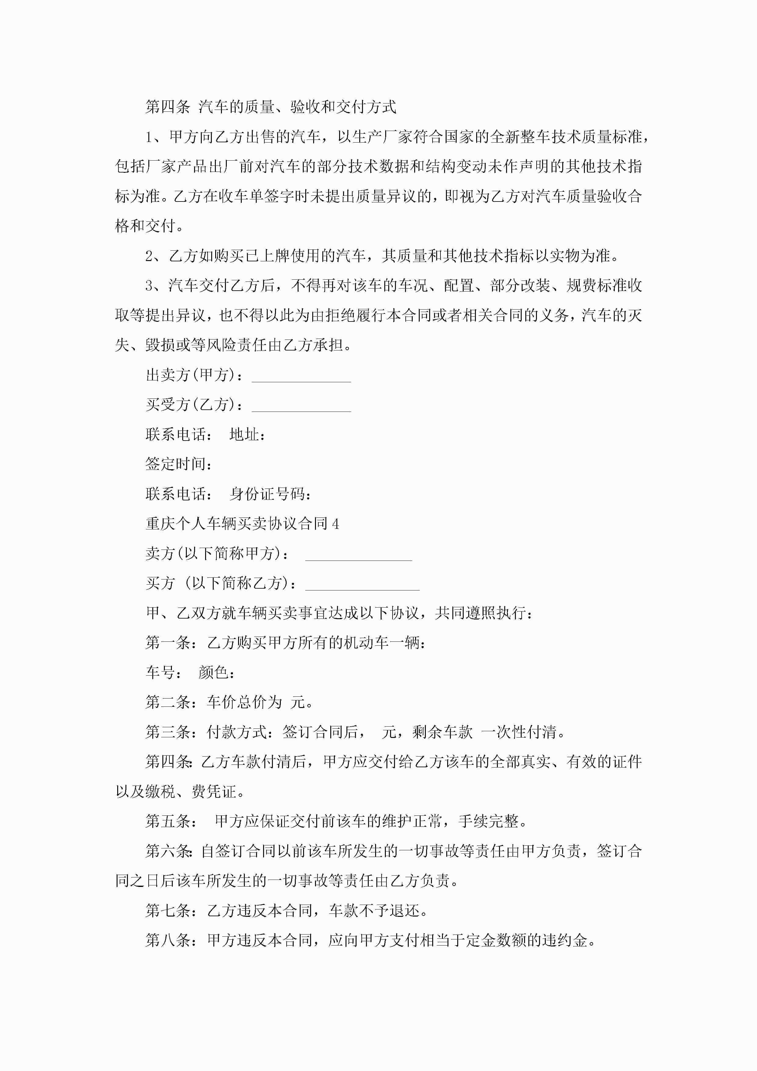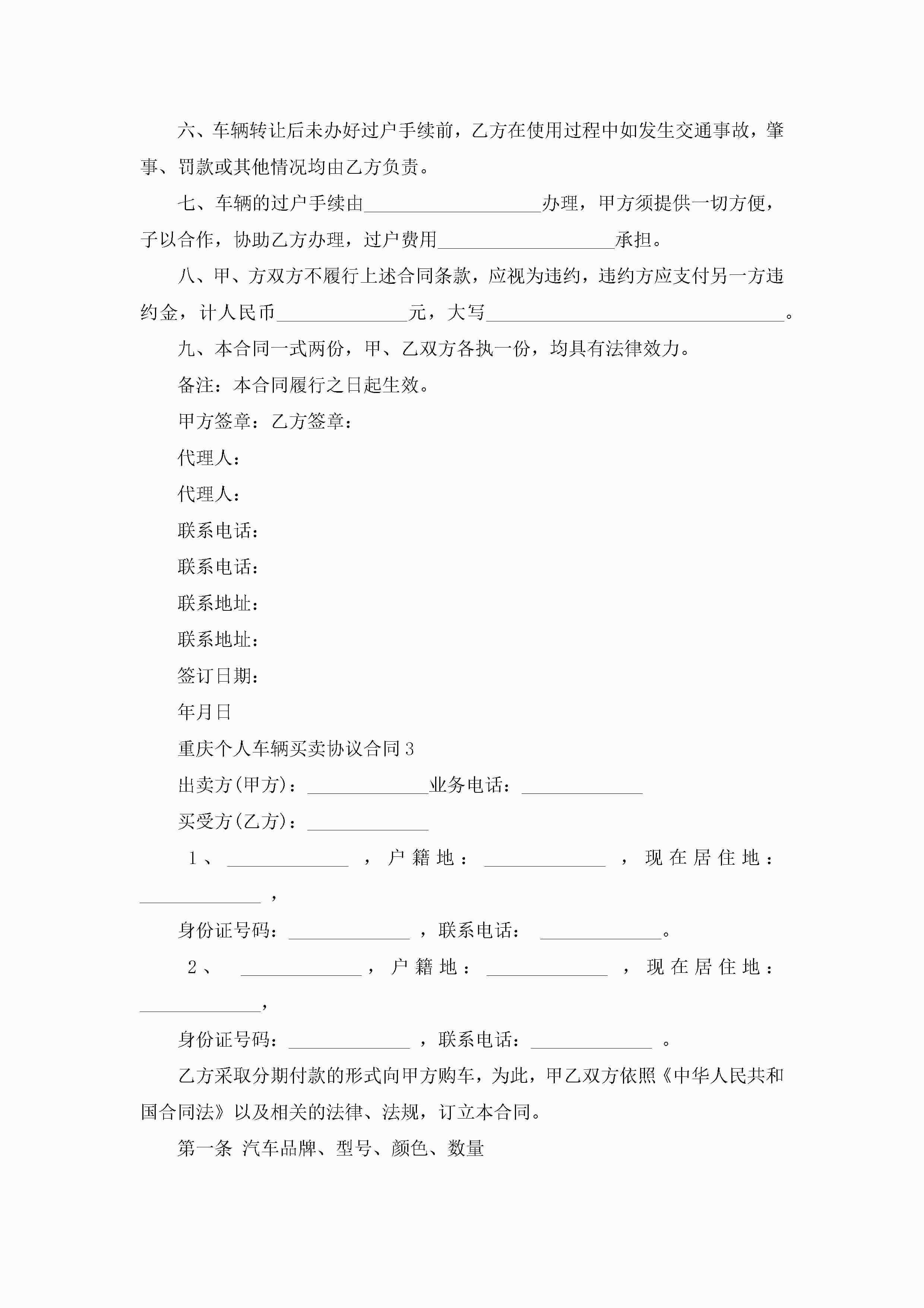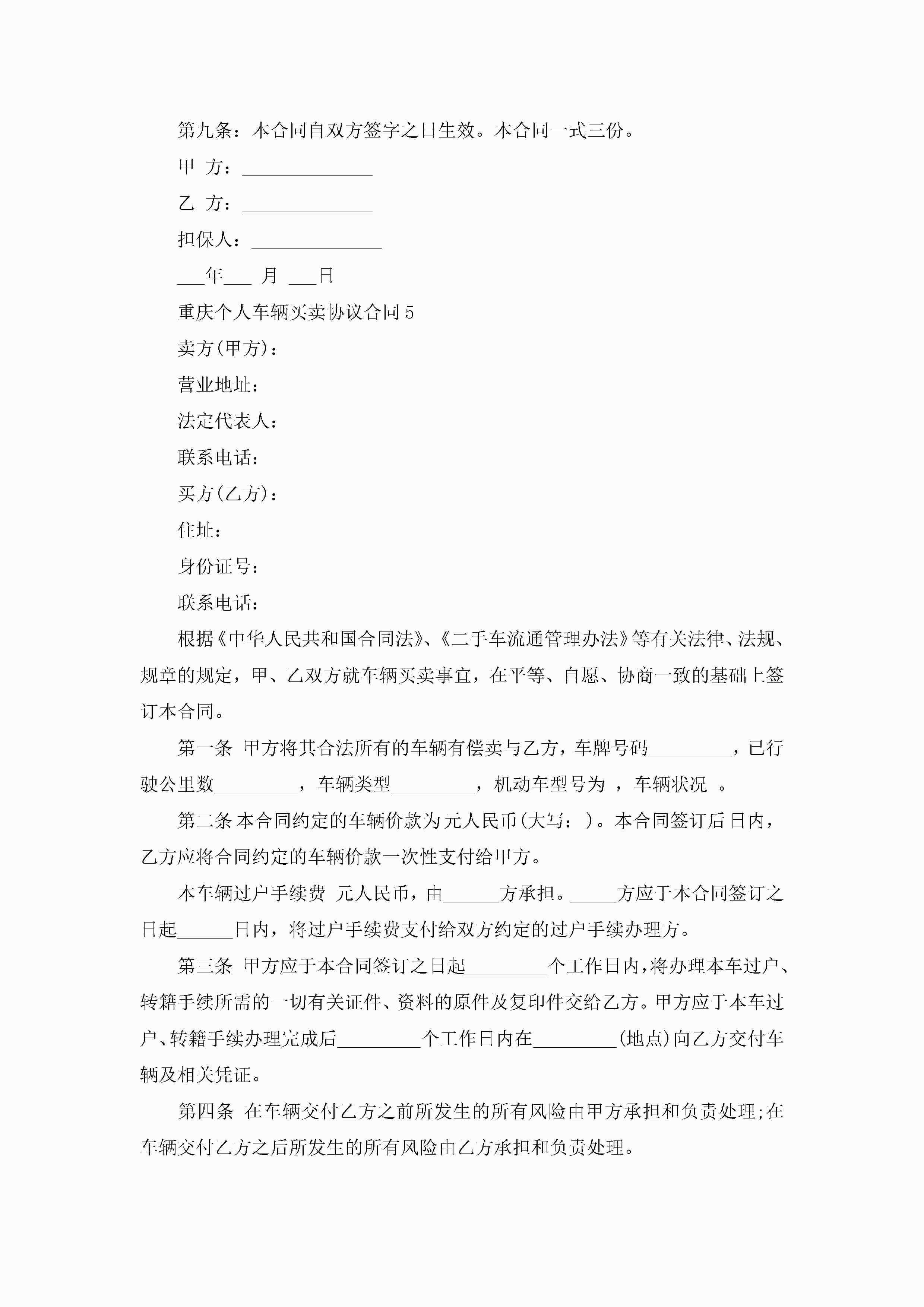 重庆个人车辆买卖协议合同5篇jugei3月23日 01:38发布关注247 重庆个人车辆买卖协议合同5篇此内容为付费资源,请付费后查看¥10.9 单篇文档限时特惠¥15个人会员开通企业会员开通立即下载无需登陆!可直接快捷下载单个模板付费资源© 版权声明THE ENDWord模板# 实用文档# 实用模板# 合同模板# 买卖合同 如有问题,可点击最底部“联系我们”联系客服 分享QQ空间微博QQ好友海报分享复制链接收藏