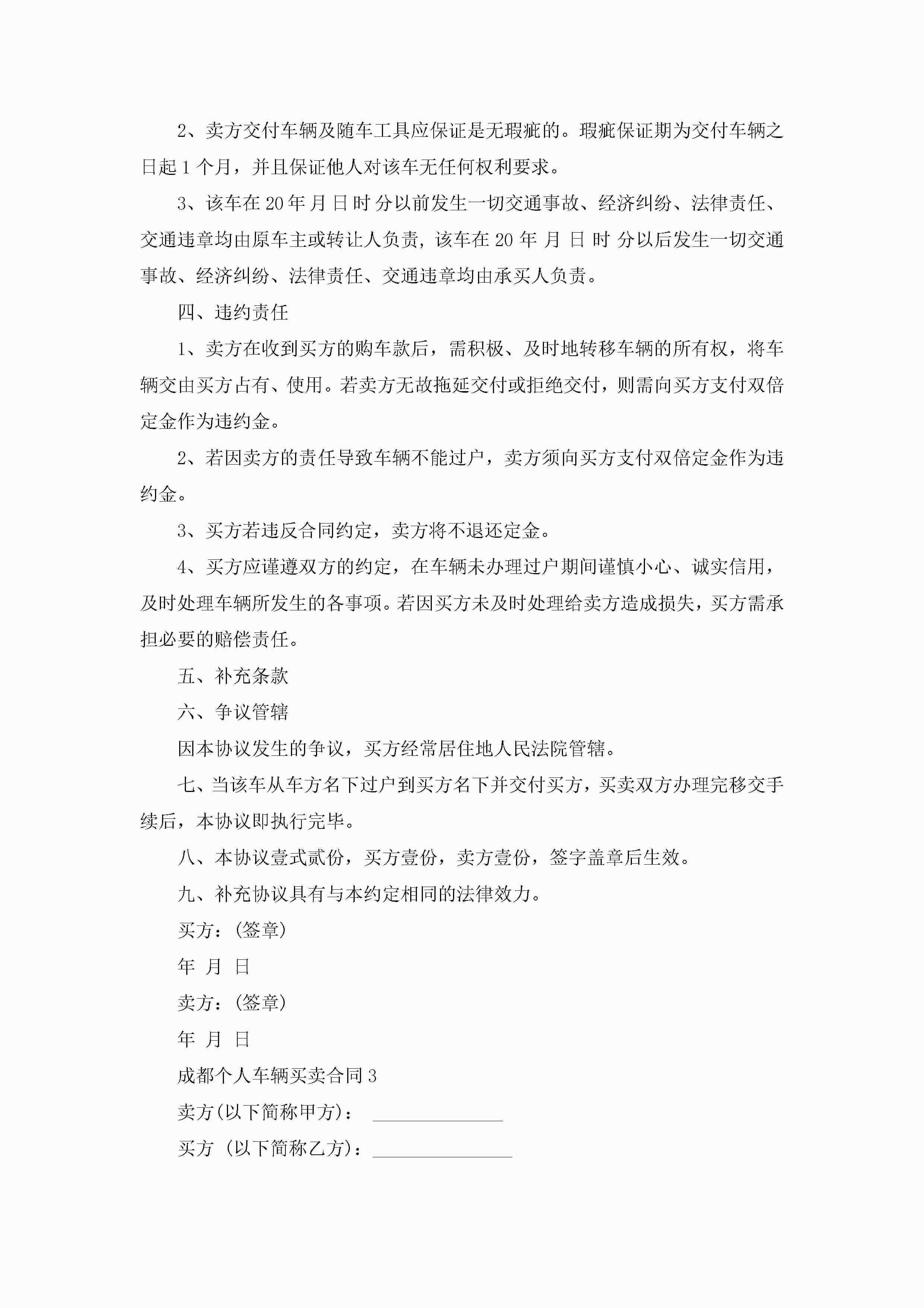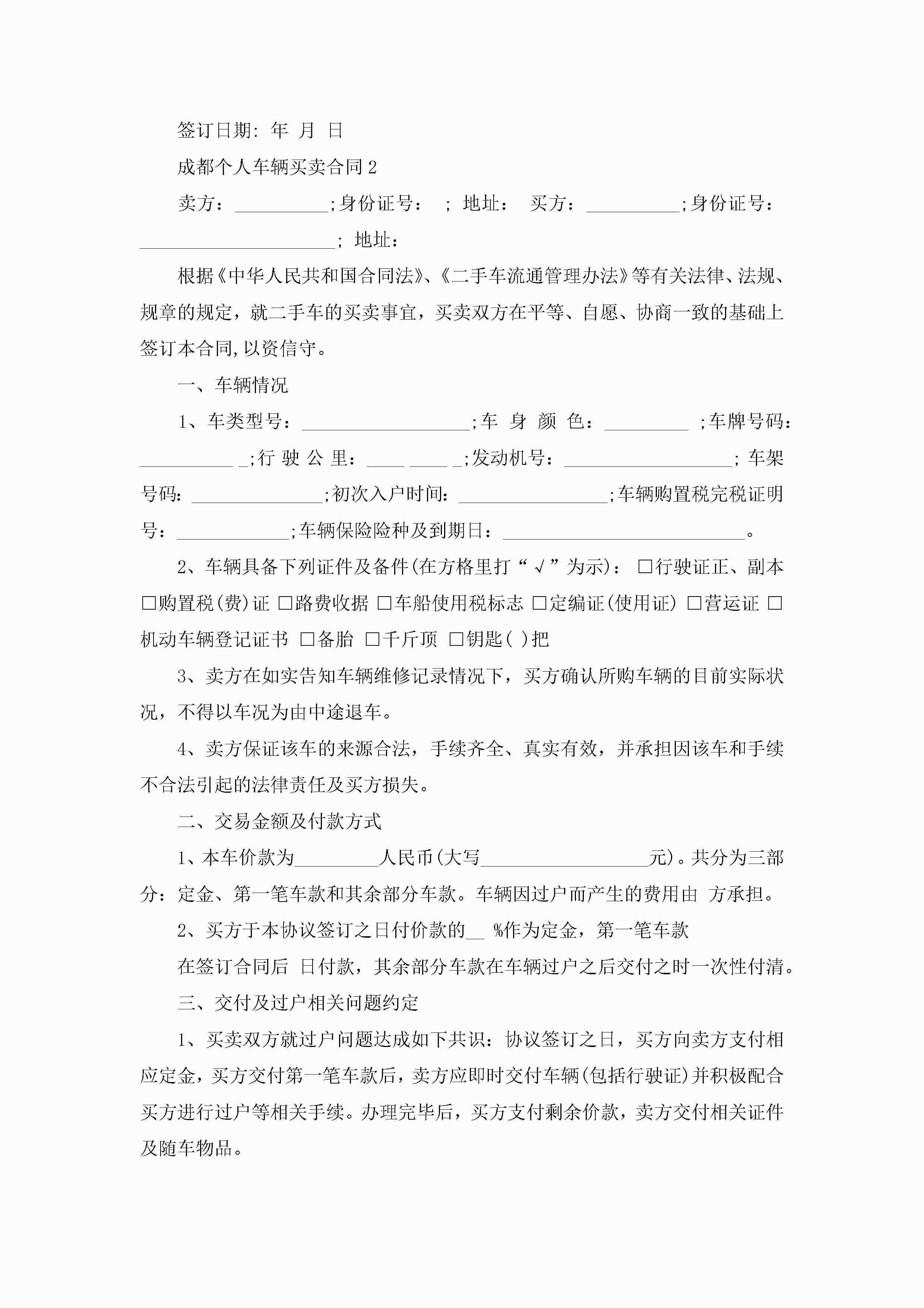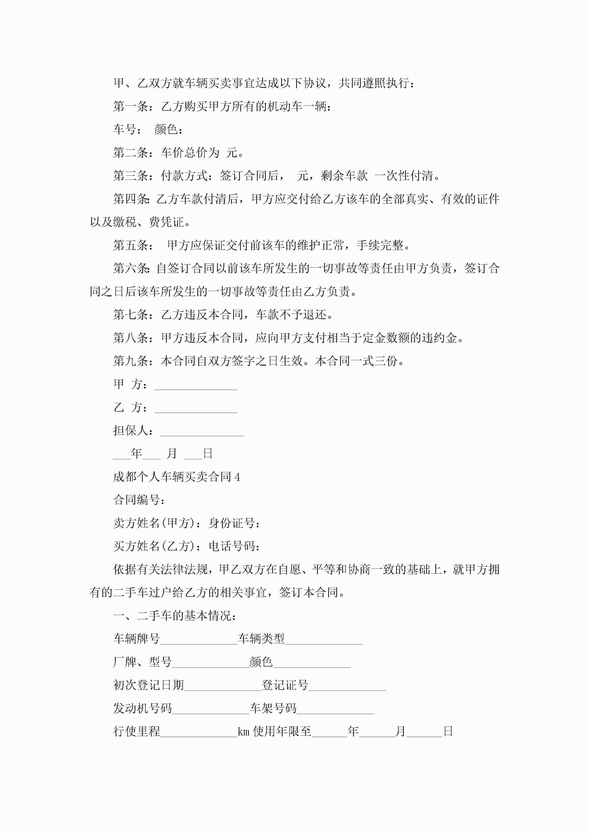 成都个人车辆买卖合同5篇jugei3月23日 01:38发布关注188 成都个人车辆买卖合同5篇此内容为付费资源,请付费后查看¥10.9 单篇文档限时特惠¥15个人会员开通企业会员开通立即下载无需登陆!可直接快捷下载单个模板付费资源© 版权声明THE ENDWord模板# 实用文档# 实用模板# 合同模板# 买卖合同 如有问题,可点击最底部“联系我们”联系客服 分享QQ空间微博QQ好友海报分享复制链接收藏