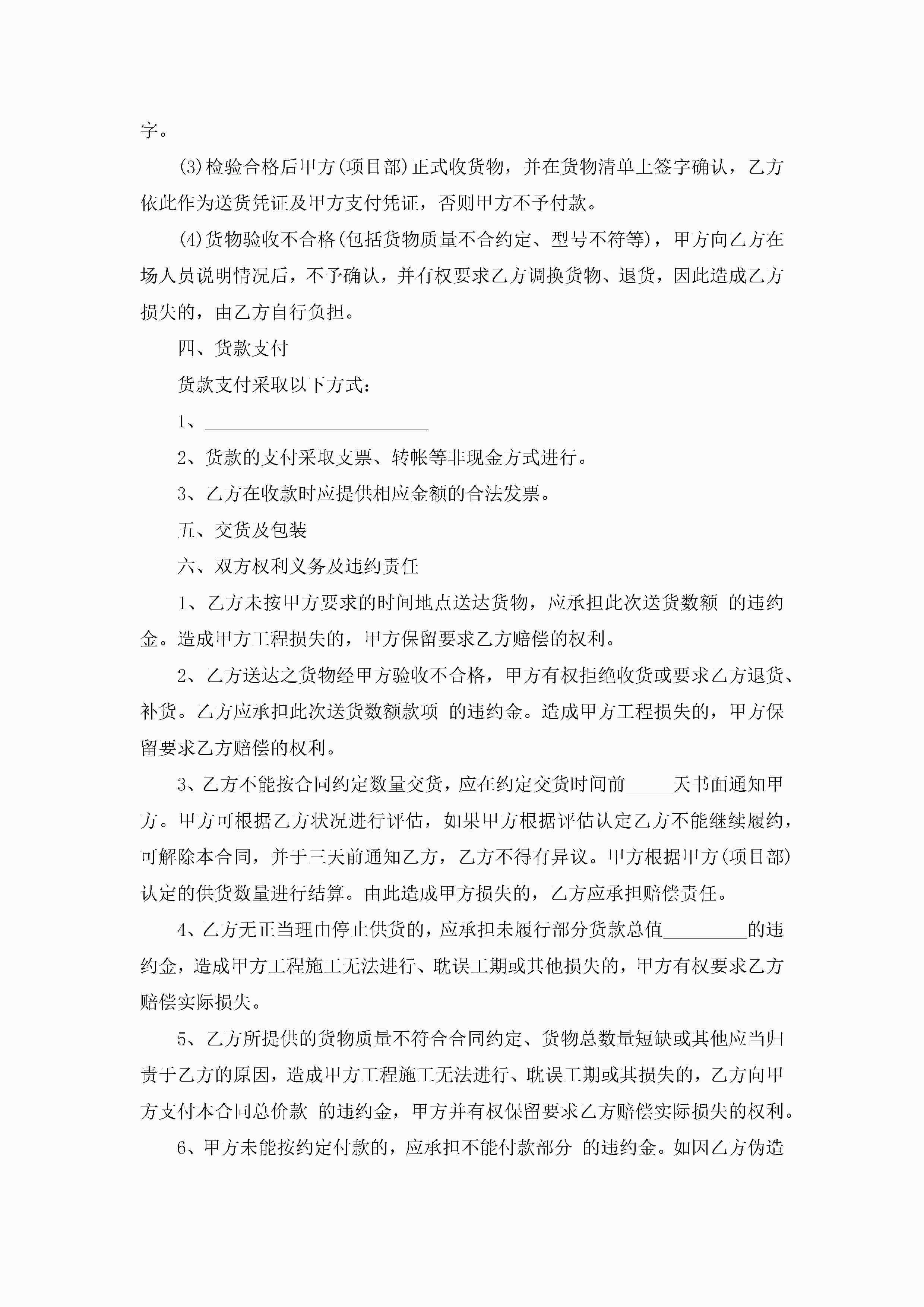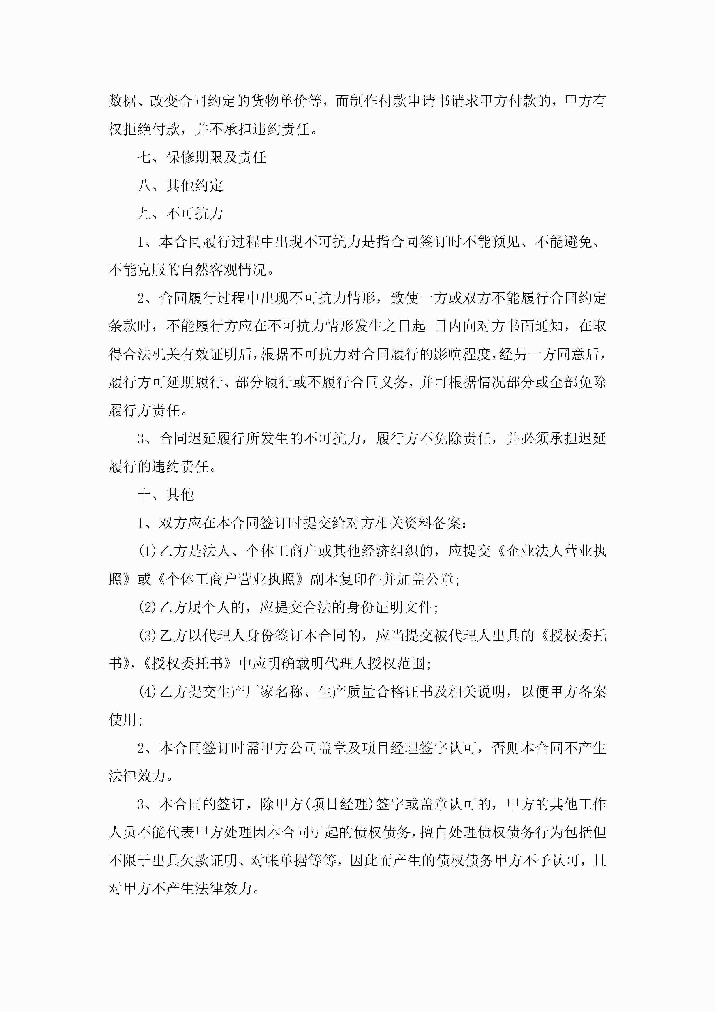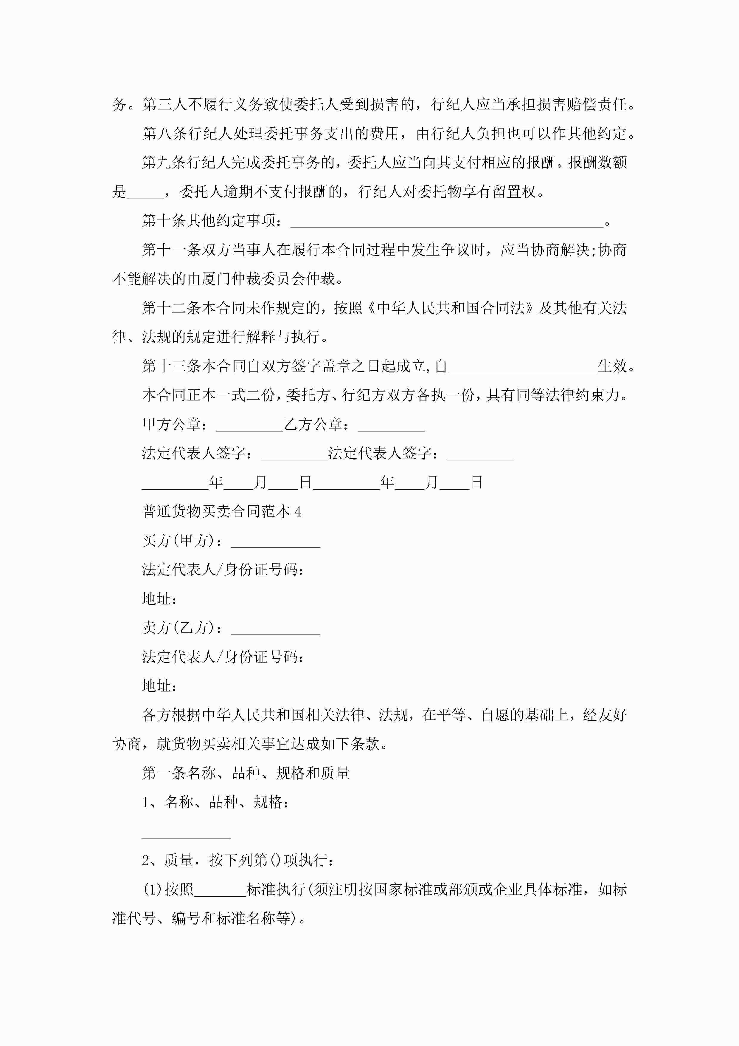 最新普通货物买卖合同范本5篇jugei3月23日 01:38发布关注189 最新普通货物买卖合同范本5篇此内容为付费资源,请付费后查看¥10.9 单篇文档限时特惠¥15个人会员开通企业会员开通立即下载无需登陆!可直接快捷下载单个模板付费资源© 版权声明THE ENDWord模板# 实用文档# 实用模板# 合同模板# 买卖合同 如有问题,可点击最底部“联系我们”联系客服 分享QQ空间微博QQ好友海报分享复制链接收藏