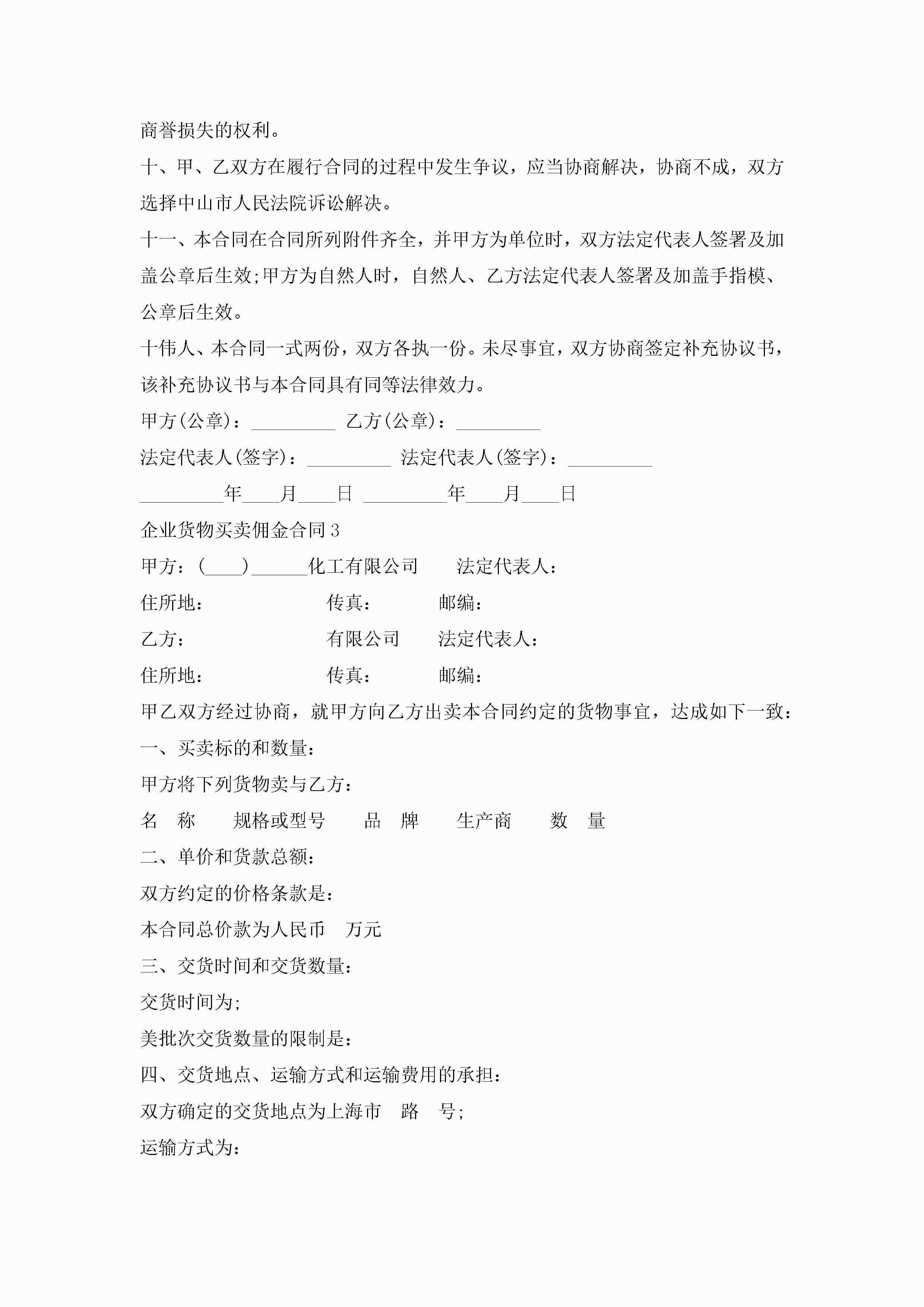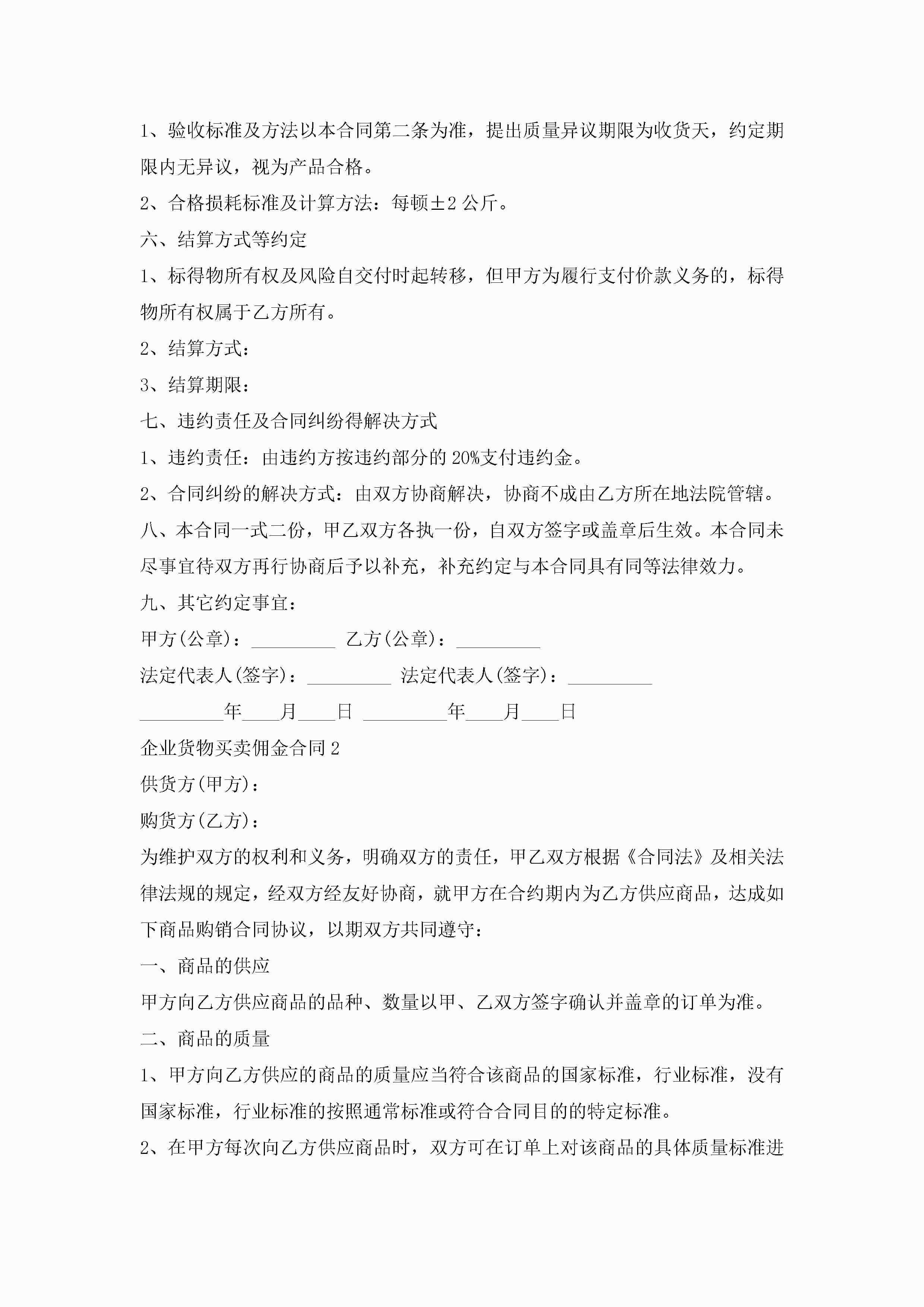 关于企业货物买卖佣金合同5篇jugei3月23日 01:38发布关注275 关于企业货物买卖佣金合同5篇此内容为付费资源,请付费后查看¥10.9 单篇文档限时特惠¥15个人会员开通企业会员开通立即下载无需登陆!可直接快捷下载单个模板付费资源© 版权声明THE ENDWord模板# 实用文档# 实用模板# 合同模板# 买卖合同 如有问题,可点击最底部“联系我们”联系客服 分享QQ空间微博QQ好友海报分享复制链接收藏