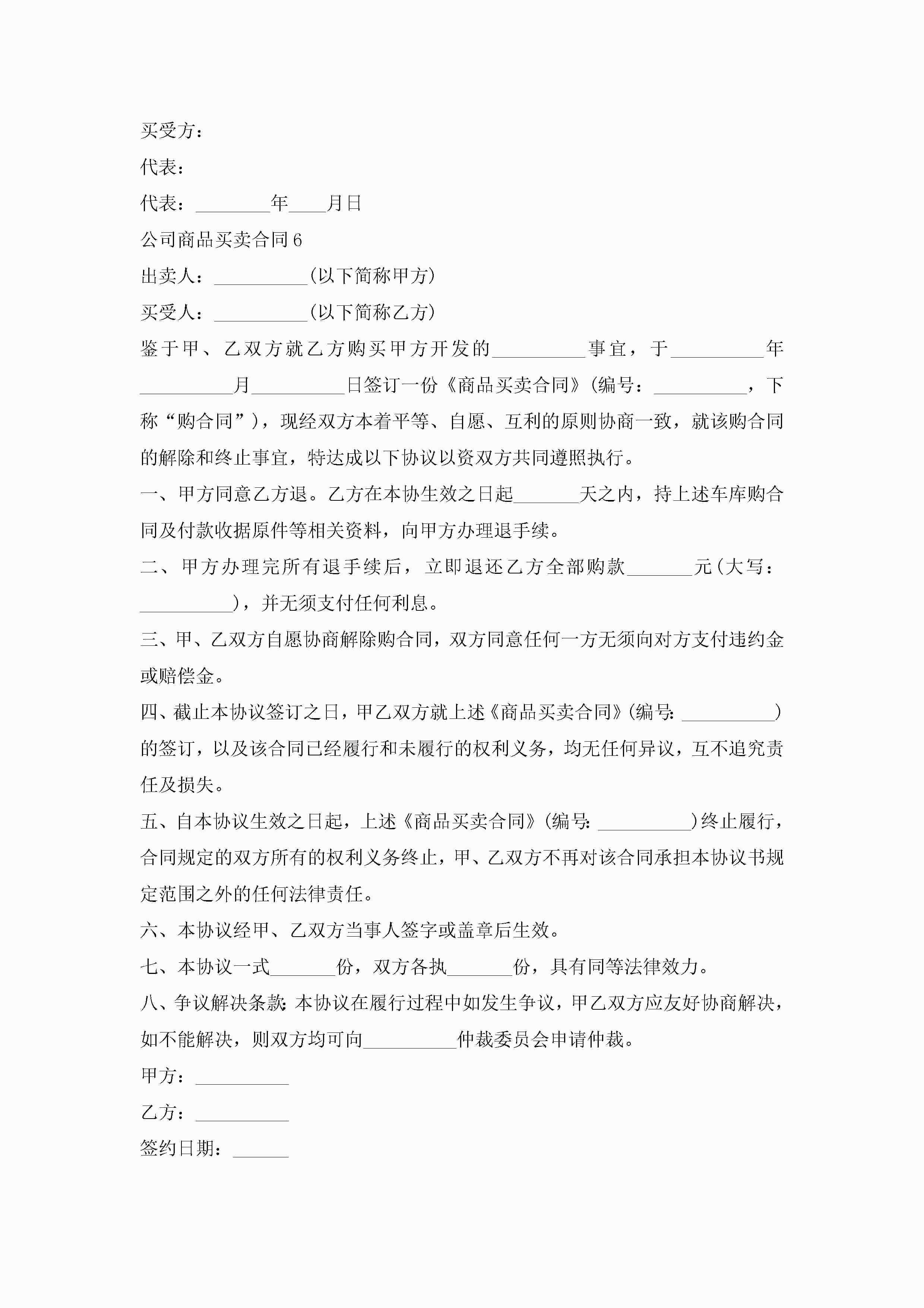 公司商品买卖合同6篇jugei3月23日 01:38发布关注232 公司商品买卖合同6篇此内容为付费资源,请付费后查看¥10.9 单篇文档限时特惠¥15个人会员开通企业会员开通立即下载无需登陆!可直接快捷下载单个模板付费资源© 版权声明THE ENDWord模板# 实用文档# 实用模板# 合同模板# 买卖合同 如有问题,可点击最底部“联系我们”联系客服 分享QQ空间微博QQ好友海报分享复制链接收藏