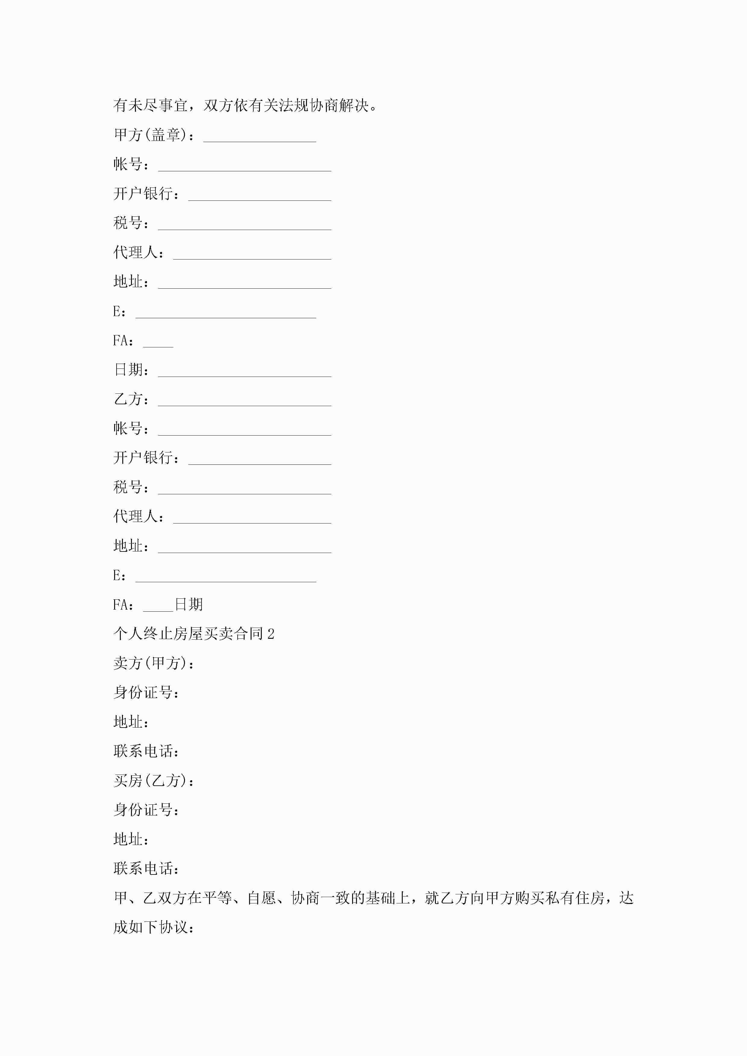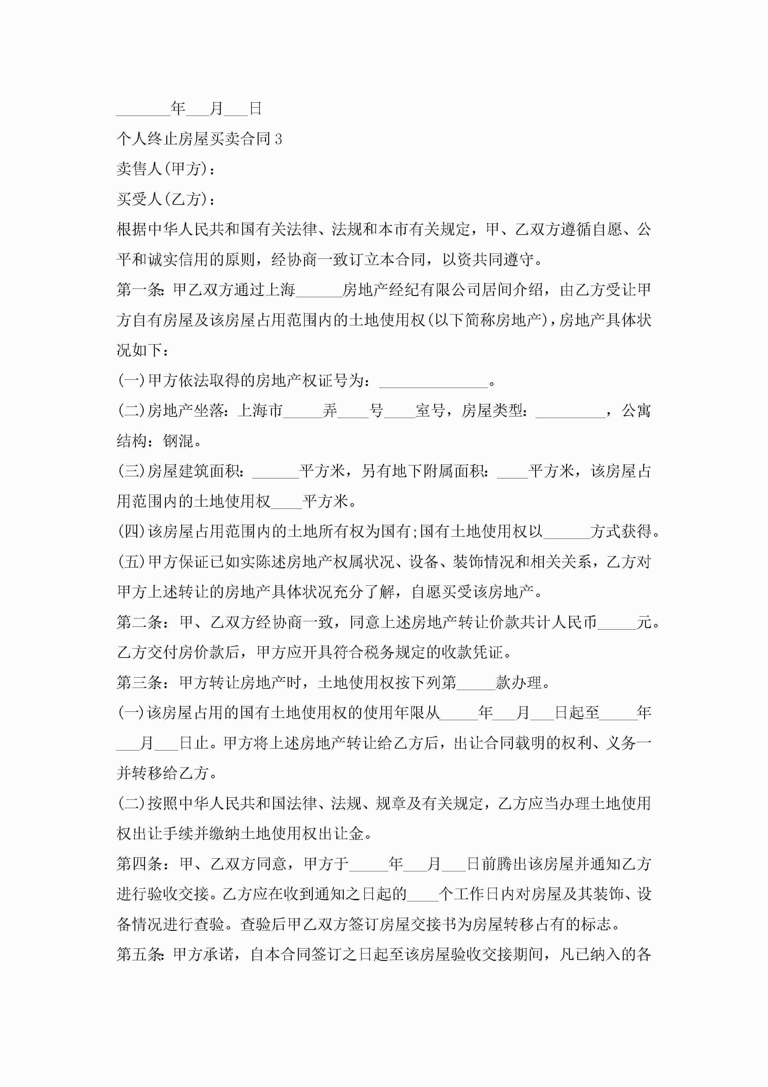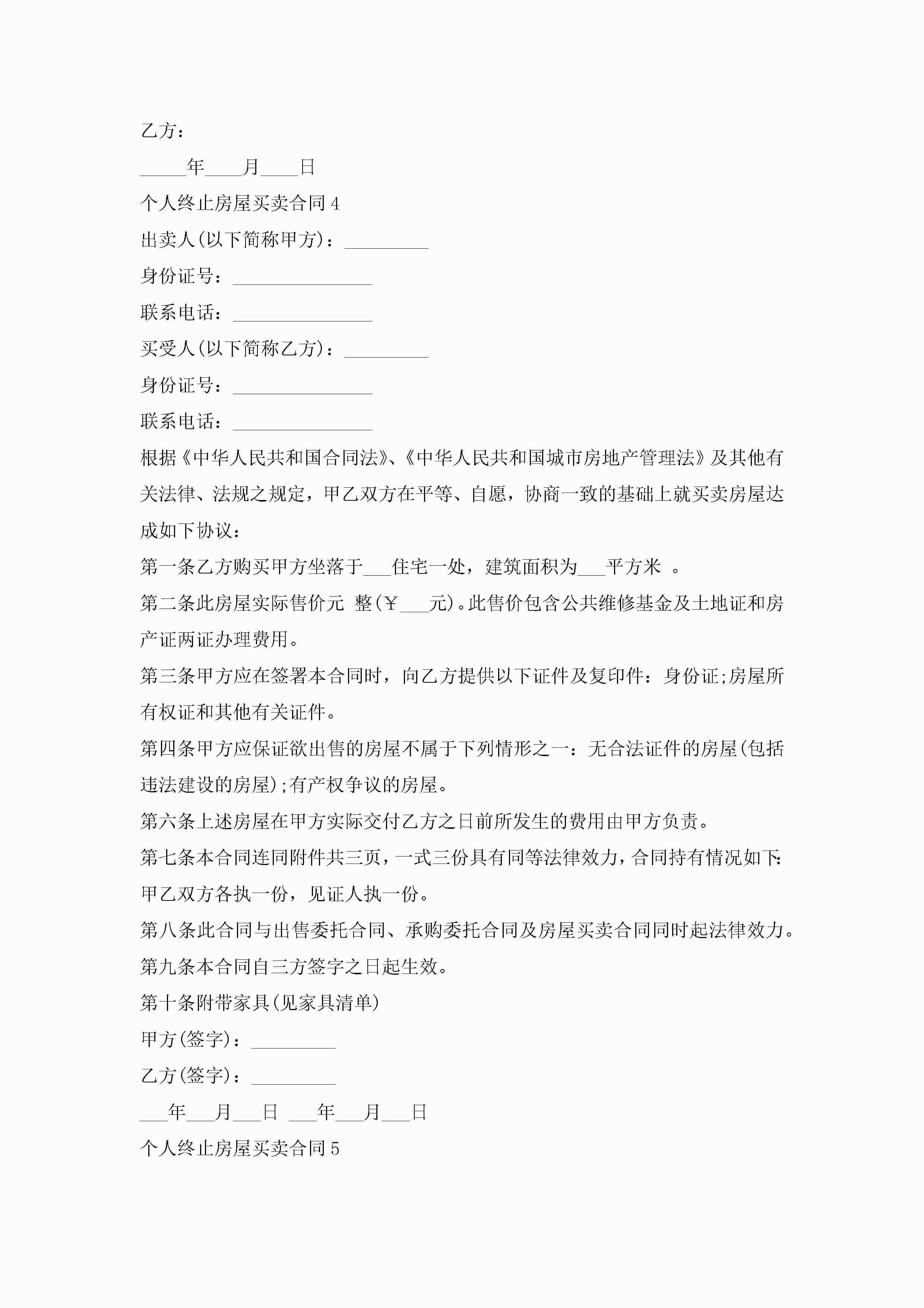 个人终止房屋买卖合同5篇jugei3月23日 01:38发布关注195 个人终止房屋买卖合同5篇此内容为付费资源,请付费后查看¥10.9 单篇文档限时特惠¥15个人会员开通企业会员开通立即下载无需登陆!可直接快捷下载单个模板付费资源© 版权声明THE ENDWord模板# 实用文档# 实用模板# 合同模板# 买卖合同 如有问题,可点击最底部“联系我们”联系客服 分享QQ空间微博QQ好友海报分享复制链接收藏