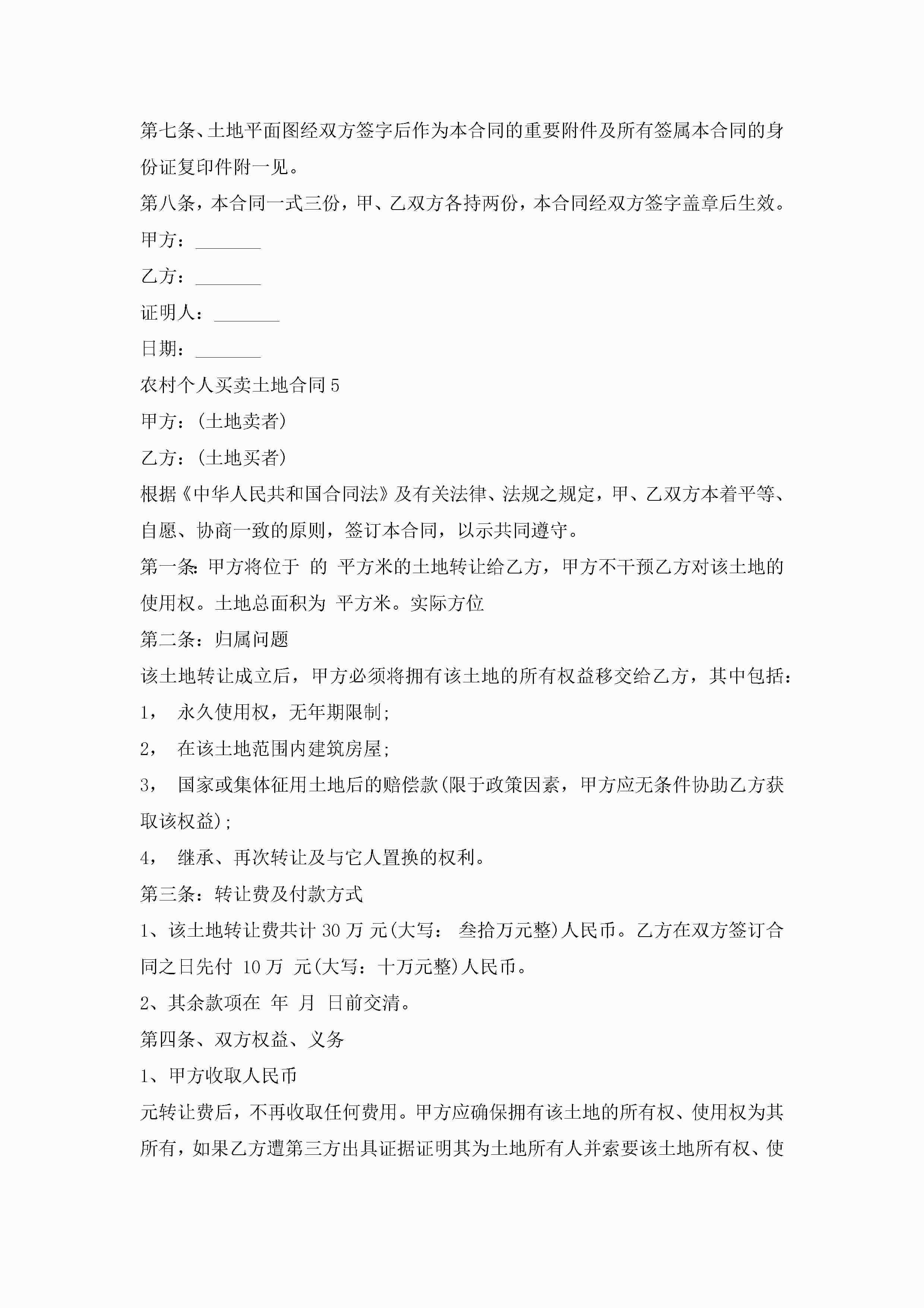 农村个人买卖土地合同5篇jugei3月23日 01:38发布关注187 农村个人买卖土地合同5篇此内容为付费资源,请付费后查看¥10.9 单篇文档限时特惠¥15个人会员开通企业会员开通立即下载无需登陆!可直接快捷下载单个模板付费资源© 版权声明THE ENDWord模板# 实用文档# 实用模板# 合同模板# 买卖合同 如有问题,可点击最底部“联系我们”联系客服 分享QQ空间微博QQ好友海报分享复制链接收藏