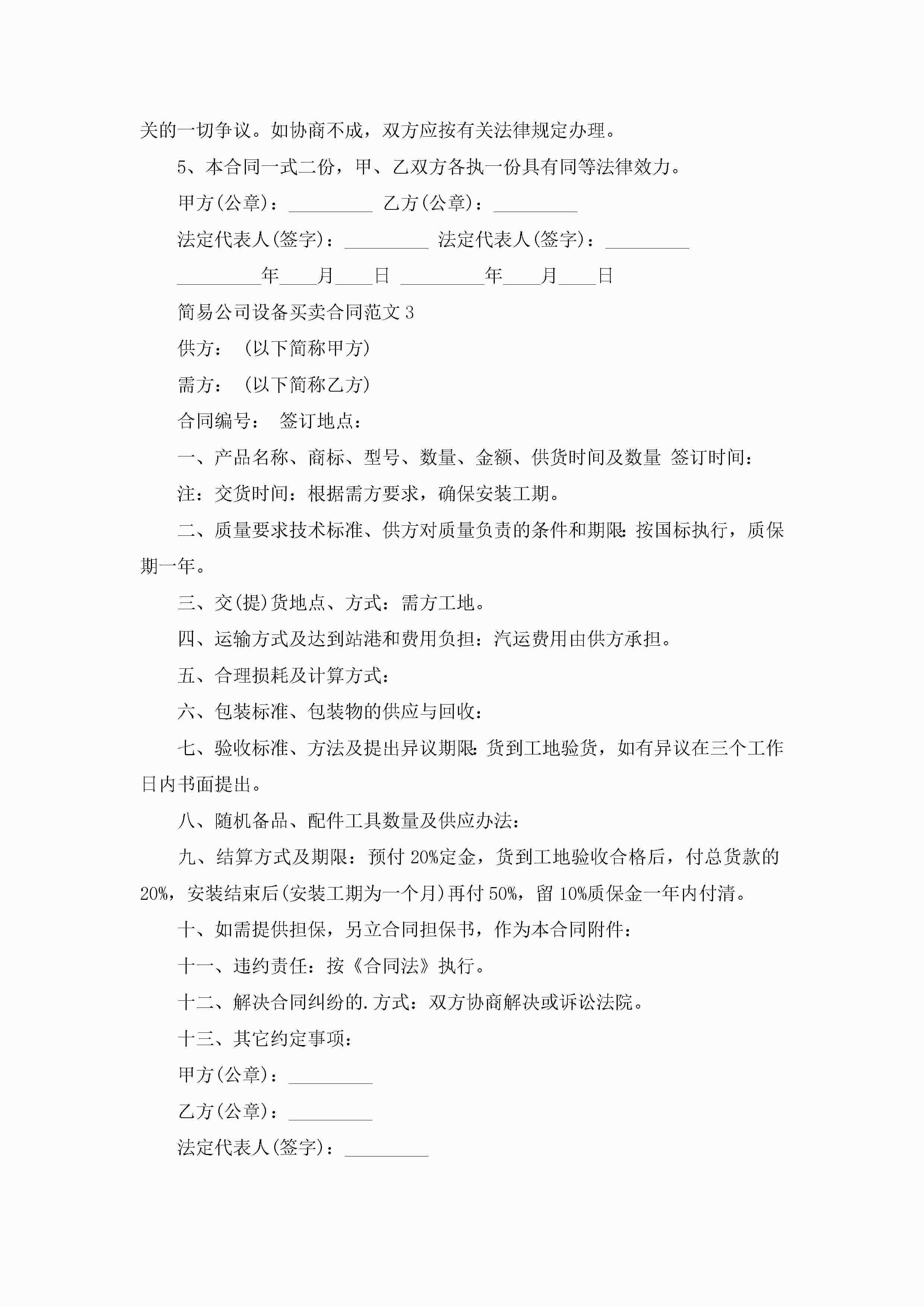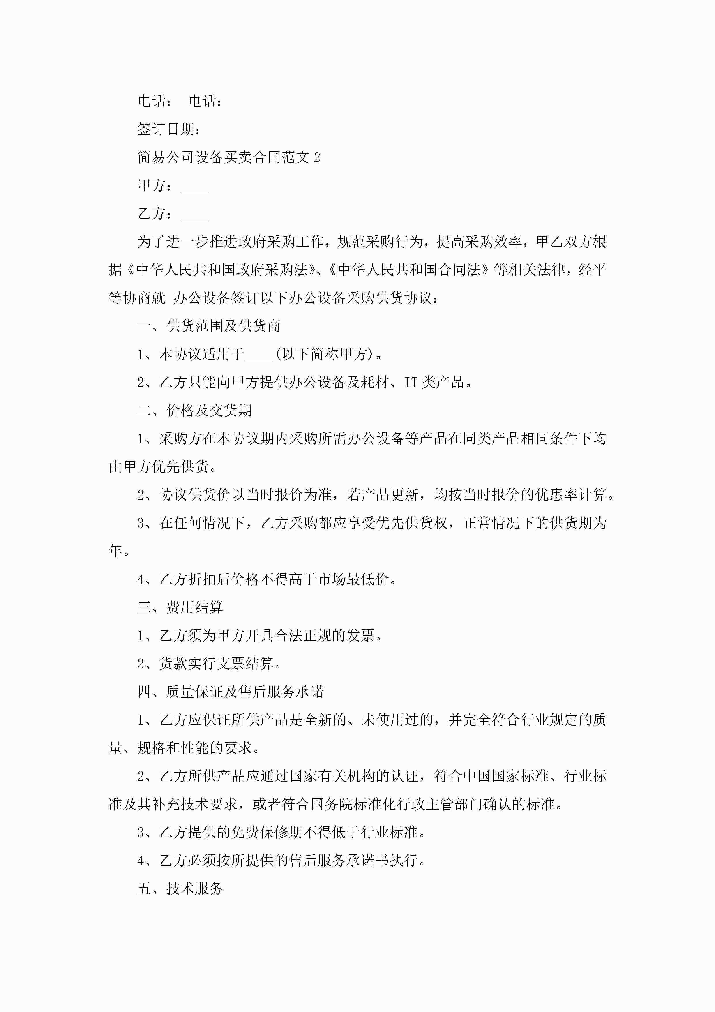 简易公司设备买卖合同范文5篇jugei3月23日 01:38发布关注257 简易公司设备买卖合同范文5篇此内容为付费资源,请付费后查看¥10.9 单篇文档限时特惠¥15个人会员开通企业会员开通立即下载无需登陆!可直接快捷下载单个模板付费资源© 版权声明THE ENDWord模板# 实用文档# 实用模板# 合同模板# 买卖合同 如有问题,可点击最底部“联系我们”联系客服 分享QQ空间微博QQ好友海报分享复制链接收藏