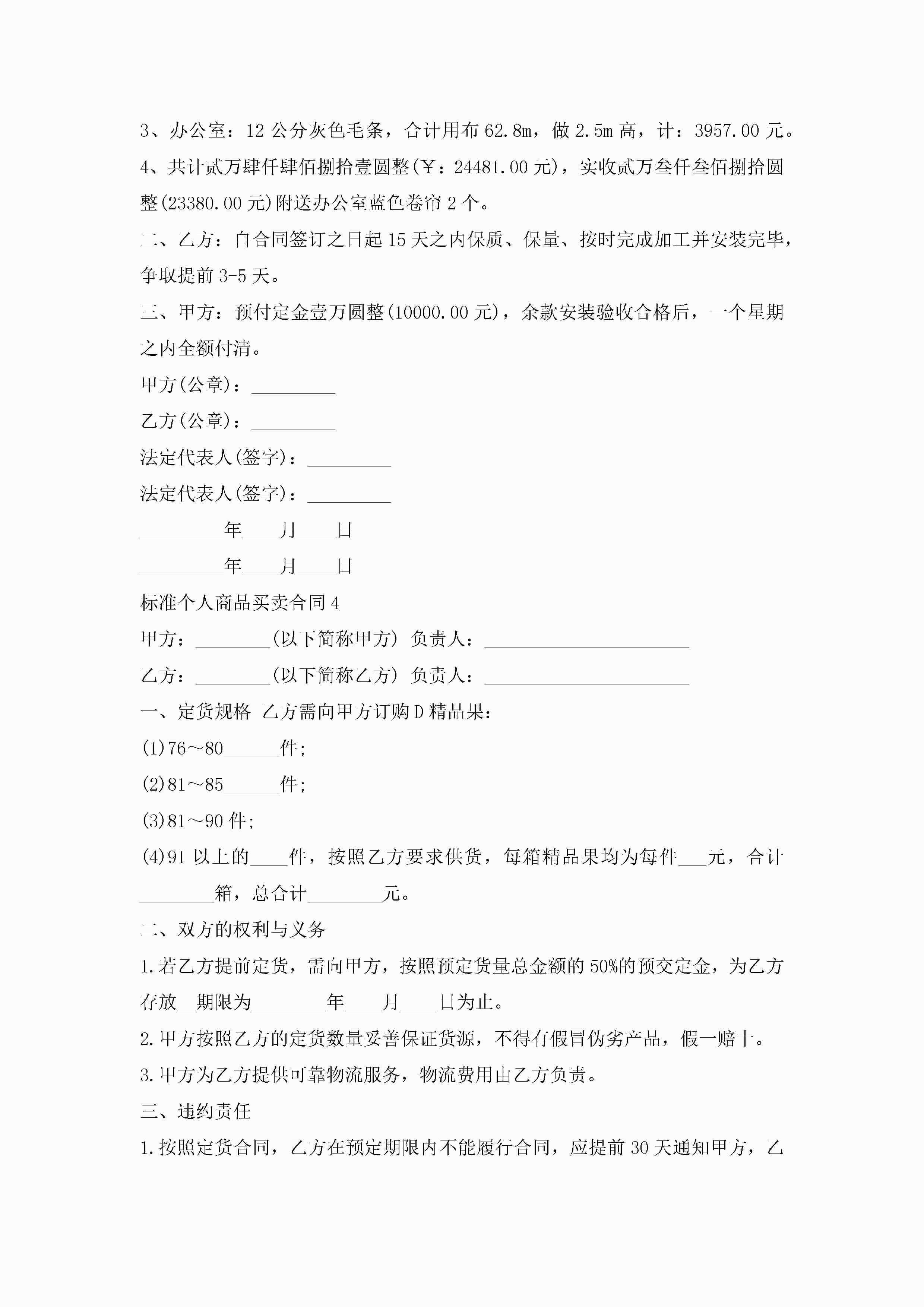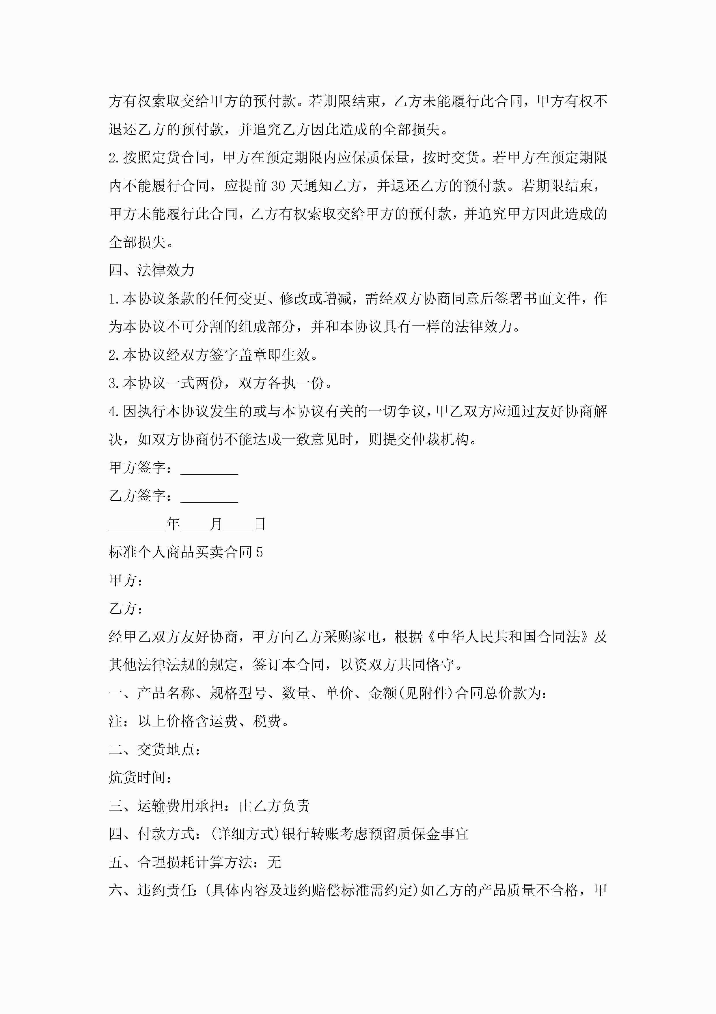 标准个人商品买卖合同5篇怎么写jugei3月23日 01:38发布关注263 标准个人商品买卖合同5篇怎么写此内容为付费资源,请付费后查看¥10.9 单篇文档限时特惠¥15个人会员开通企业会员开通立即下载无需登陆!可直接快捷下载单个模板付费资源© 版权声明THE ENDWord模板# 实用文档# 实用模板# 合同模板# 买卖合同 如有问题,可点击最底部“联系我们”联系客服 分享QQ空间微博QQ好友海报分享复制链接收藏