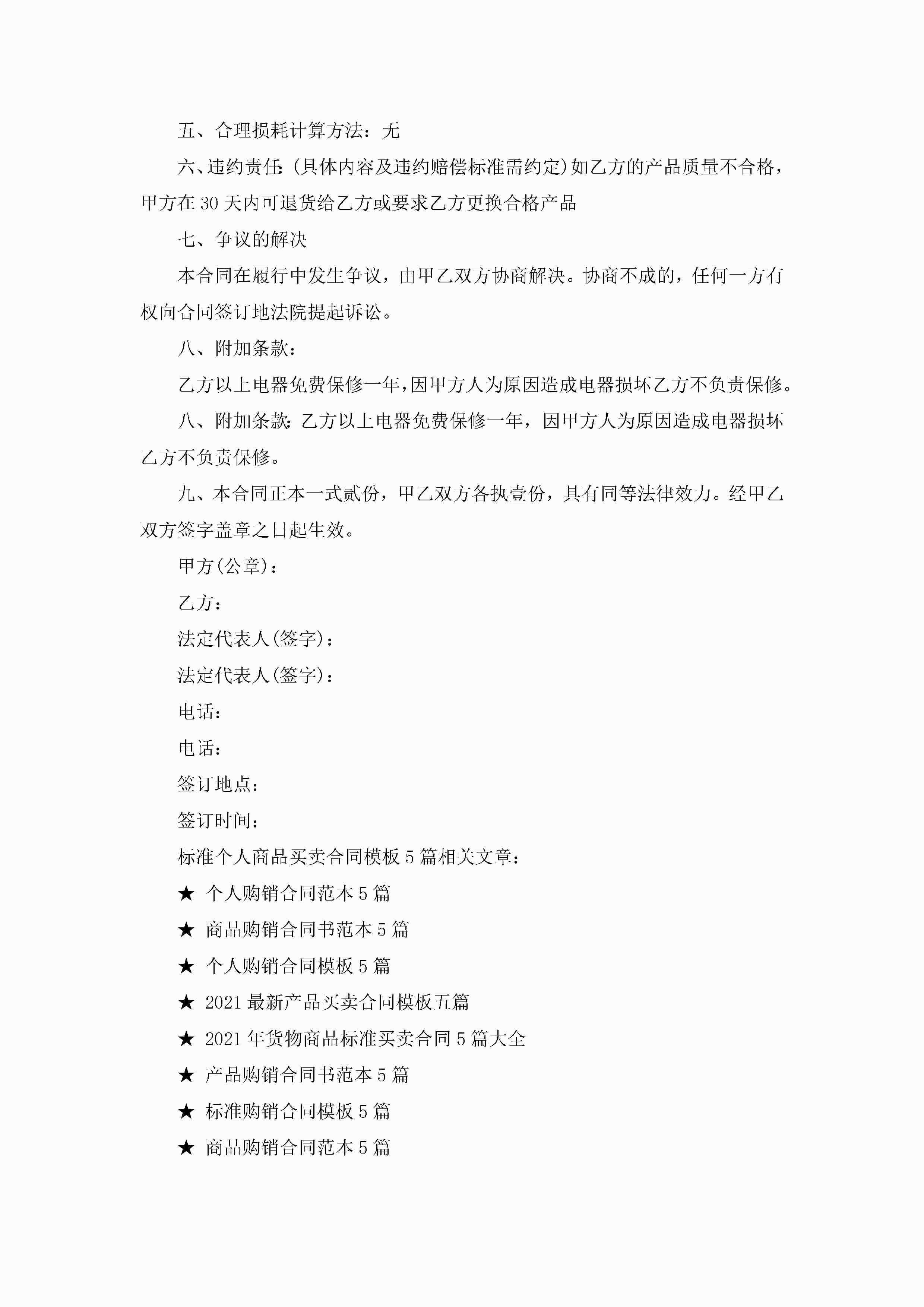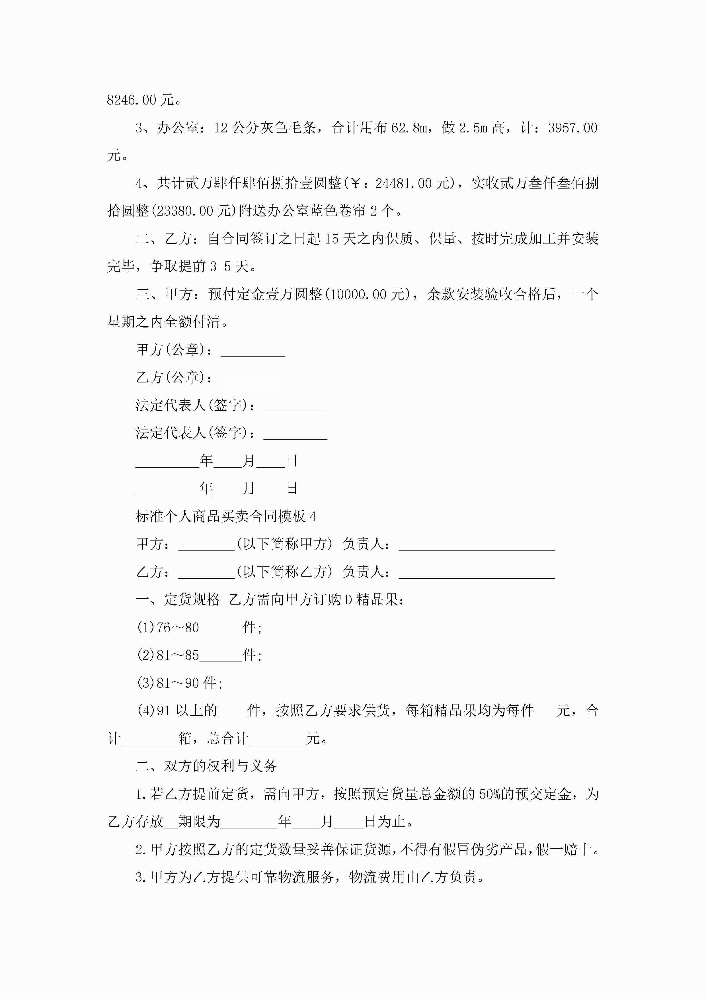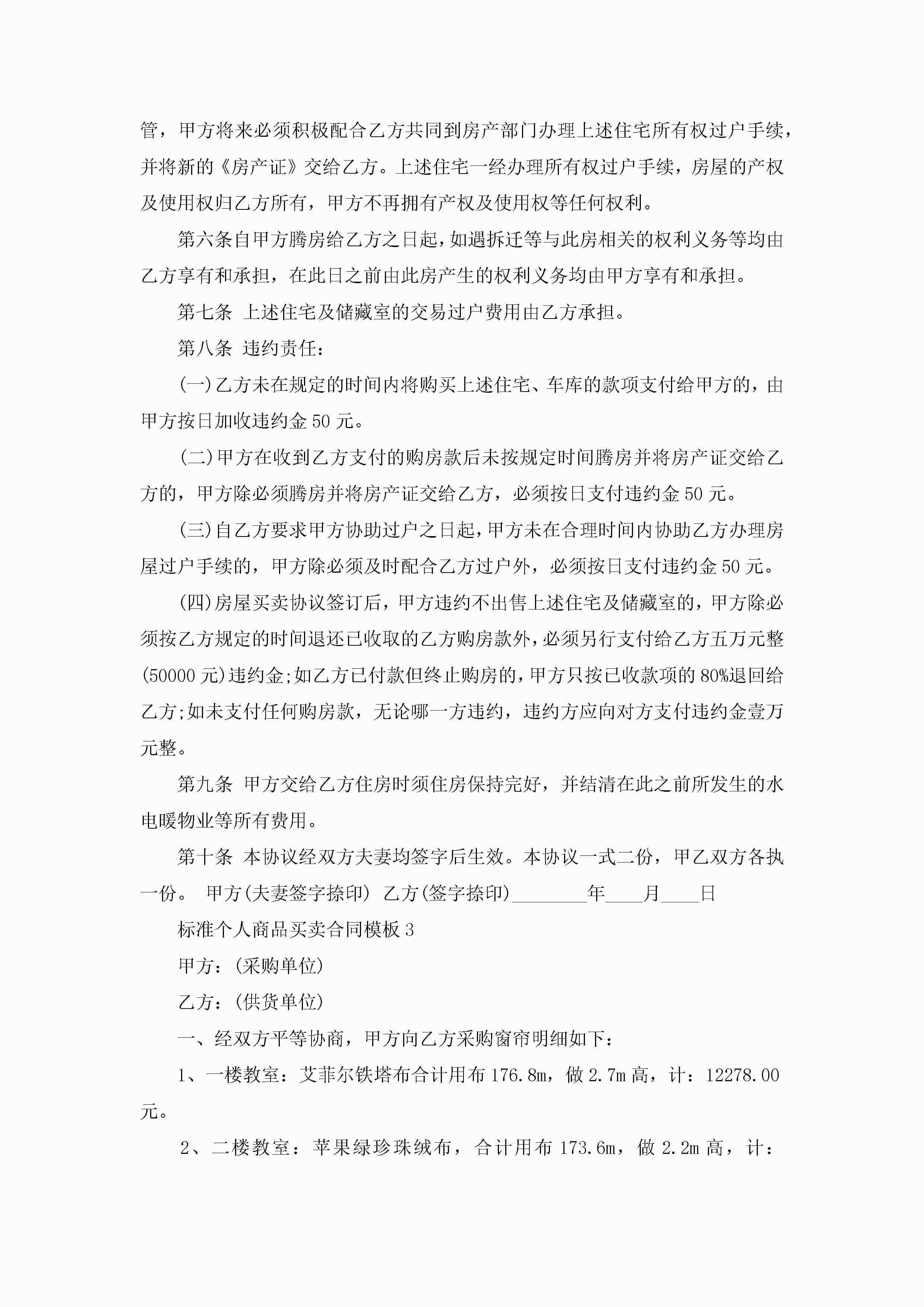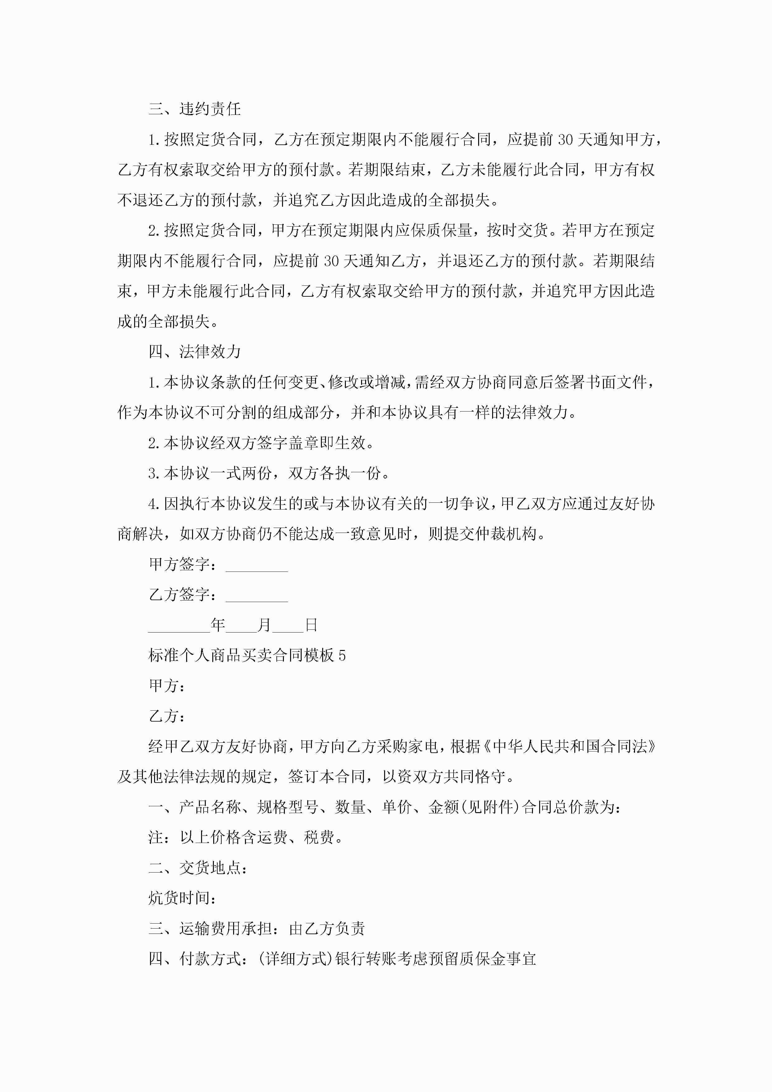 关于标准个人商品买卖合同模板5篇jugei3月23日 01:38发布关注258 关于标准个人商品买卖合同模板5篇此内容为付费资源,请付费后查看¥10.9 单篇文档限时特惠¥15个人会员开通企业会员开通立即下载无需登陆!可直接快捷下载单个模板付费资源© 版权声明THE ENDWord模板# 实用文档# 实用模板# 合同模板# 买卖合同 如有问题,可点击最底部“联系我们”联系客服 分享QQ空间微博QQ好友海报分享复制链接收藏