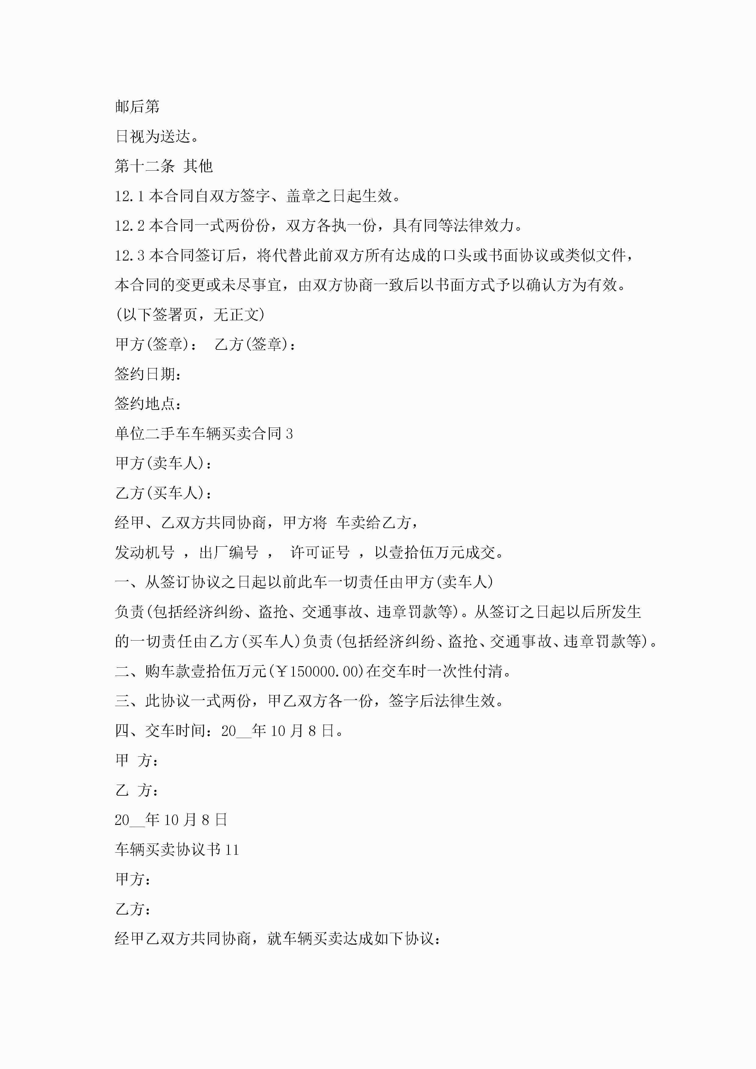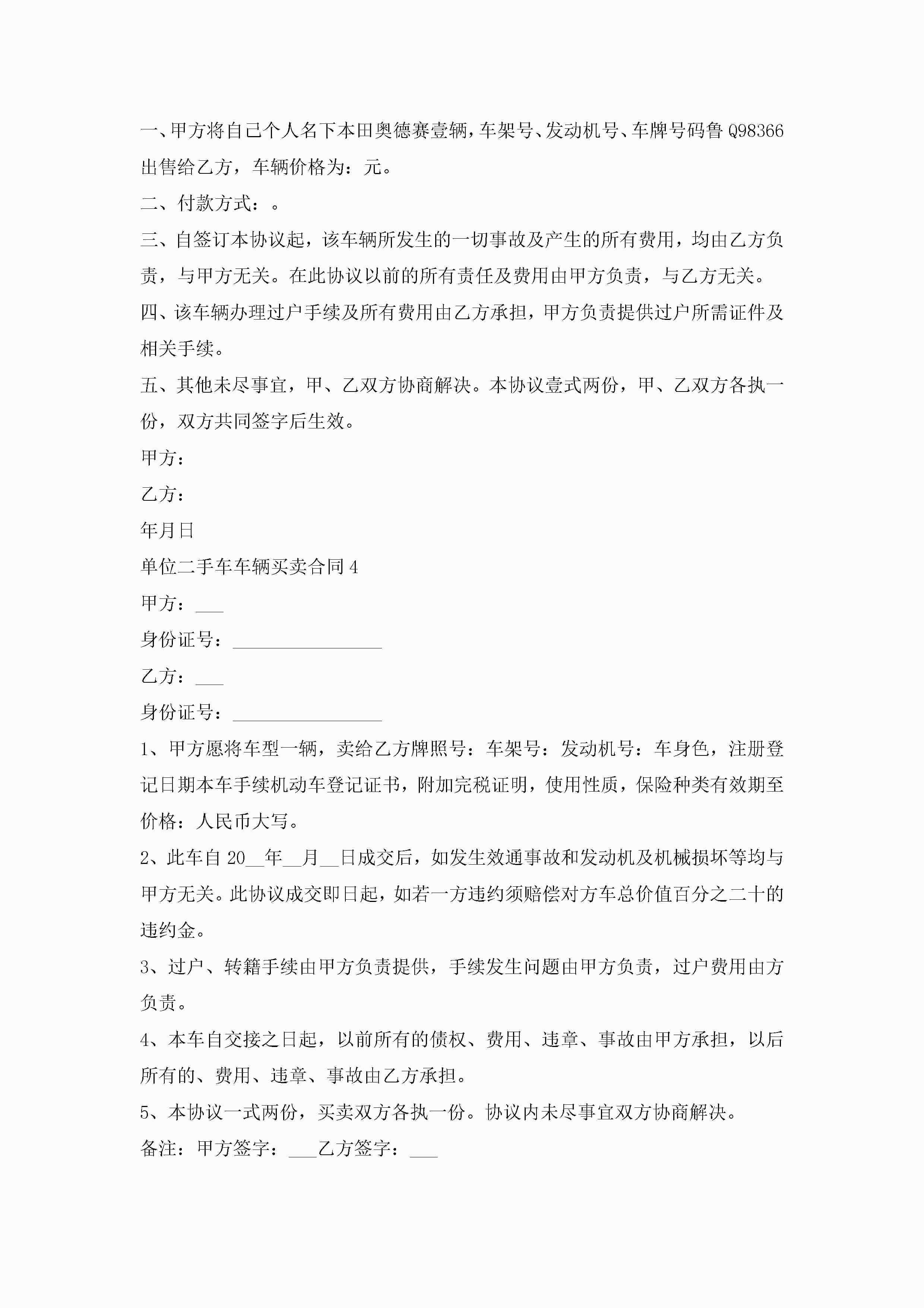 关于单位二手车车辆买卖合同5篇jugei3月23日 01:38发布关注186 关于单位二手车车辆买卖合同5篇此内容为付费资源,请付费后查看¥10.9 单篇文档限时特惠¥15个人会员开通企业会员开通立即下载无需登陆!可直接快捷下载单个模板付费资源© 版权声明THE ENDWord模板# 实用文档# 实用模板# 合同模板# 买卖合同 如有问题,可点击最底部“联系我们”联系客服 分享QQ空间微博QQ好友海报分享复制链接收藏
