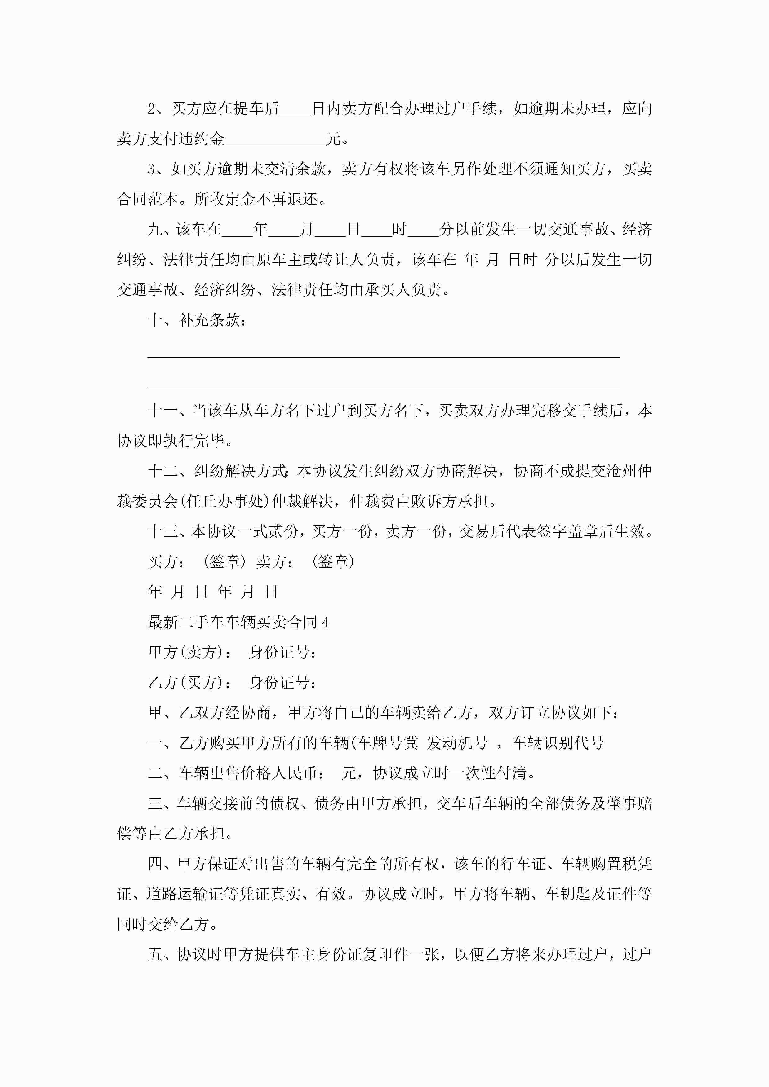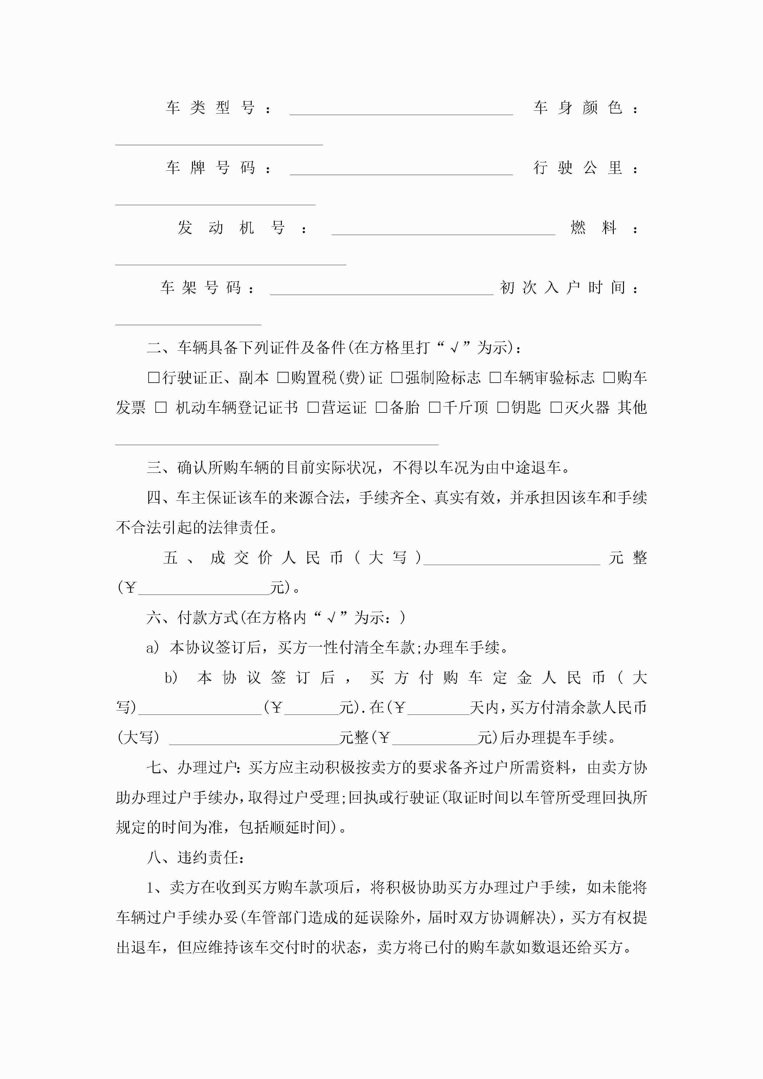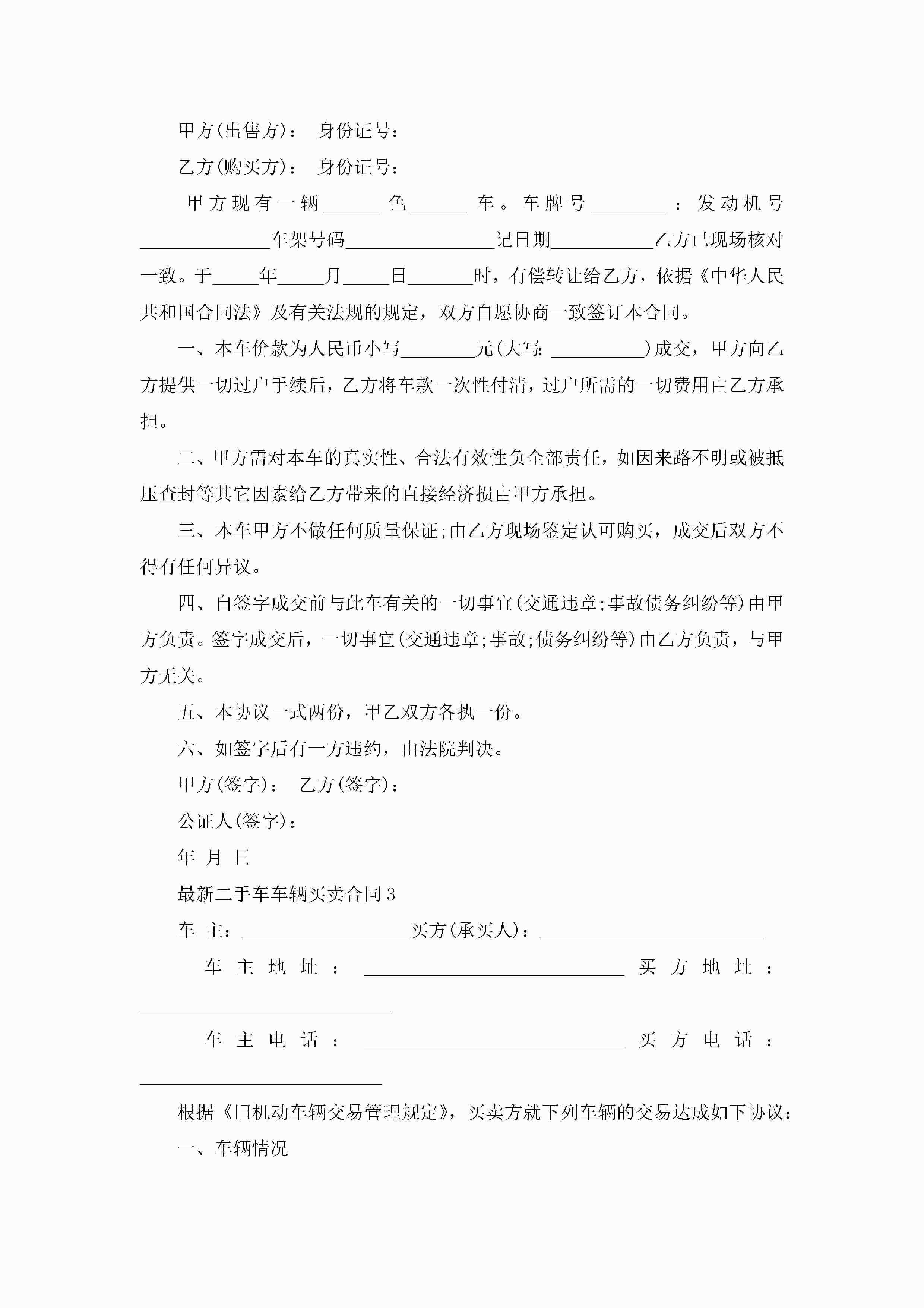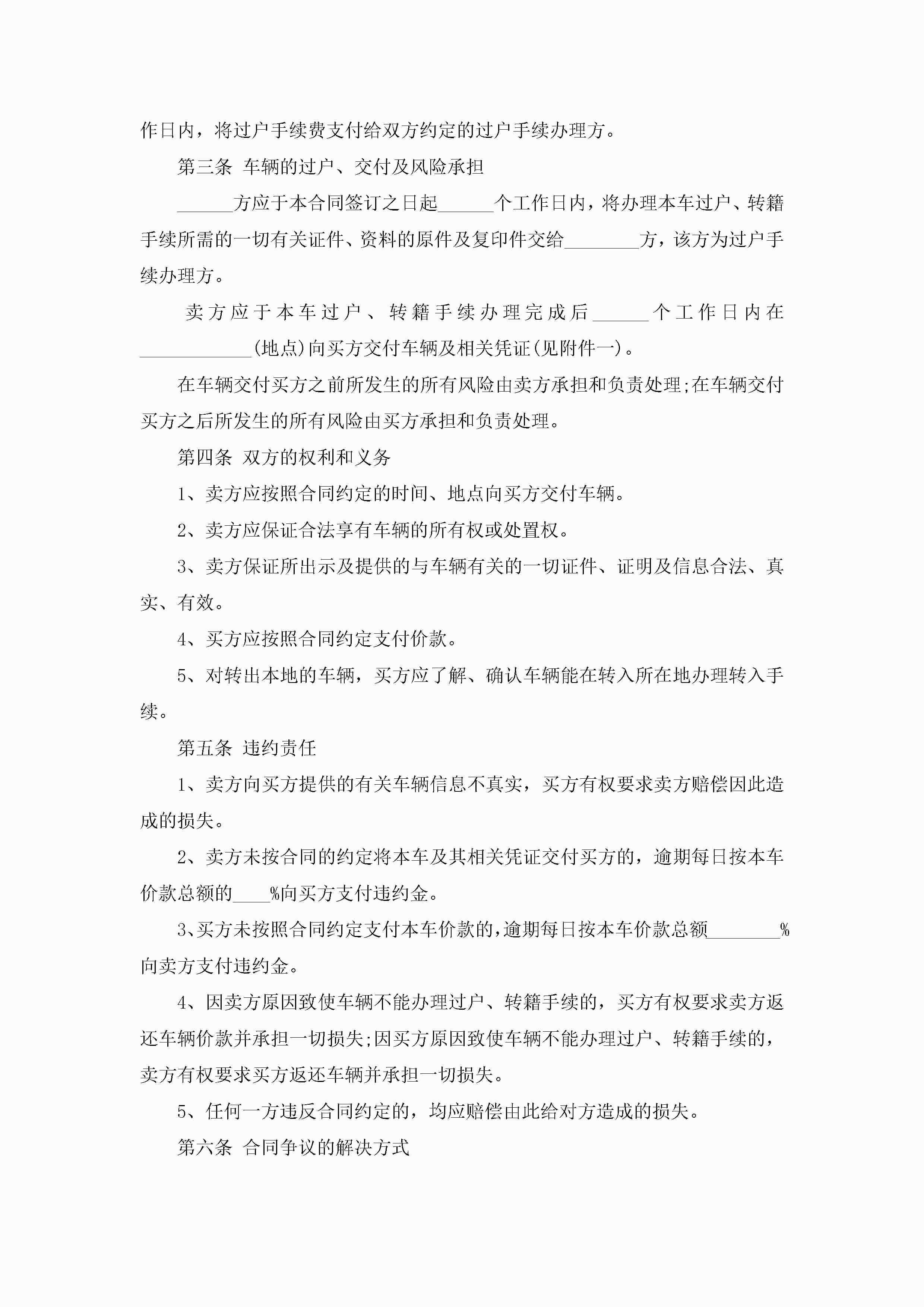 最新二手车车辆买卖合同范文5篇jugei3月23日 01:38发布关注255 最新二手车车辆买卖合同范文5篇此内容为付费资源,请付费后查看¥10.9 单篇文档限时特惠¥15个人会员开通企业会员开通立即下载无需登陆!可直接快捷下载单个模板付费资源© 版权声明THE ENDWord模板# 实用文档# 实用模板# 合同模板# 买卖合同 如有问题,可点击最底部“联系我们”联系客服 分享QQ空间微博QQ好友海报分享复制链接收藏