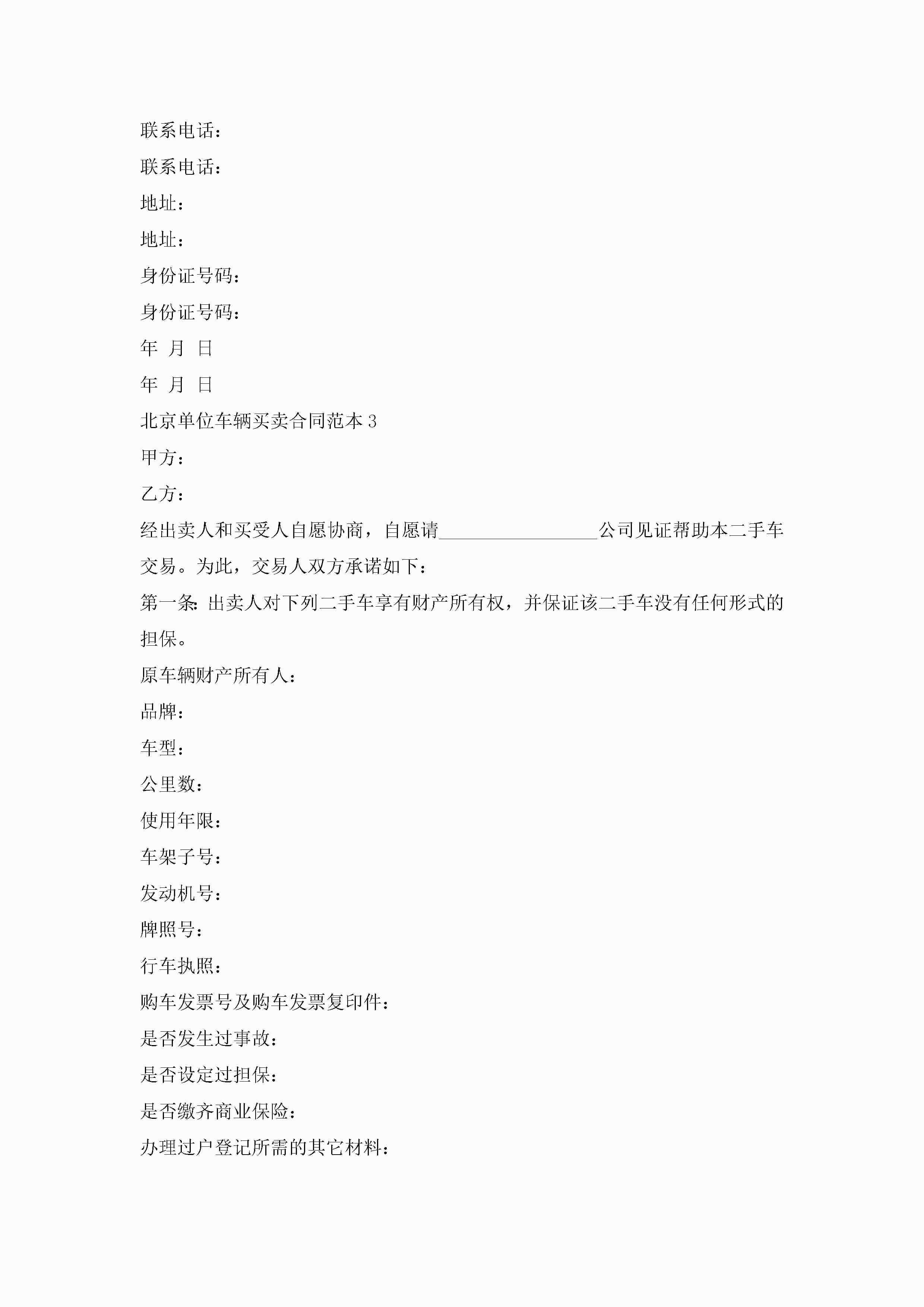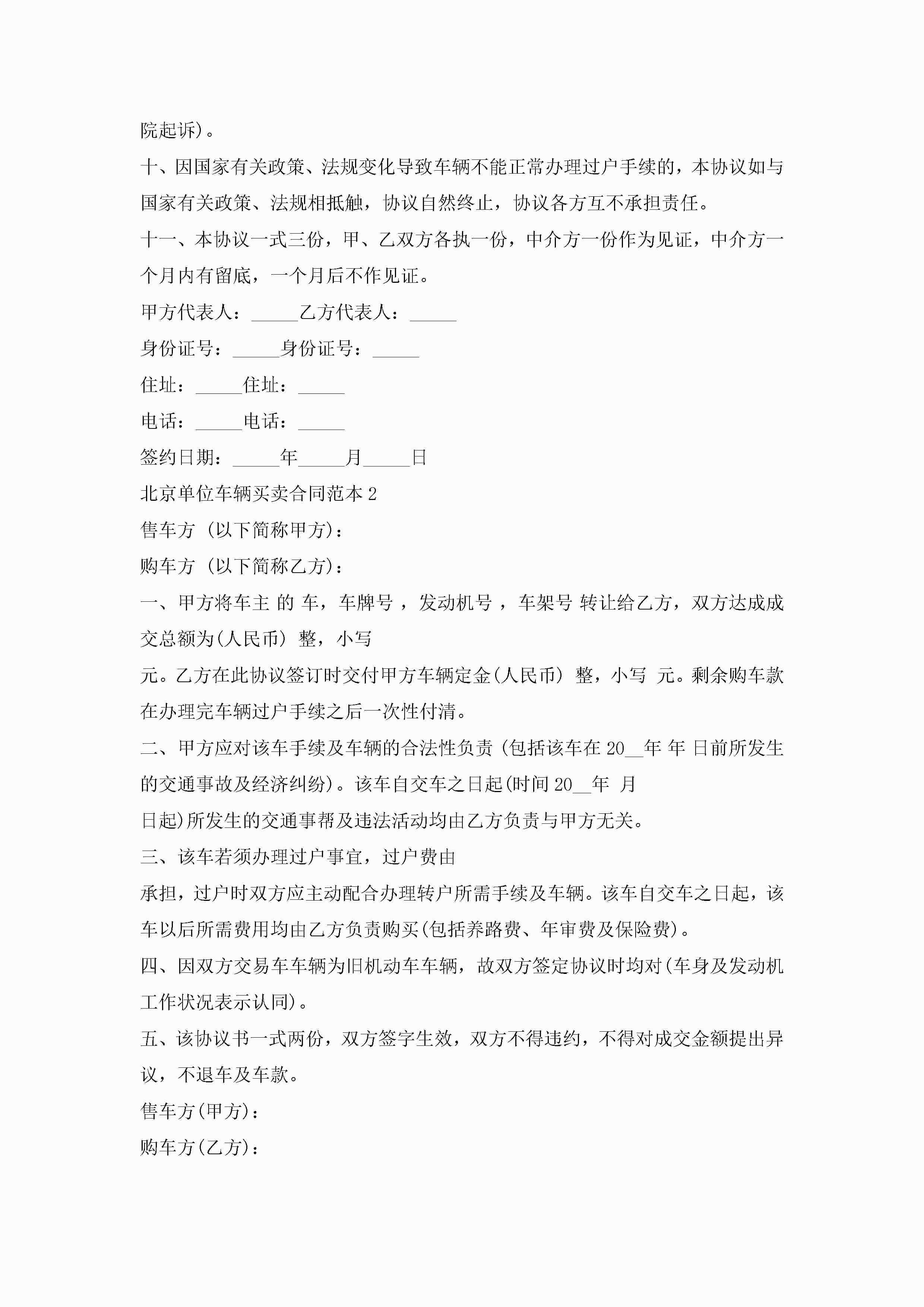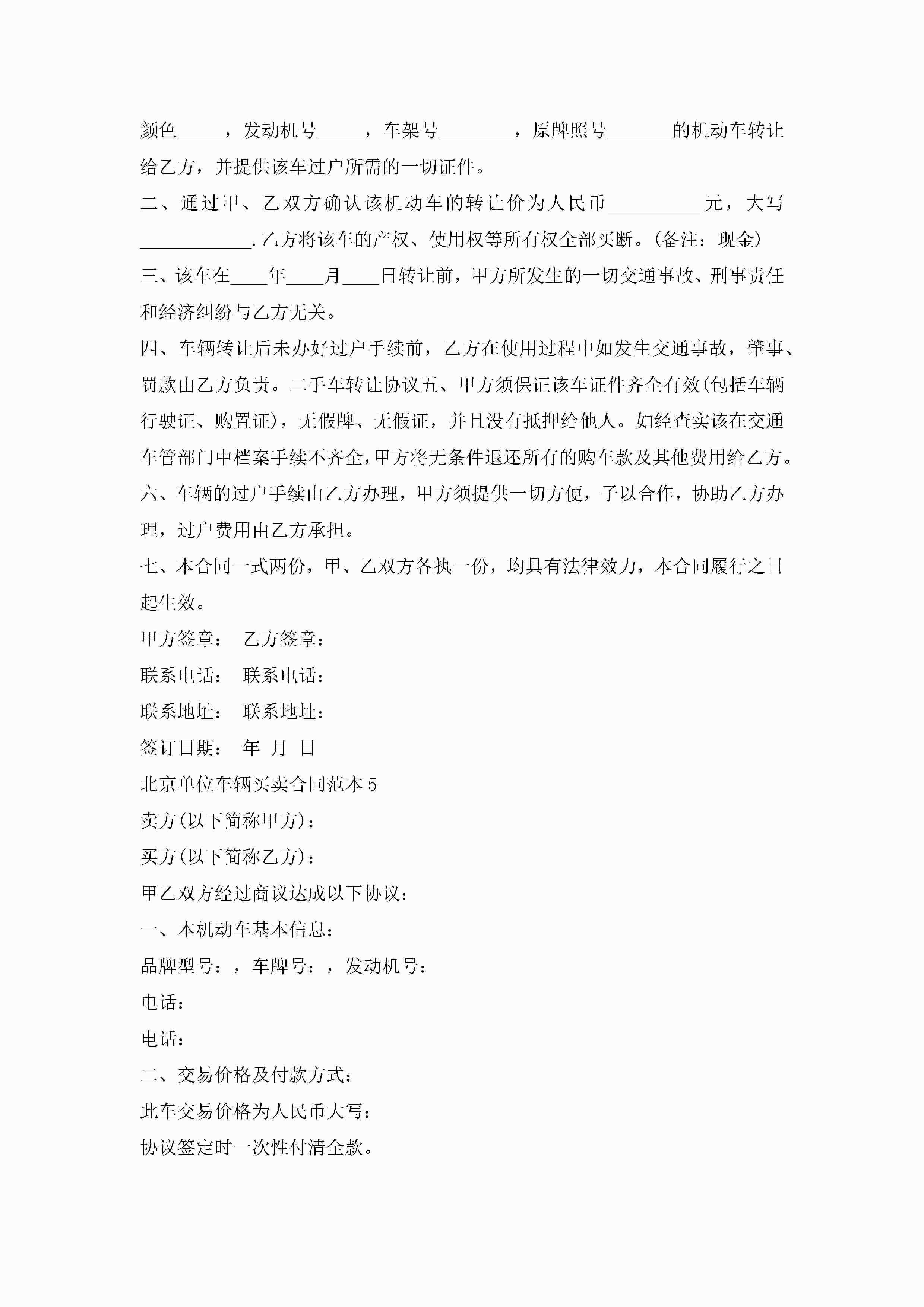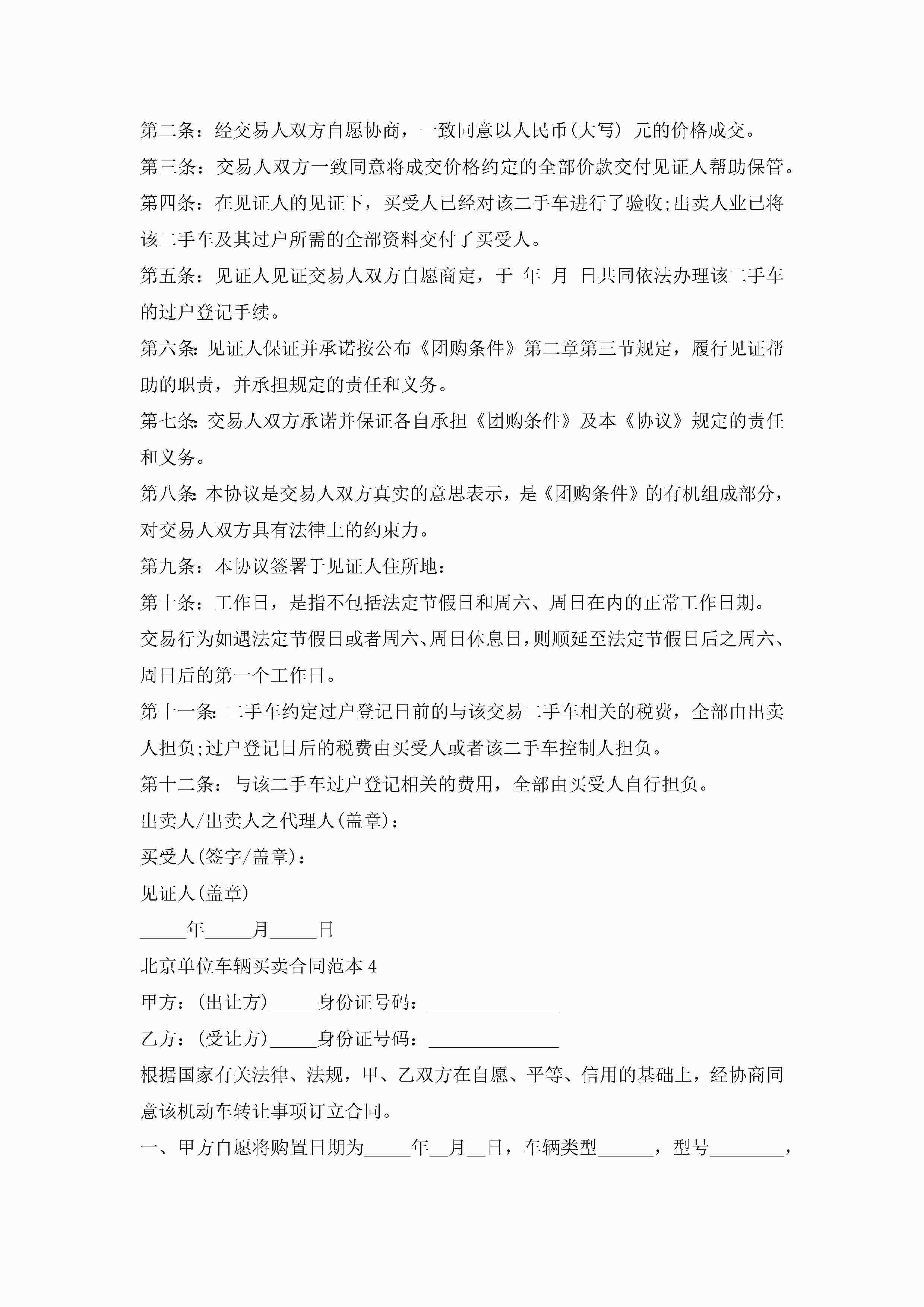 关于北京单位车辆买卖合同范本5篇jugei3月23日 01:38发布关注192 关于北京单位车辆买卖合同范本5篇此内容为付费资源,请付费后查看¥10.9 单篇文档限时特惠¥15个人会员开通企业会员开通立即下载无需登陆!可直接快捷下载单个模板付费资源© 版权声明THE ENDWord模板# 实用文档# 实用模板# 合同模板# 买卖合同 如有问题,可点击最底部“联系我们”联系客服 分享QQ空间微博QQ好友海报分享复制链接收藏