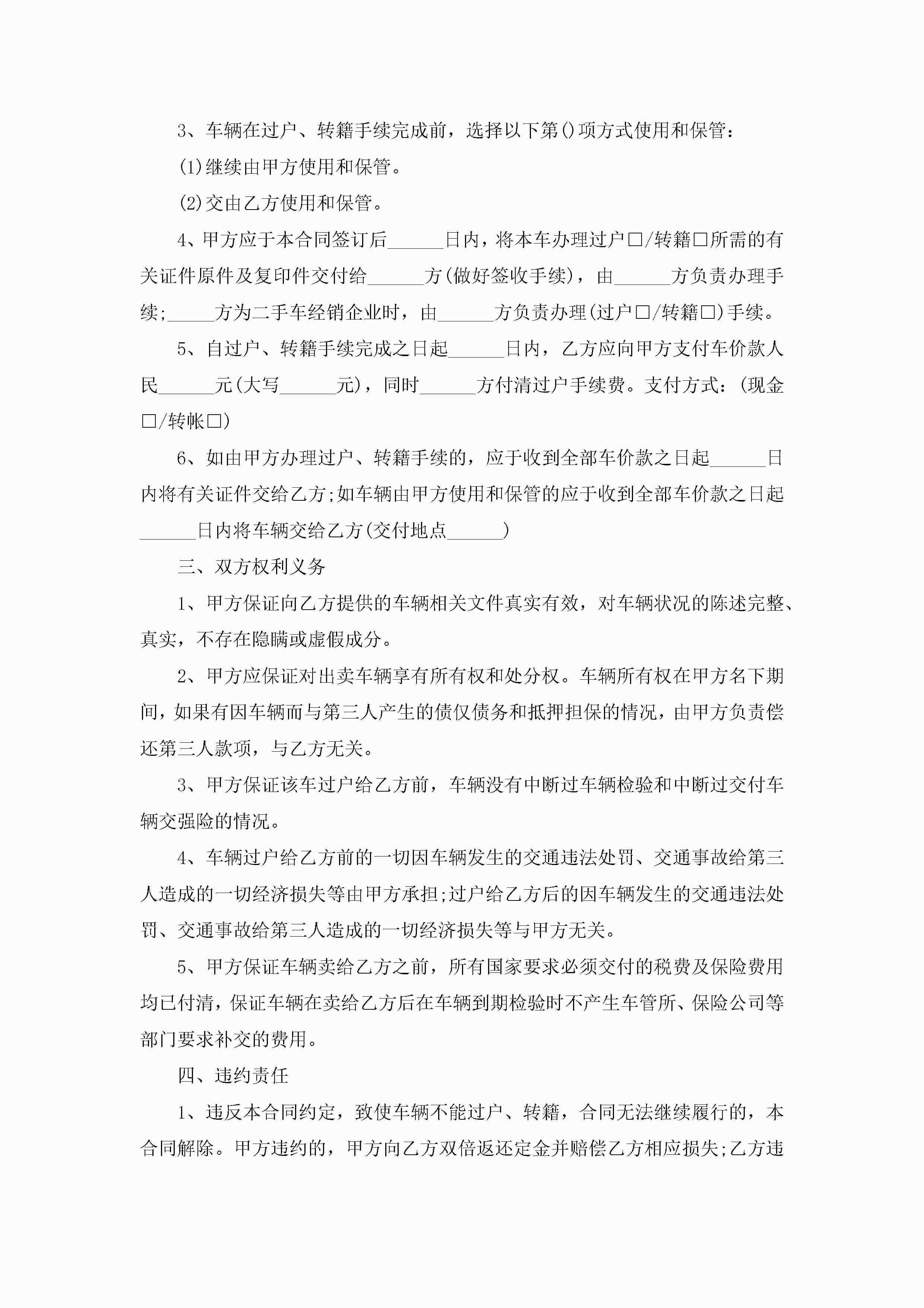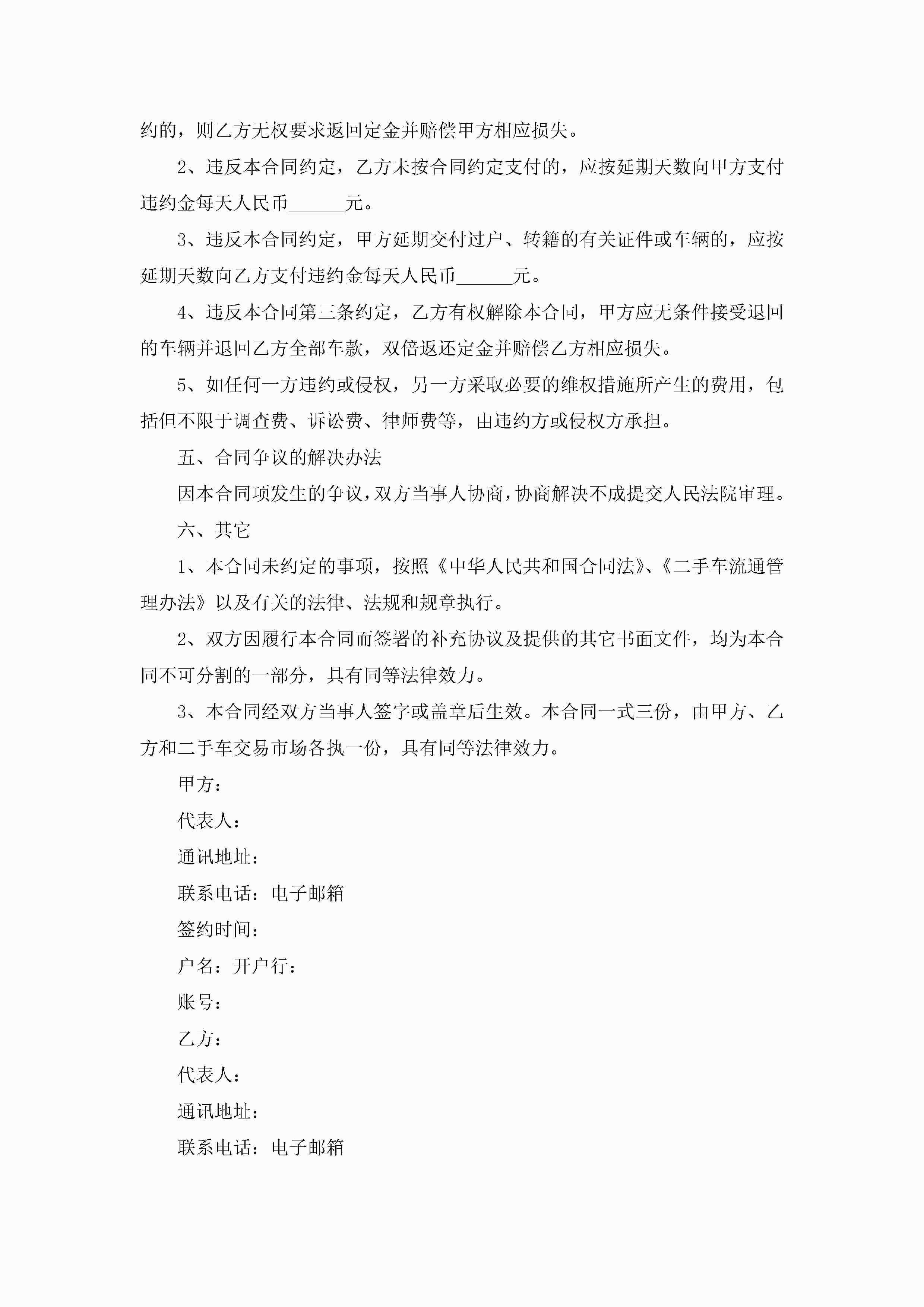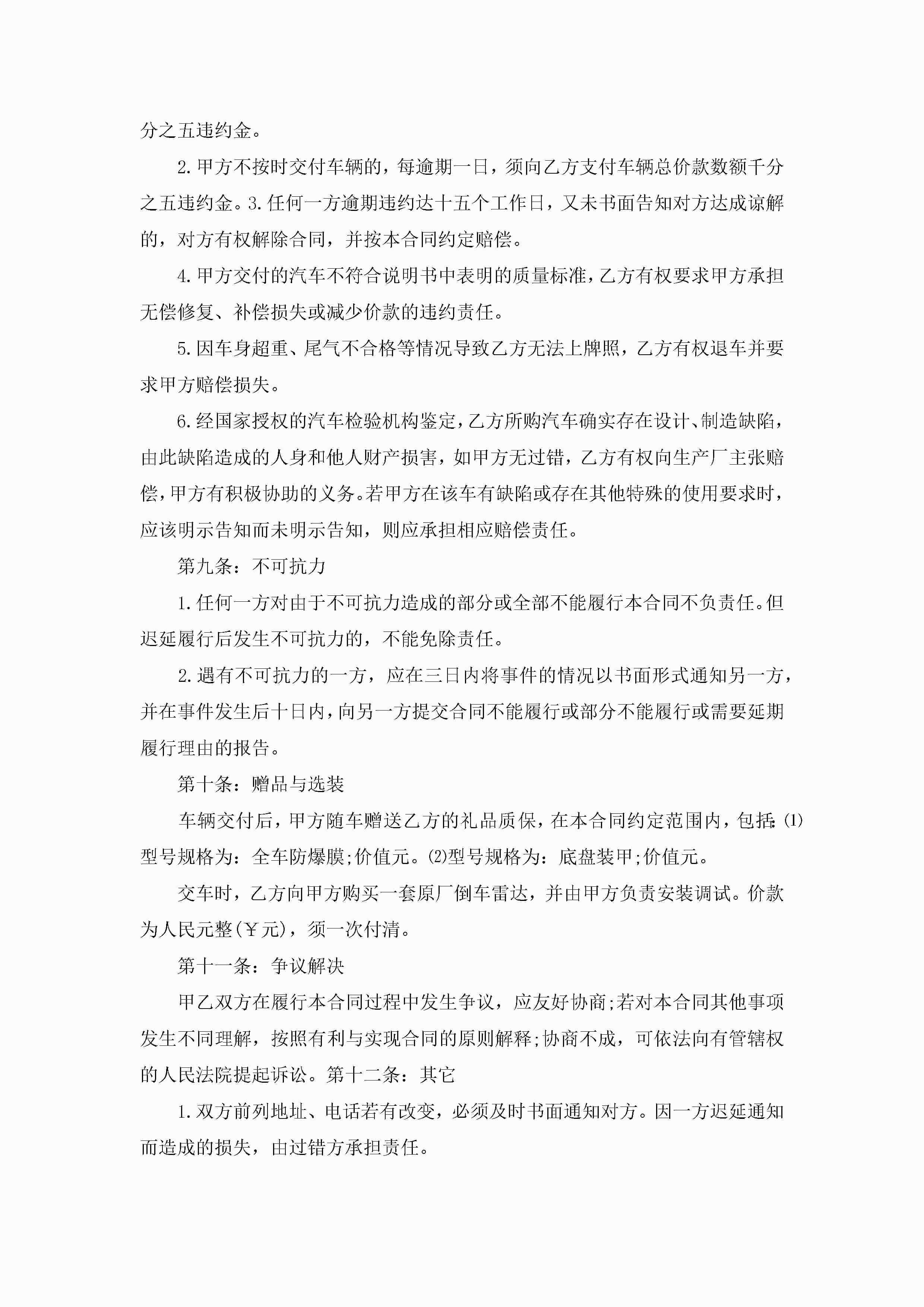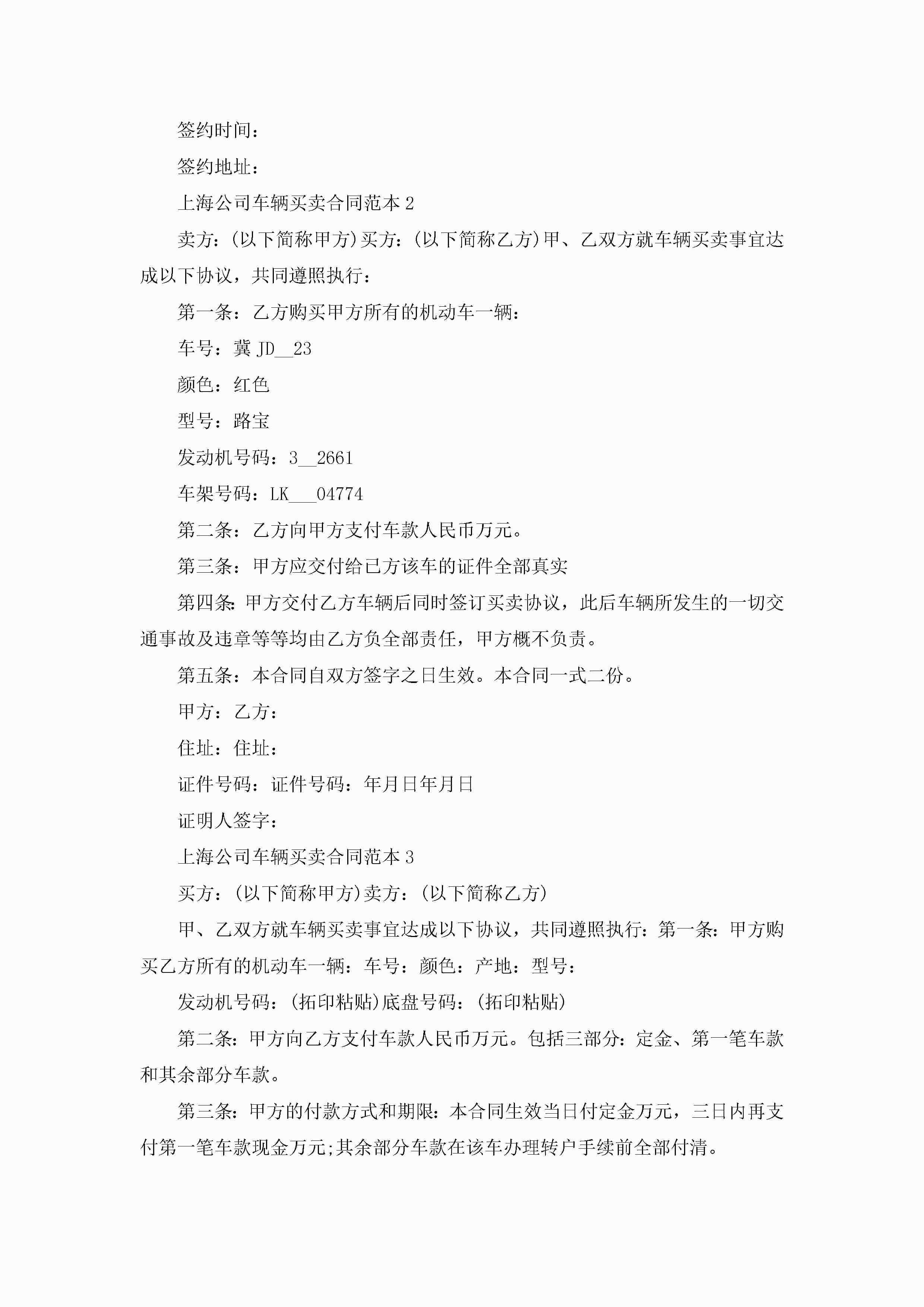 关于上海公司车辆买卖合同范本5篇jugei3月23日 01:38发布关注282 关于上海公司车辆买卖合同范本5篇此内容为付费资源,请付费后查看¥10.9 单篇文档限时特惠¥15个人会员开通企业会员开通立即下载无需登陆!可直接快捷下载单个模板付费资源© 版权声明THE ENDWord模板# 实用文档# 实用模板# 合同模板# 买卖合同 如有问题,可点击最底部“联系我们”联系客服 分享QQ空间微博QQ好友海报分享复制链接收藏