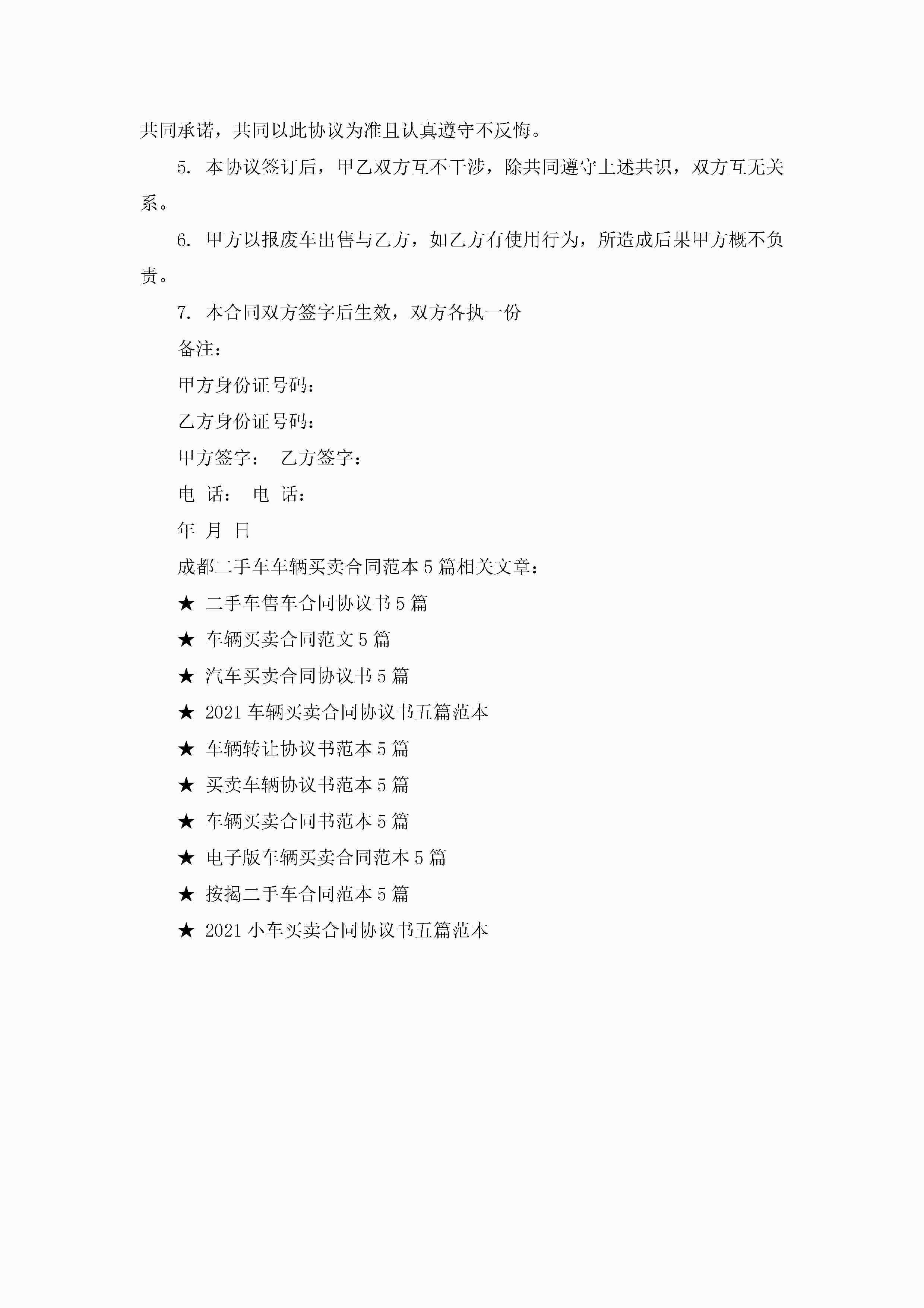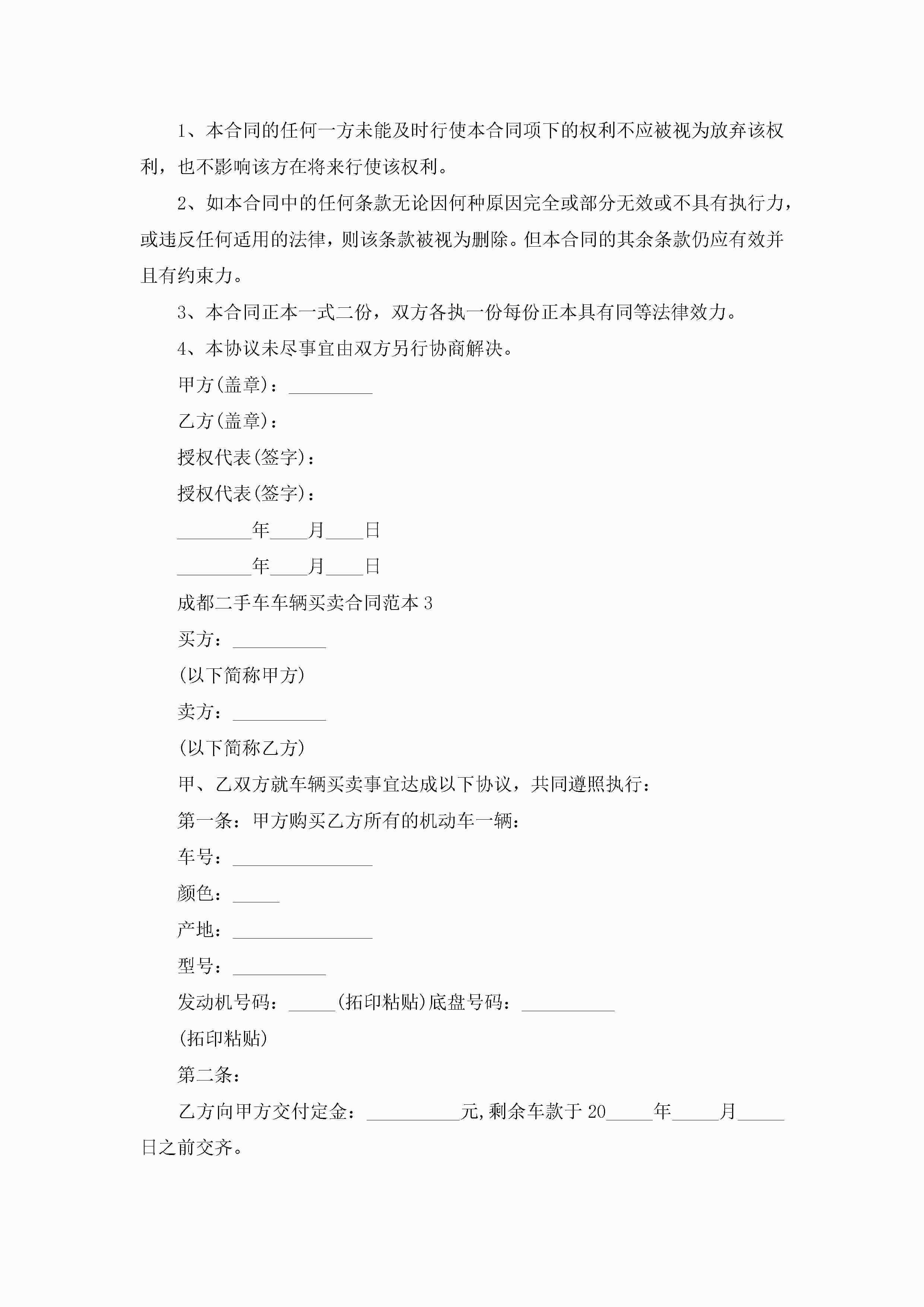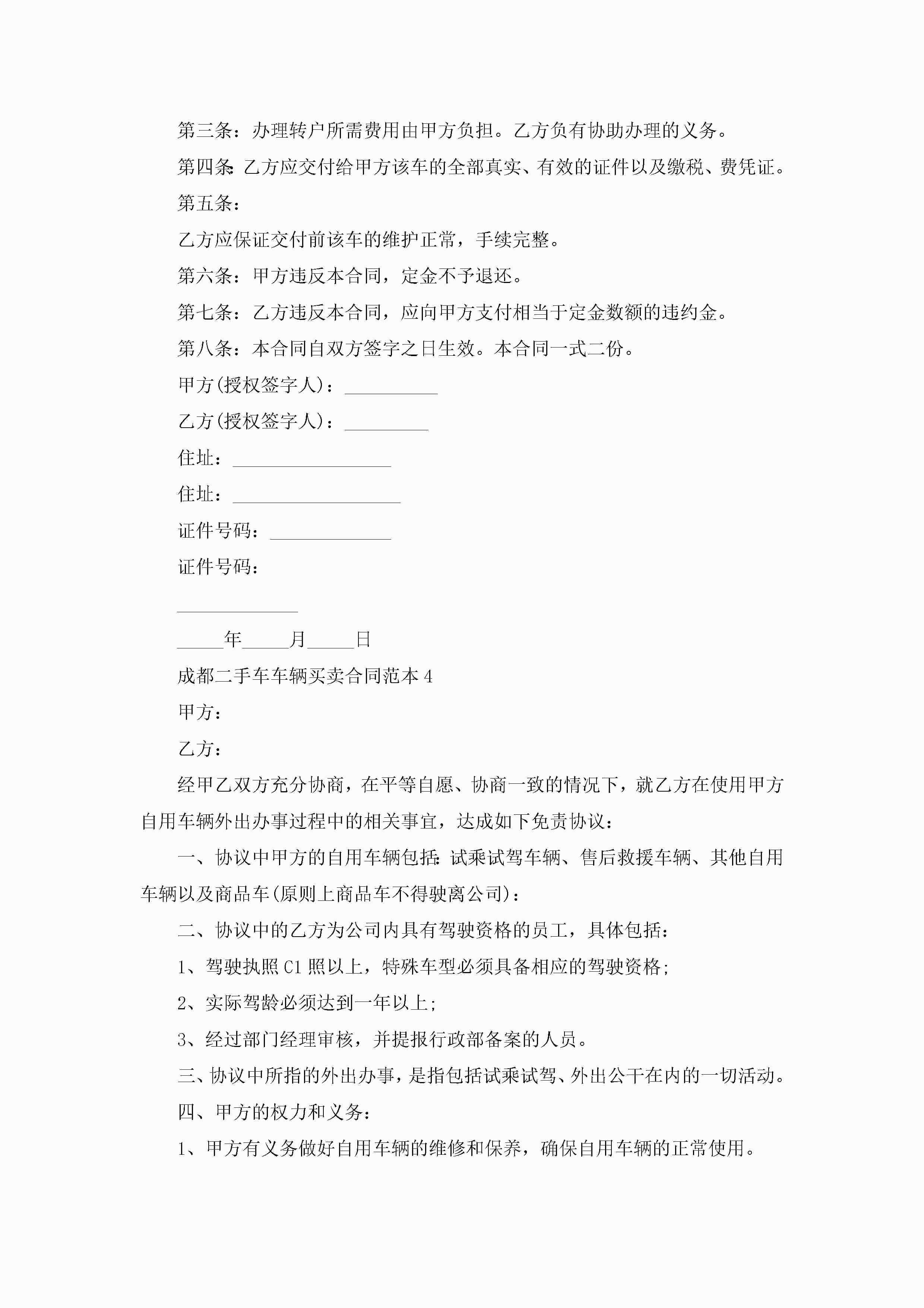 关于成都二手车车辆买卖合同范本5篇jugei3月23日 01:38发布关注267 关于成都二手车车辆买卖合同范本5篇此内容为付费资源,请付费后查看¥10.9 单篇文档限时特惠¥15个人会员开通企业会员开通立即下载无需登陆!可直接快捷下载单个模板付费资源© 版权声明THE ENDWord模板# 实用文档# 实用模板# 合同模板# 买卖合同 如有问题,可点击最底部“联系我们”联系客服 分享QQ空间微博QQ好友海报分享复制链接收藏