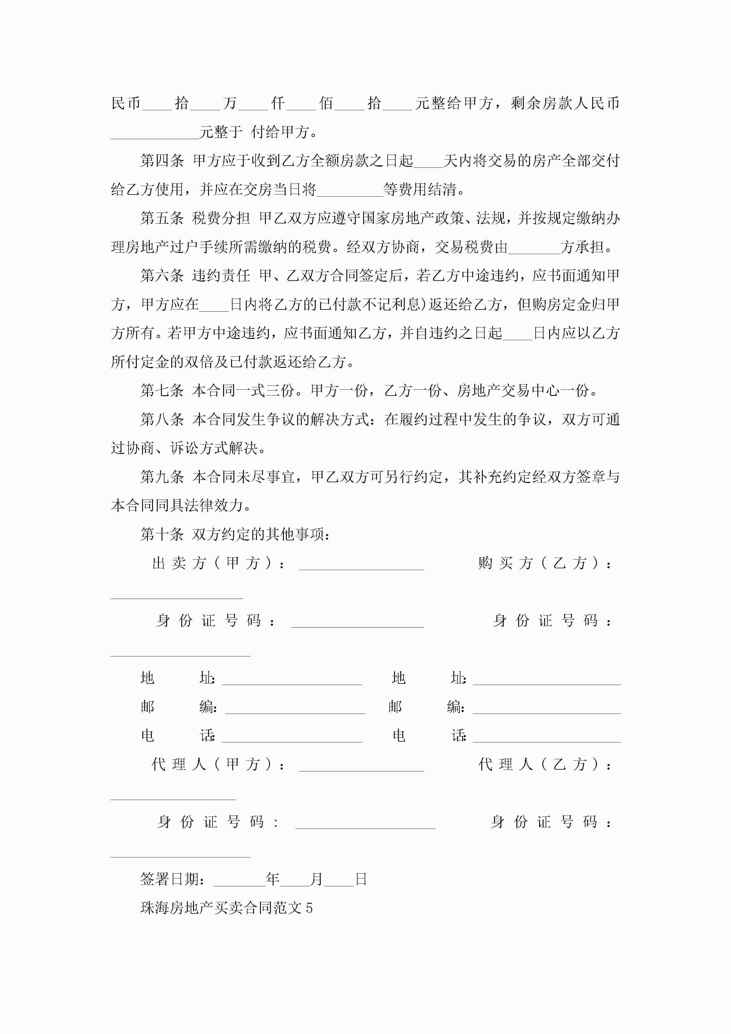 珠海房地产买卖合同范文5篇jugei3月23日 01:38发布关注216 珠海房地产买卖合同范文5篇此内容为付费资源,请付费后查看¥10.9 单篇文档限时特惠¥15个人会员开通企业会员开通立即下载无需登陆!可直接快捷下载单个模板付费资源© 版权声明THE ENDWord模板# 实用文档# 实用模板# 合同模板# 买卖合同 如有问题,可点击最底部“联系我们”联系客服 分享QQ空间微博QQ好友海报分享复制链接收藏
