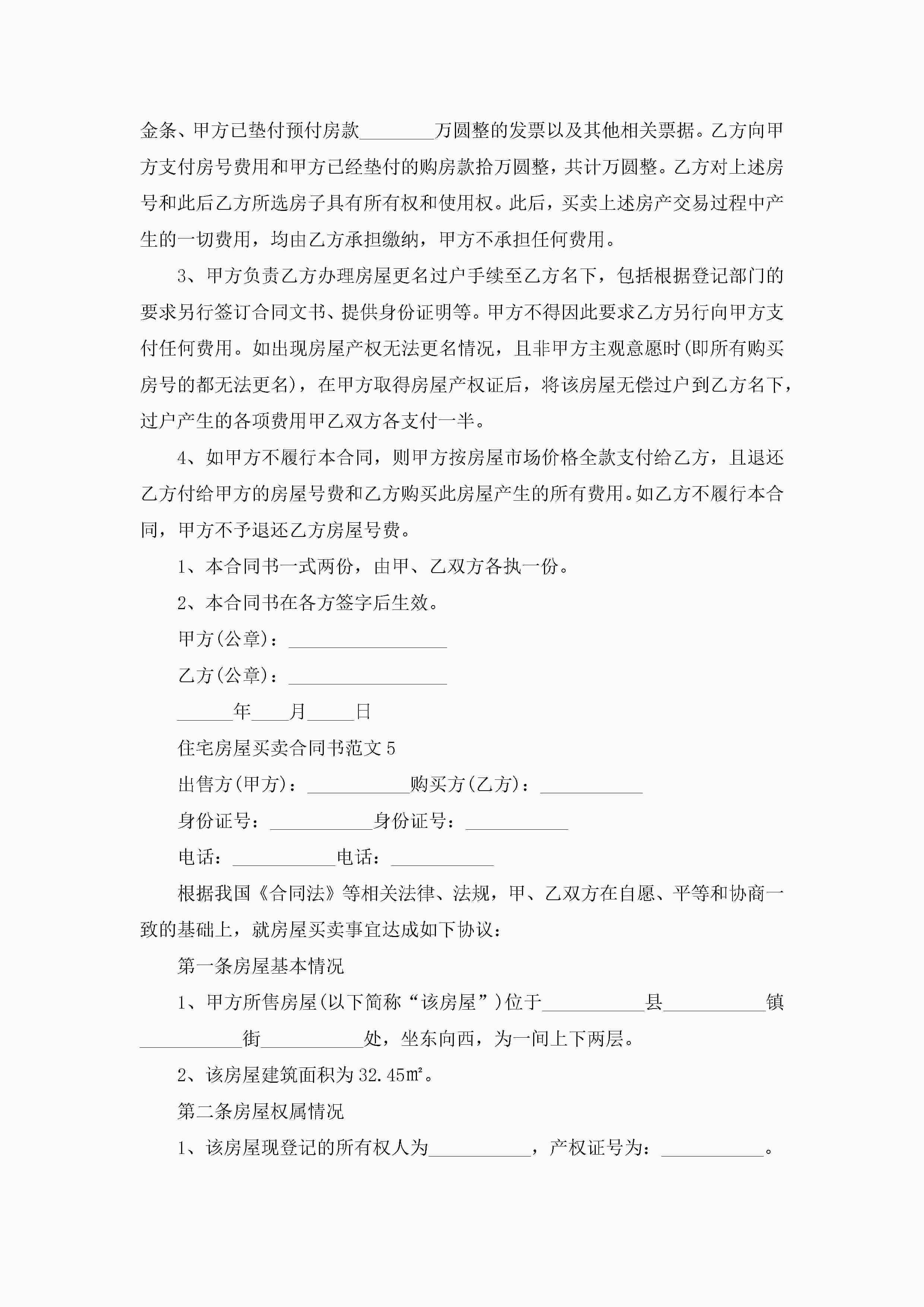 住宅房屋买卖合同书范文5篇jugei3月23日 01:38发布关注193 住宅房屋买卖合同书范文5篇此内容为付费资源,请付费后查看¥10.9 单篇文档限时特惠¥15个人会员开通企业会员开通立即下载无需登陆!可直接快捷下载单个模板付费资源© 版权声明THE ENDWord模板# 实用文档# 实用模板# 合同模板# 买卖合同 如有问题,可点击最底部“联系我们”联系客服 分享QQ空间微博QQ好友海报分享复制链接收藏