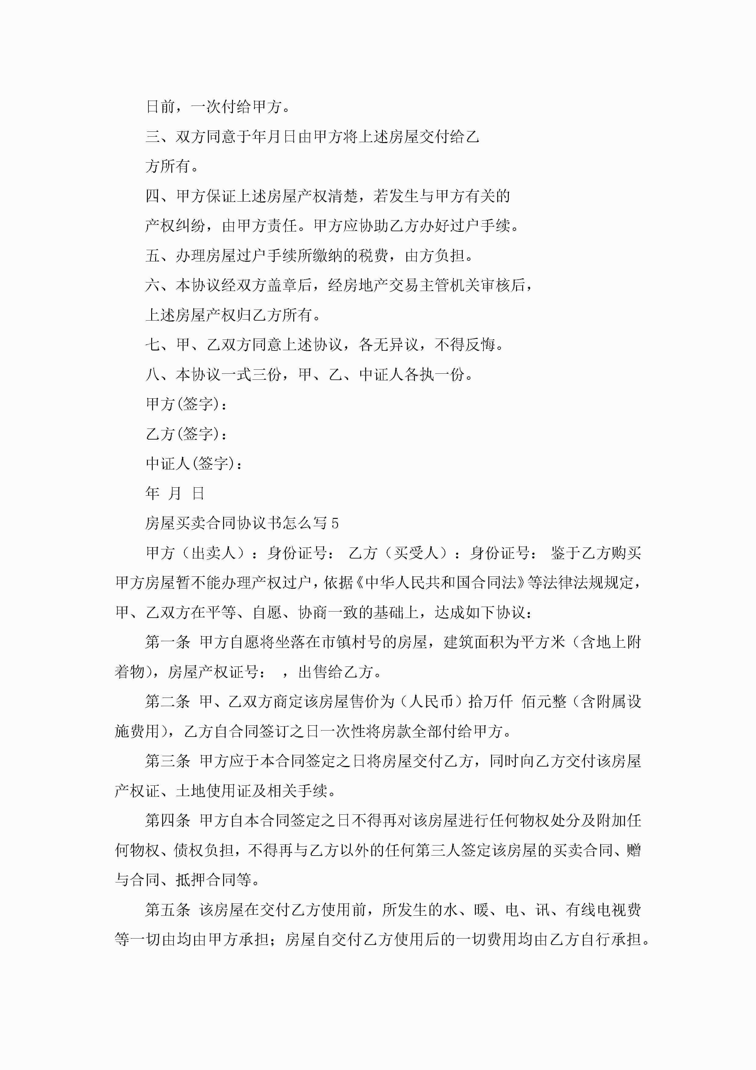 房屋买卖合同协议书怎么写5篇jugei3月23日 01:38发布关注235 房屋买卖合同协议书怎么写5篇此内容为付费资源,请付费后查看¥10.9 单篇文档限时特惠¥15个人会员开通企业会员开通立即下载无需登陆!可直接快捷下载单个模板付费资源© 版权声明THE ENDWord模板# 实用文档# 实用模板# 合同模板# 买卖合同 如有问题,可点击最底部“联系我们”联系客服 分享QQ空间微博QQ好友海报分享复制链接收藏