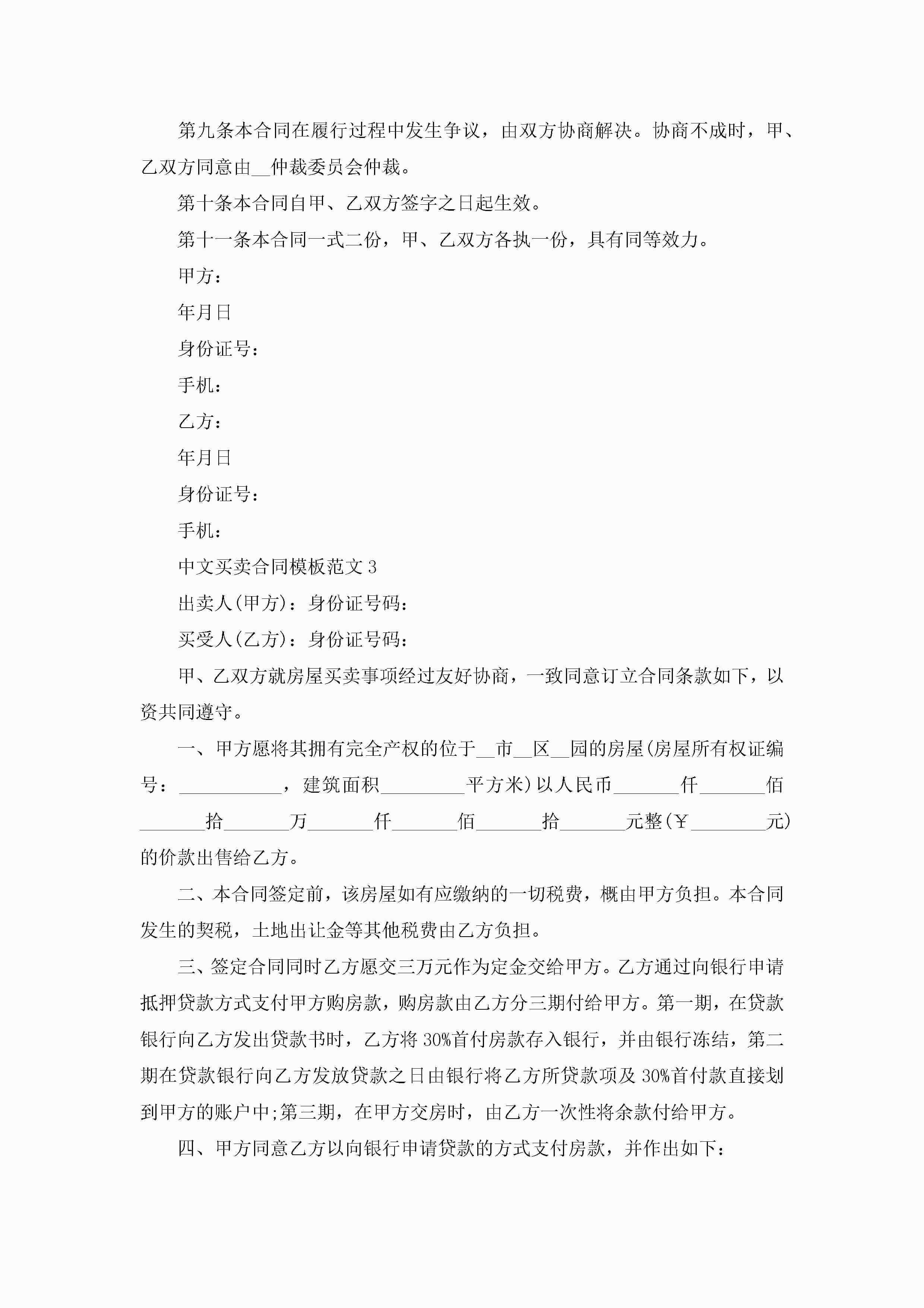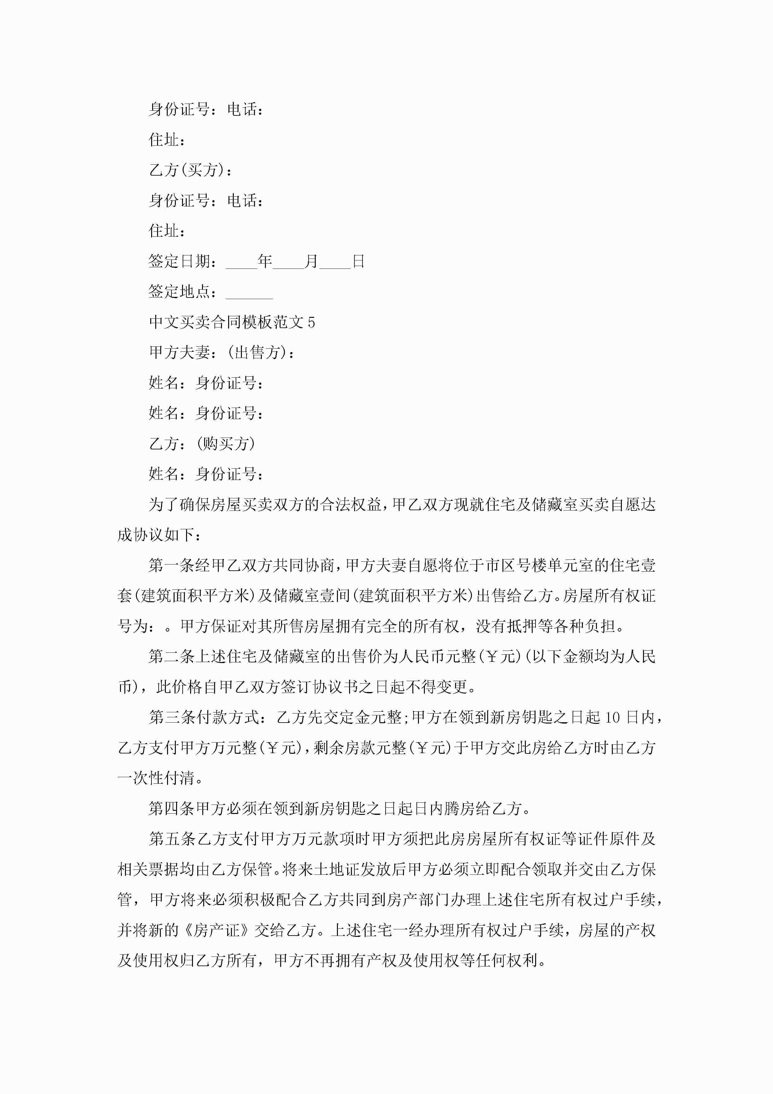 中文买卖合同模板范文5篇jugei3月23日 01:38发布关注190 中文买卖合同模板范文5篇此内容为付费资源,请付费后查看¥10.9 单篇文档限时特惠¥15个人会员开通企业会员开通立即下载无需登陆!可直接快捷下载单个模板付费资源© 版权声明THE ENDWord模板# 实用文档# 实用模板# 合同模板# 买卖合同 如有问题,可点击最底部“联系我们”联系客服 分享QQ空间微博QQ好友海报分享复制链接收藏