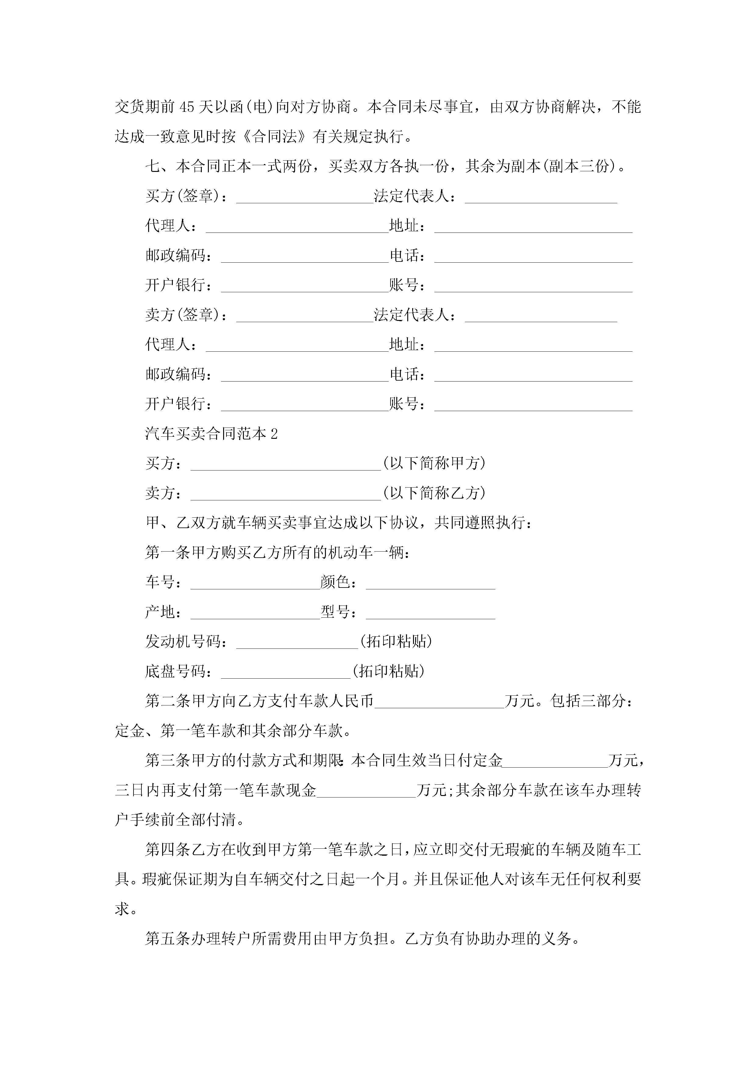 汽车买卖合同通用范本5篇jugei3月23日 01:38发布关注186 汽车买卖合同通用范本5篇此内容为付费资源,请付费后查看¥10.9 单篇文档限时特惠¥15个人会员开通企业会员开通立即下载无需登陆!可直接快捷下载单个模板付费资源© 版权声明THE ENDWord模板# 实用文档# 实用模板# 合同模板# 买卖合同 如有问题,可点击最底部“联系我们”联系客服 分享QQ空间微博QQ好友海报分享复制链接收藏
