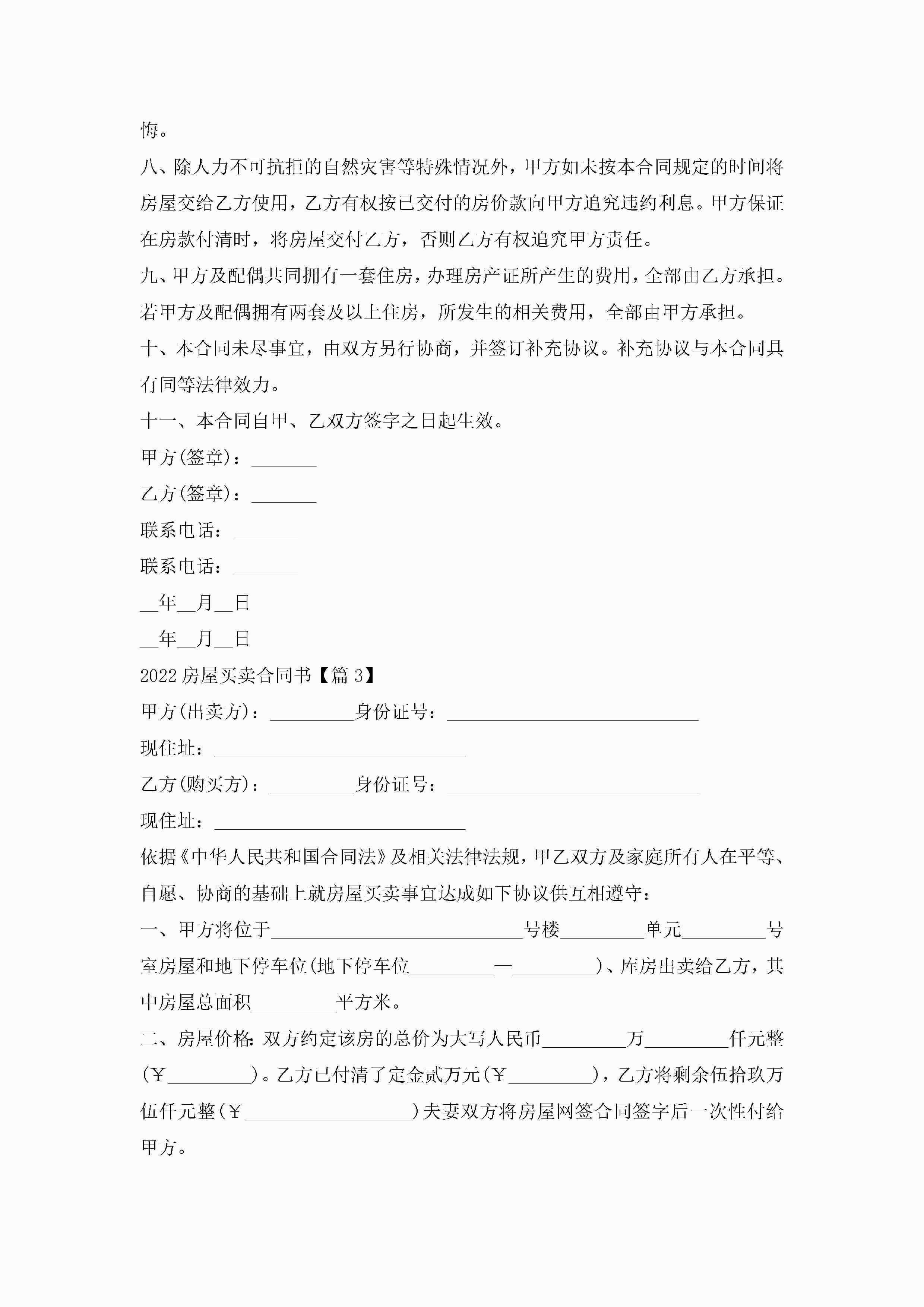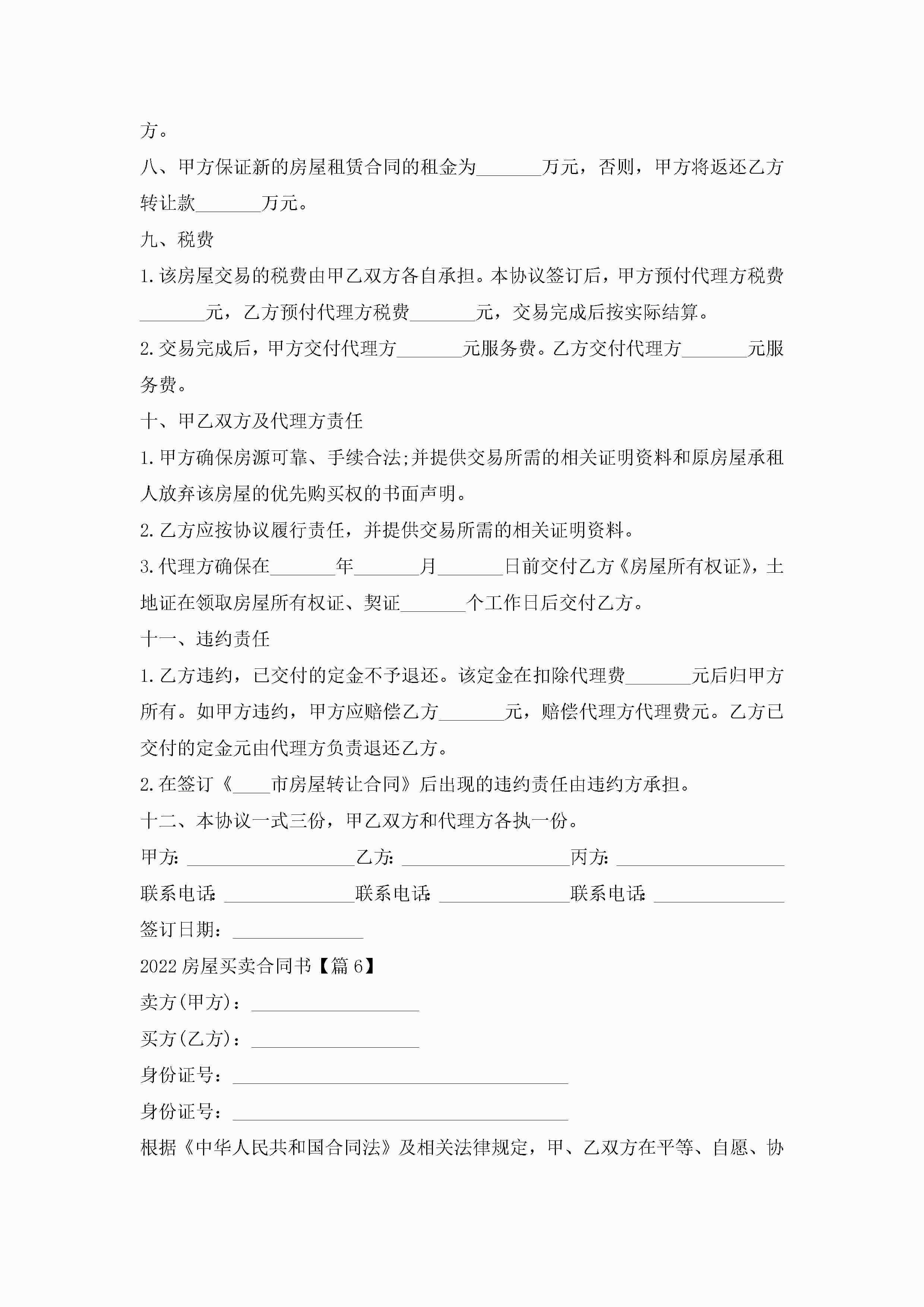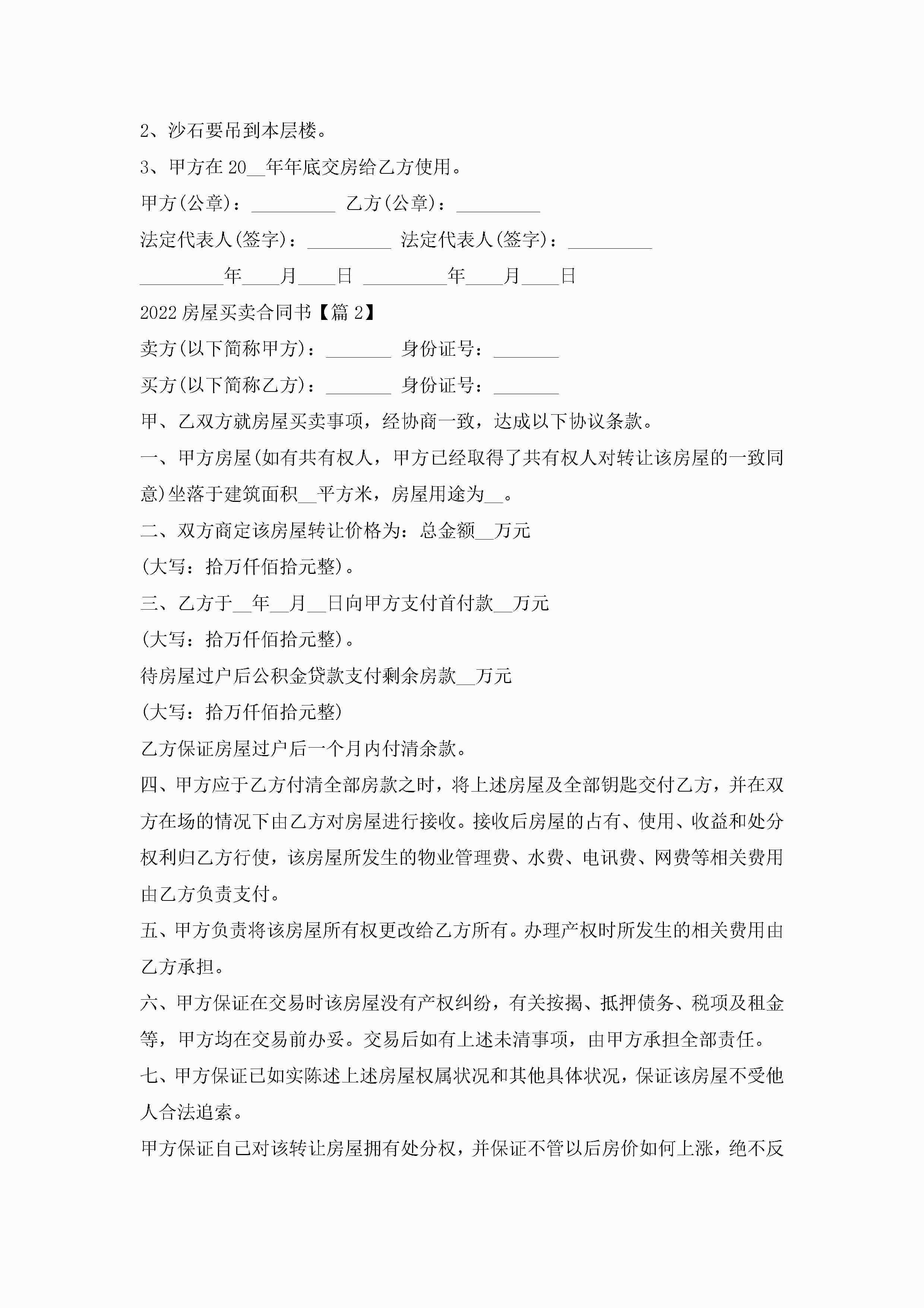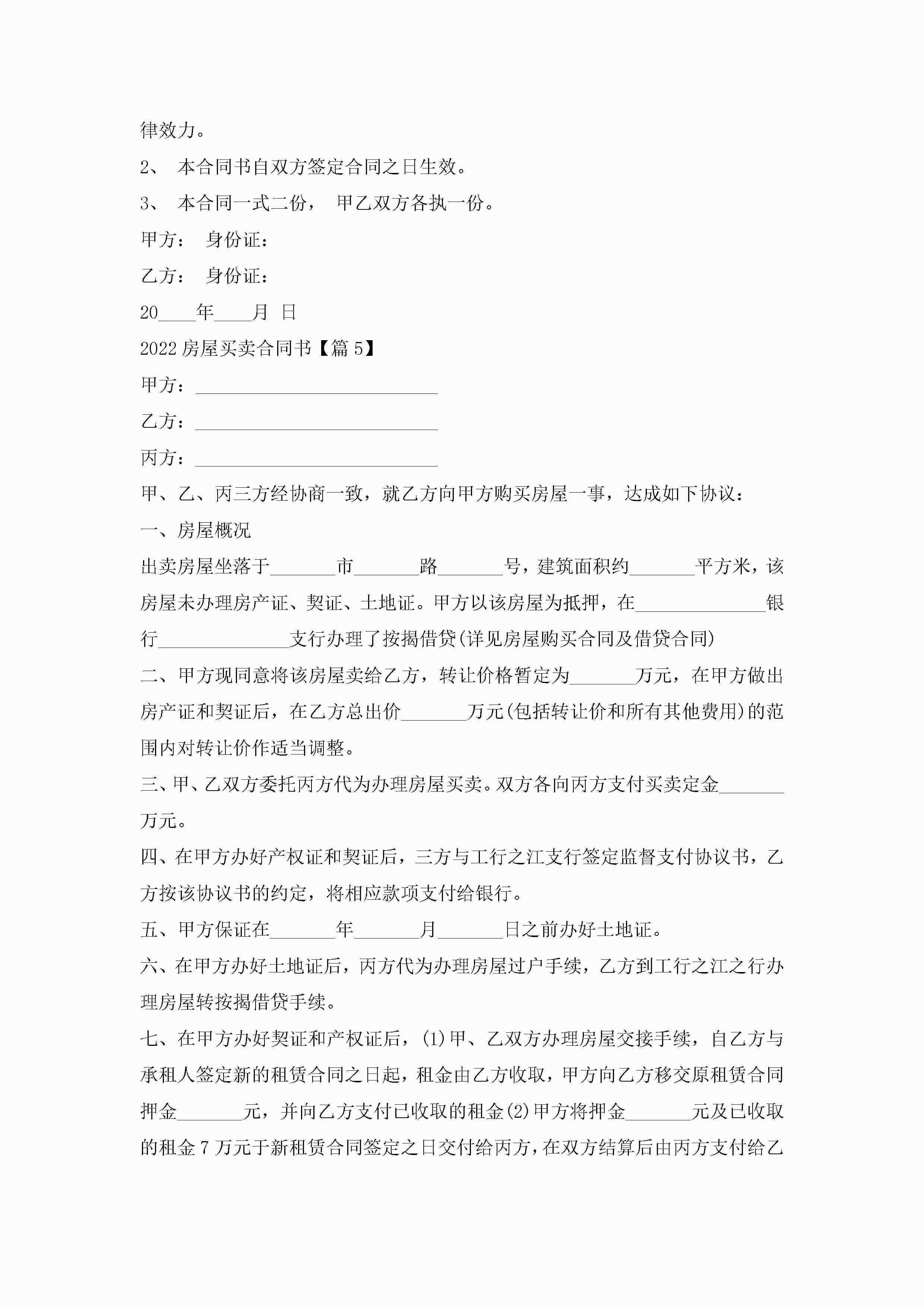 2022房屋买卖合同书通用7篇jugei3月23日 01:38发布关注256 2022房屋买卖合同书通用7篇此内容为付费资源,请付费后查看¥10.9 单篇文档限时特惠¥15个人会员开通企业会员开通立即下载无需登陆!可直接快捷下载单个模板付费资源© 版权声明THE ENDWord模板# 实用文档# 实用模板# 合同模板# 买卖合同 如有问题,可点击最底部“联系我们”联系客服 分享QQ空间微博QQ好友海报分享复制链接收藏