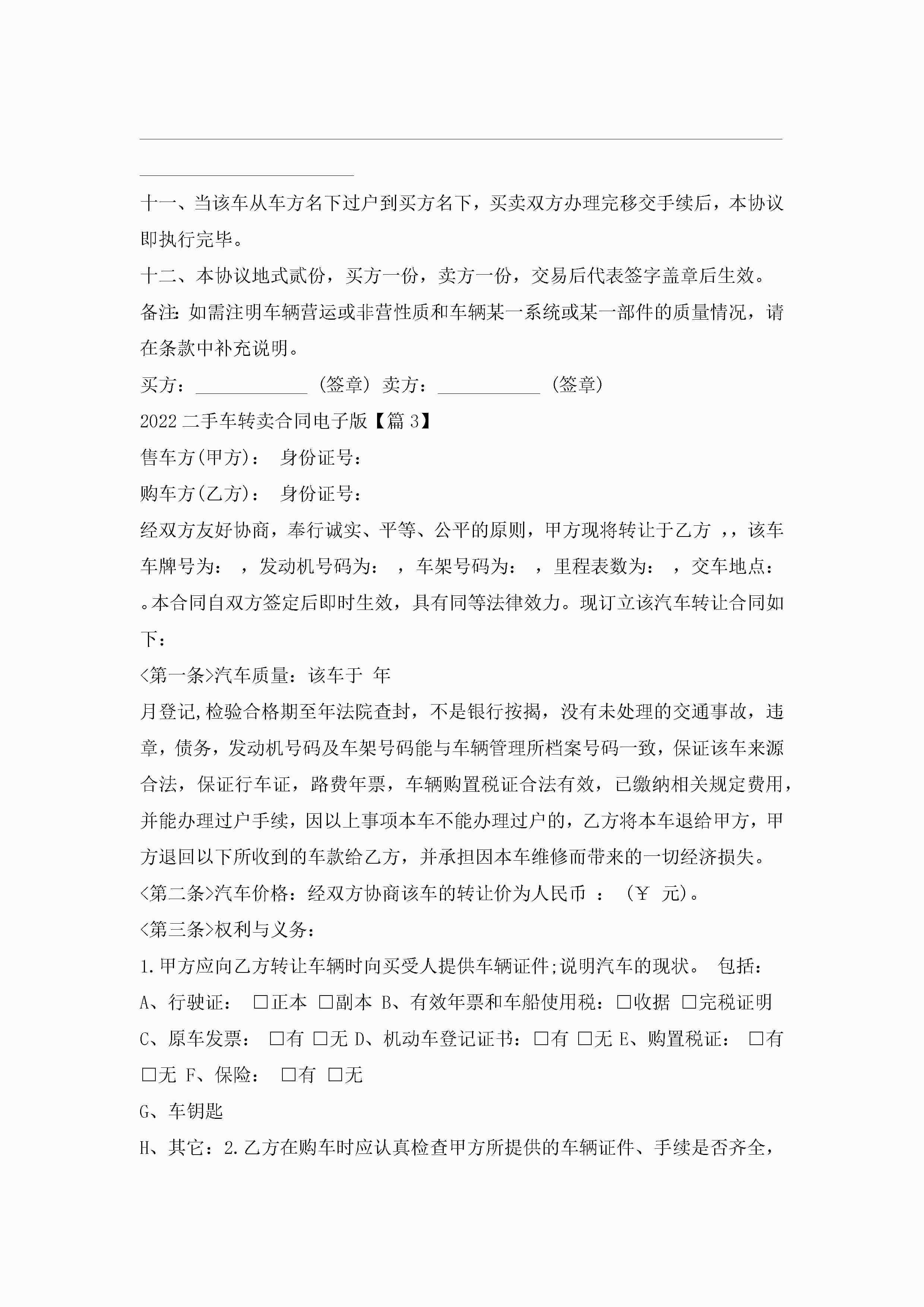 2022二手车转卖合同电子版5篇jugei3月23日 01:38发布关注280 2022二手车转卖合同电子版5篇此内容为付费资源,请付费后查看¥10.9 单篇文档限时特惠¥15个人会员开通企业会员开通立即下载无需登陆!可直接快捷下载单个模板付费资源© 版权声明THE ENDWord模板# 实用文档# 实用模板# 合同模板# 买卖合同 如有问题,可点击最底部“联系我们”联系客服 分享QQ空间微博QQ好友海报分享复制链接收藏