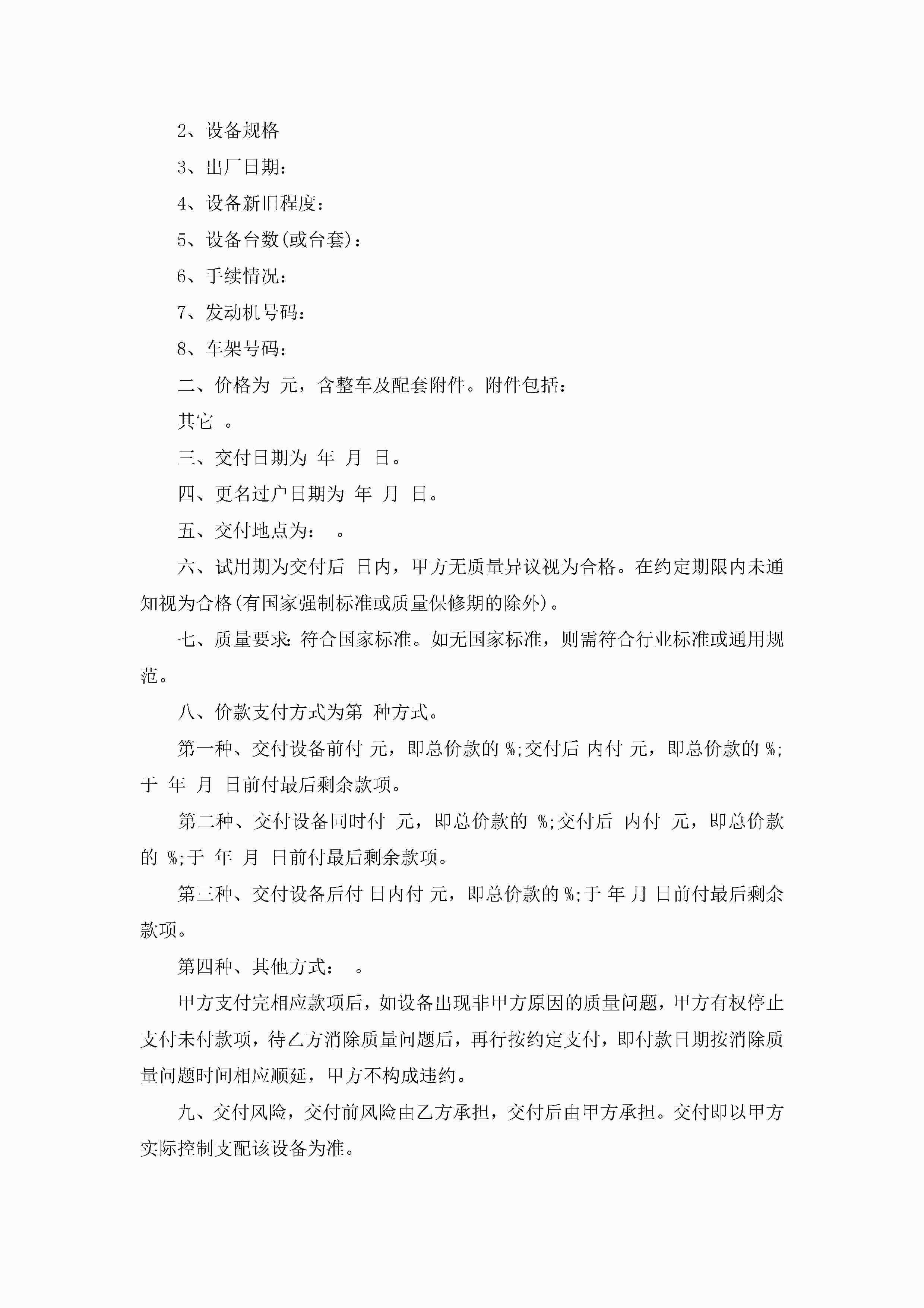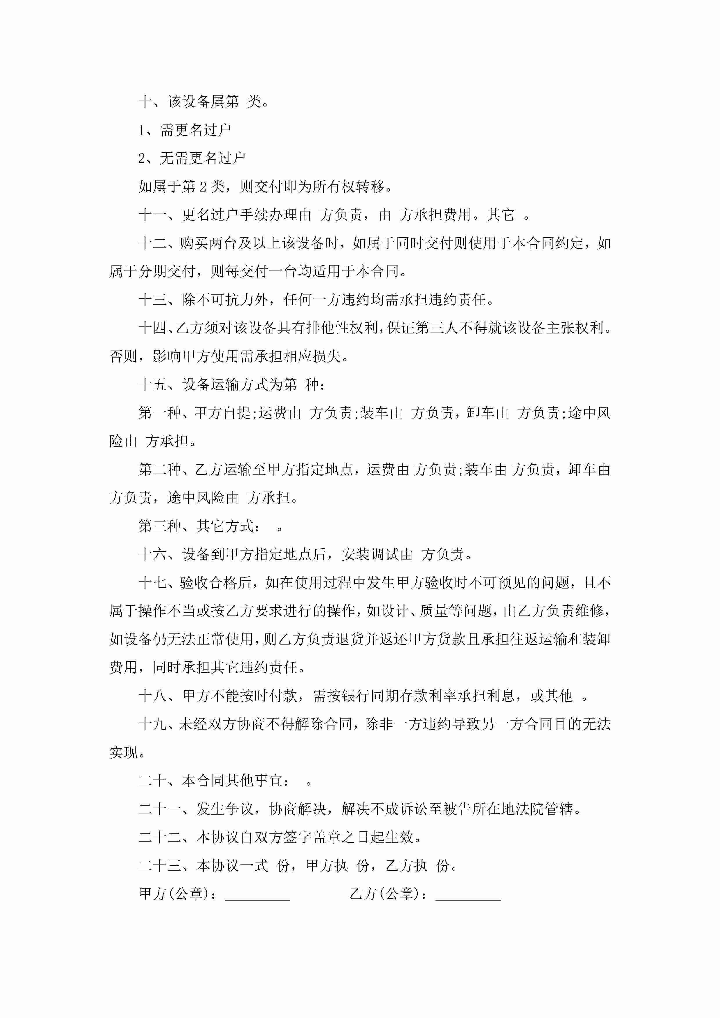 购买设备合同模板怎么写jugei3月23日 01:38发布关注244 购买设备合同模板怎么写此内容为付费资源,请付费后查看¥10.9 单篇文档限时特惠¥15个人会员开通企业会员开通立即下载无需登陆!可直接快捷下载单个模板付费资源© 版权声明THE ENDWord模板# 实用文档# 实用模板# 合同模板# 买卖合同 如有问题,可点击最底部“联系我们”联系客服 分享QQ空间微博QQ好友海报分享复制链接收藏
