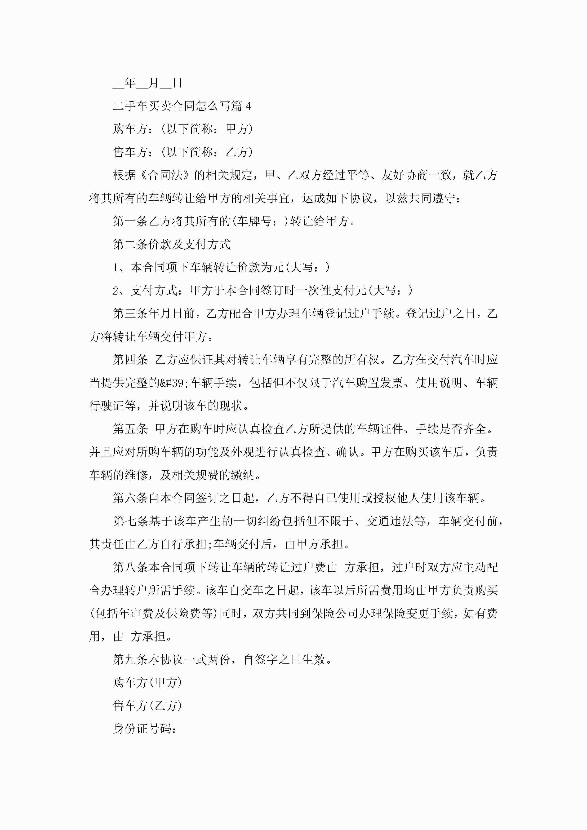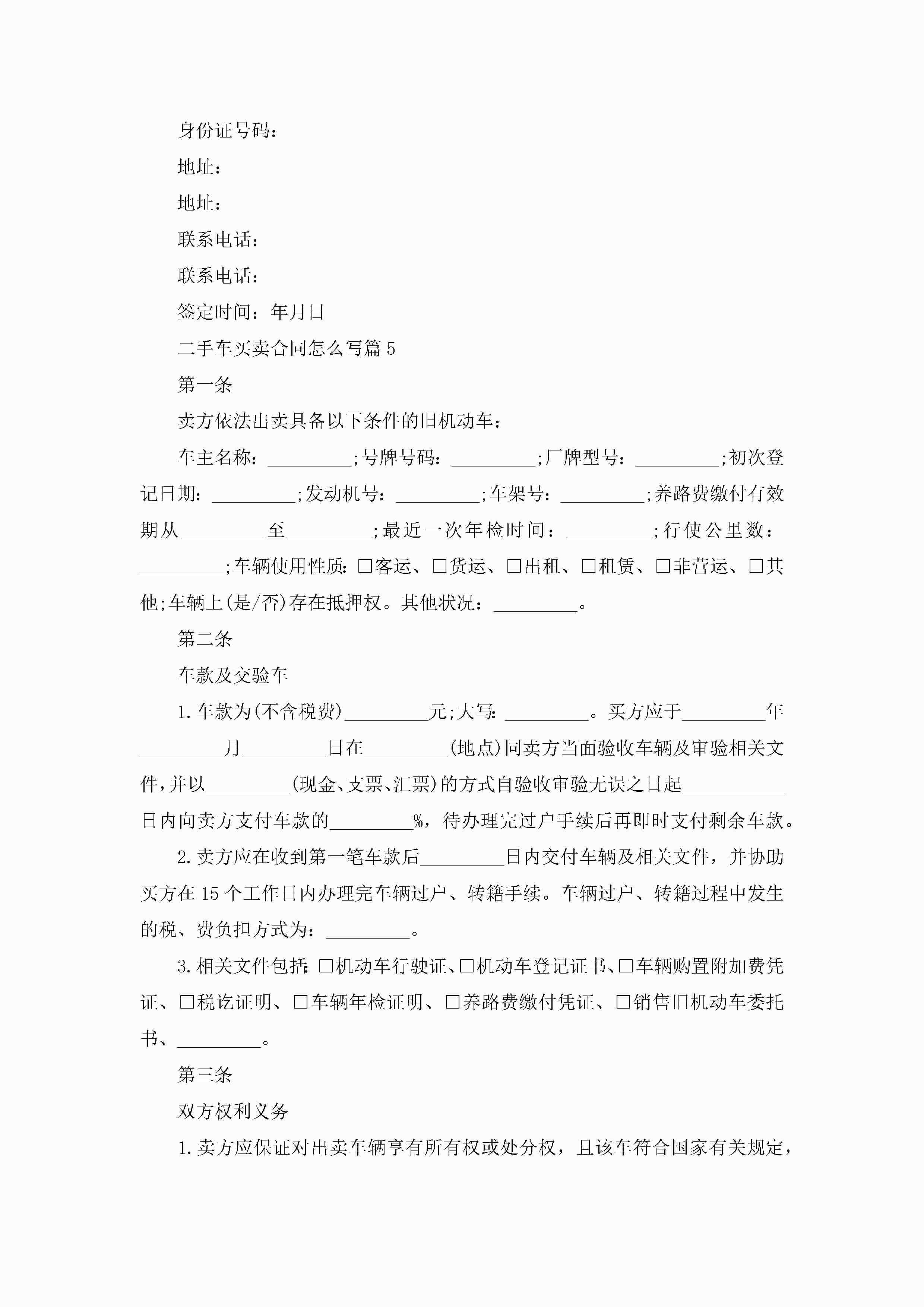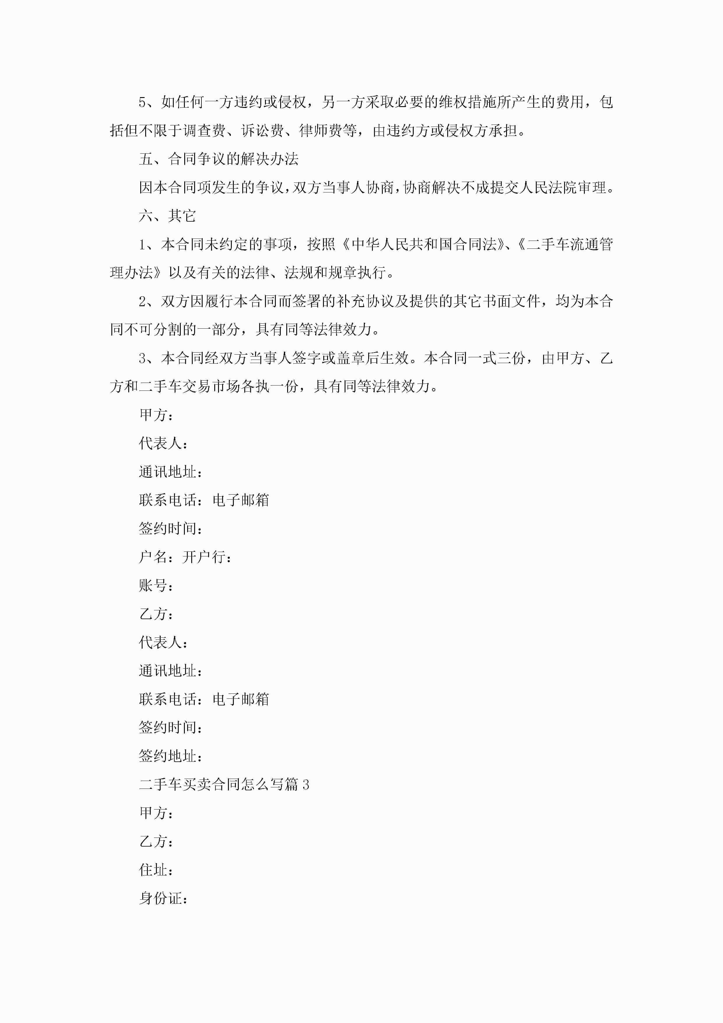二手车买卖合同模板怎么写jugei3月23日 01:38发布关注187 二手车买卖合同模板怎么写此内容为付费资源,请付费后查看¥10.9 单篇文档限时特惠¥15个人会员开通企业会员开通立即下载无需登陆!可直接快捷下载单个模板付费资源© 版权声明THE ENDWord模板# 实用文档# 实用模板# 合同模板# 买卖合同 如有问题,可点击最底部“联系我们”联系客服 分享QQ空间微博QQ好友海报分享复制链接收藏