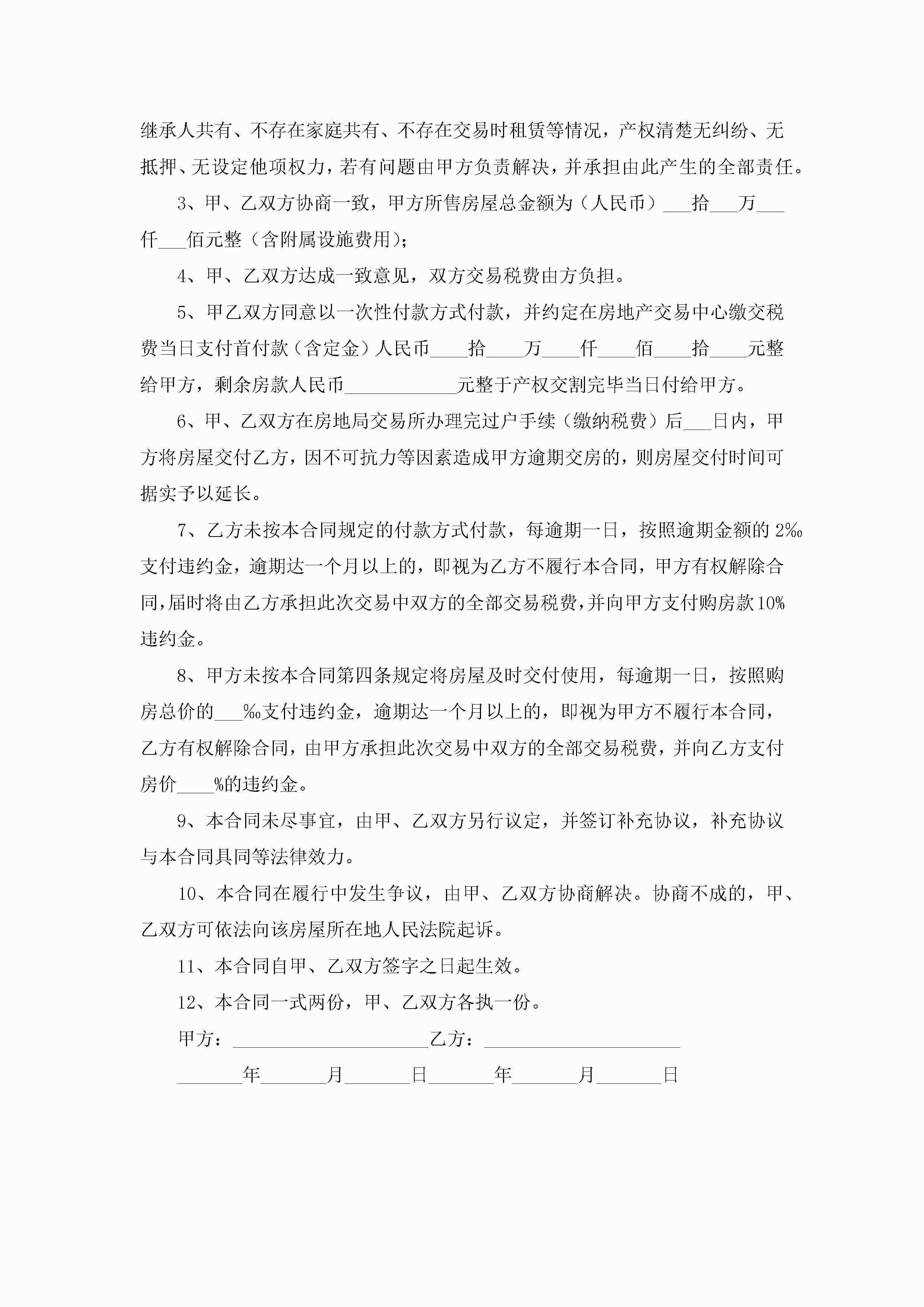 二手房交易买卖合同范本5篇(精选)jugei3月23日 01:38发布关注196 二手房交易买卖合同范本5篇(精选)此内容为付费资源,请付费后查看¥10.9 单篇文档限时特惠¥15个人会员开通企业会员开通立即下载无需登陆!可直接快捷下载单个模板付费资源© 版权声明THE ENDWord模板# 实用文档# 实用模板# 合同模板# 买卖合同 如有问题,可点击最底部“联系我们”联系客服 分享QQ空间微博QQ好友海报分享复制链接收藏