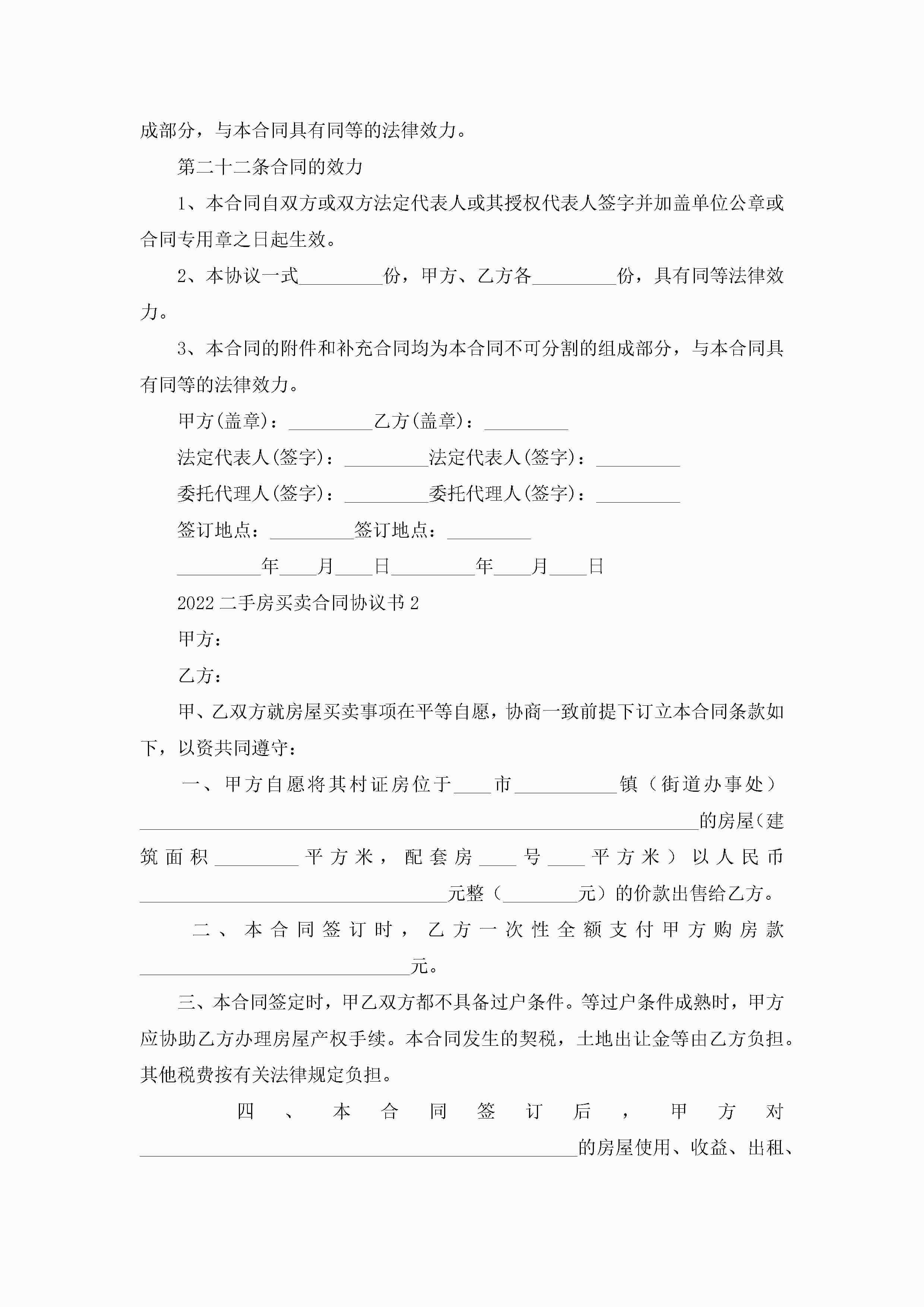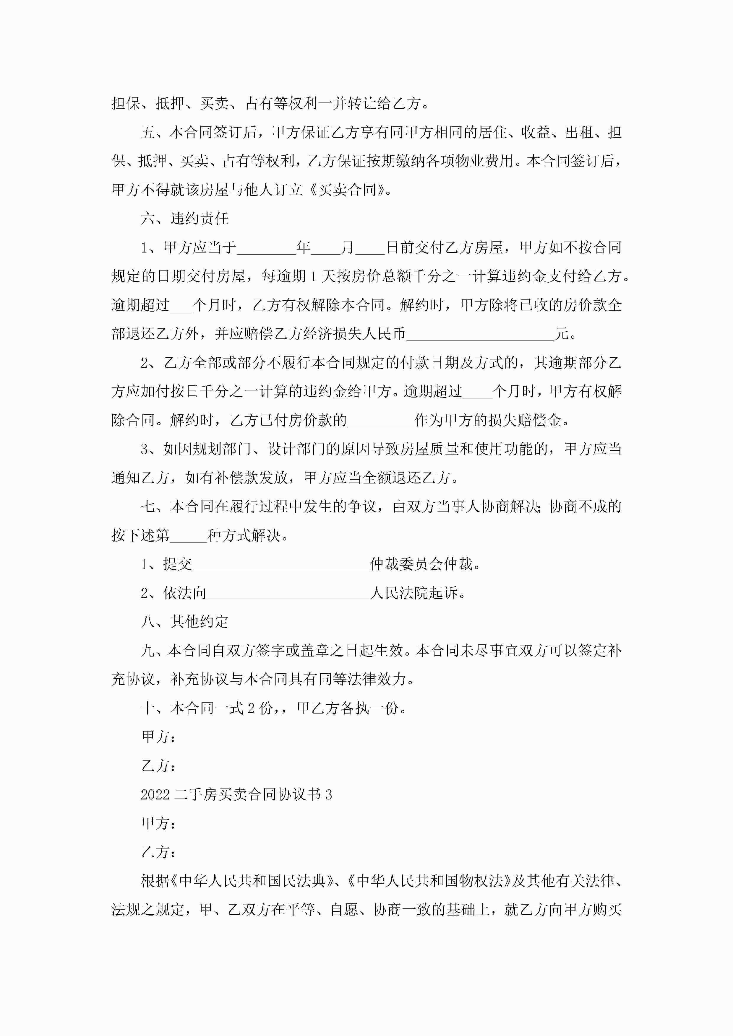 2022二手房买卖合同协议书5篇(精选)jugei3月23日 01:38发布关注298 2022二手房买卖合同协议书5篇(精选)此内容为付费资源,请付费后查看¥10.9 单篇文档限时特惠¥15个人会员开通企业会员开通立即下载无需登陆!可直接快捷下载单个模板付费资源© 版权声明THE ENDWord模板# 实用文档# 实用模板# 合同模板# 买卖合同 如有问题,可点击最底部“联系我们”联系客服 分享QQ空间微博QQ好友海报分享复制链接收藏