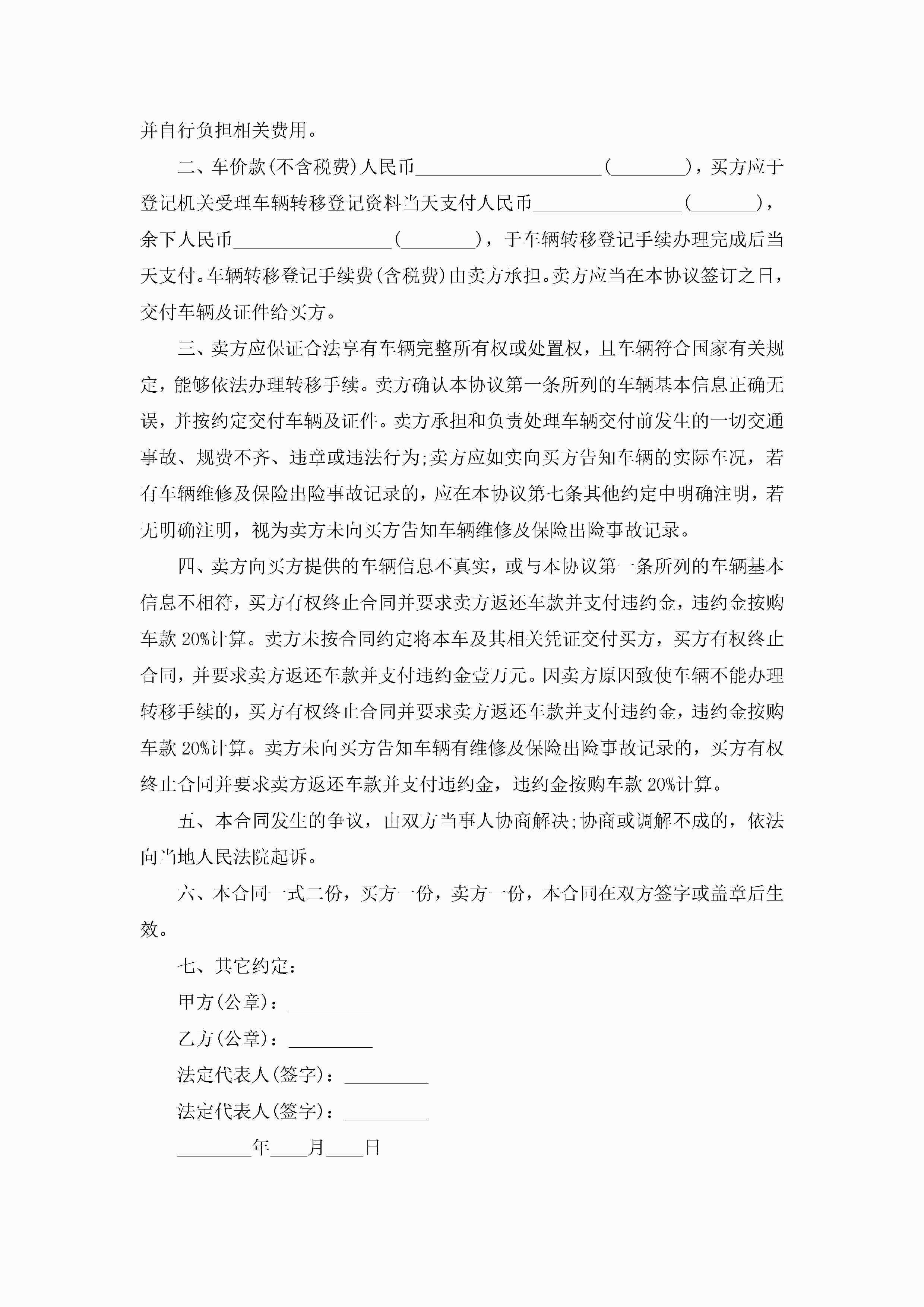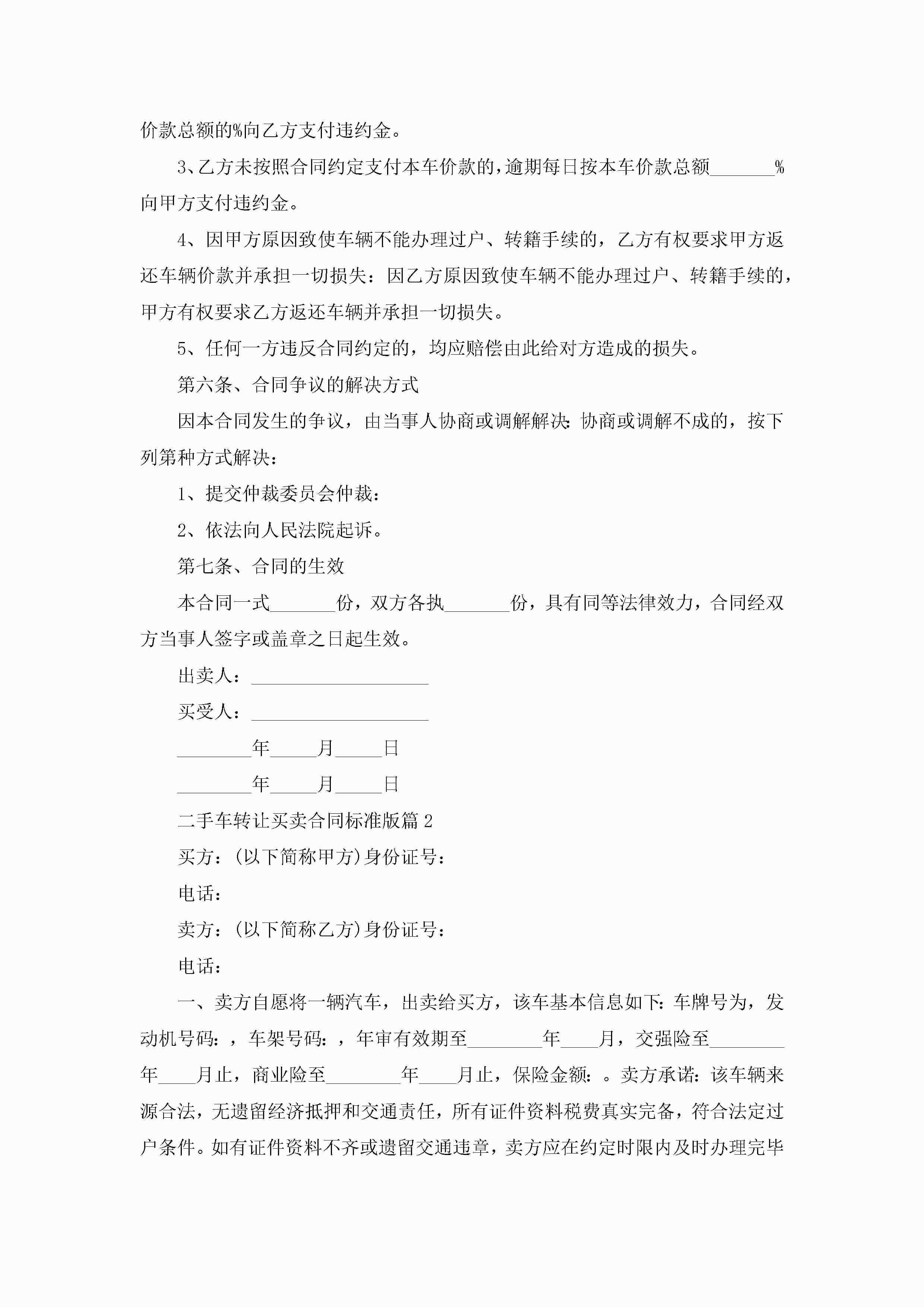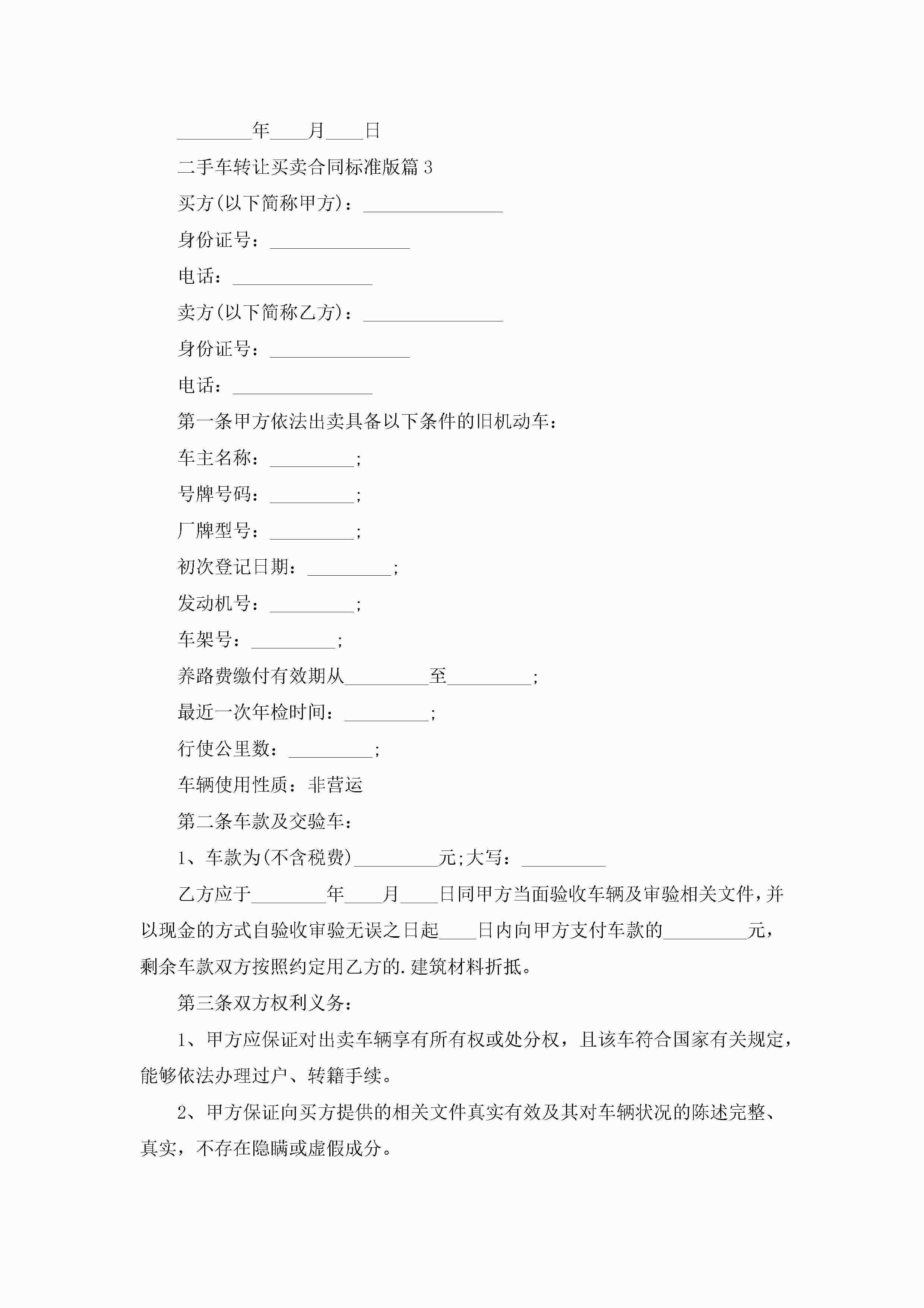 关于二手车转让买卖合同标准版8篇jugei3月23日 01:38发布关注187 关于二手车转让买卖合同标准版8篇此内容为付费资源,请付费后查看¥10.9 单篇文档限时特惠¥15个人会员开通企业会员开通立即下载无需登陆!可直接快捷下载单个模板付费资源© 版权声明THE ENDWord模板# 实用文档# 合同模板# 买卖合同# 二手车转让买卖合同标准版 如有问题,可点击最底部“联系我们”联系客服 分享QQ空间微博QQ好友海报分享复制链接收藏