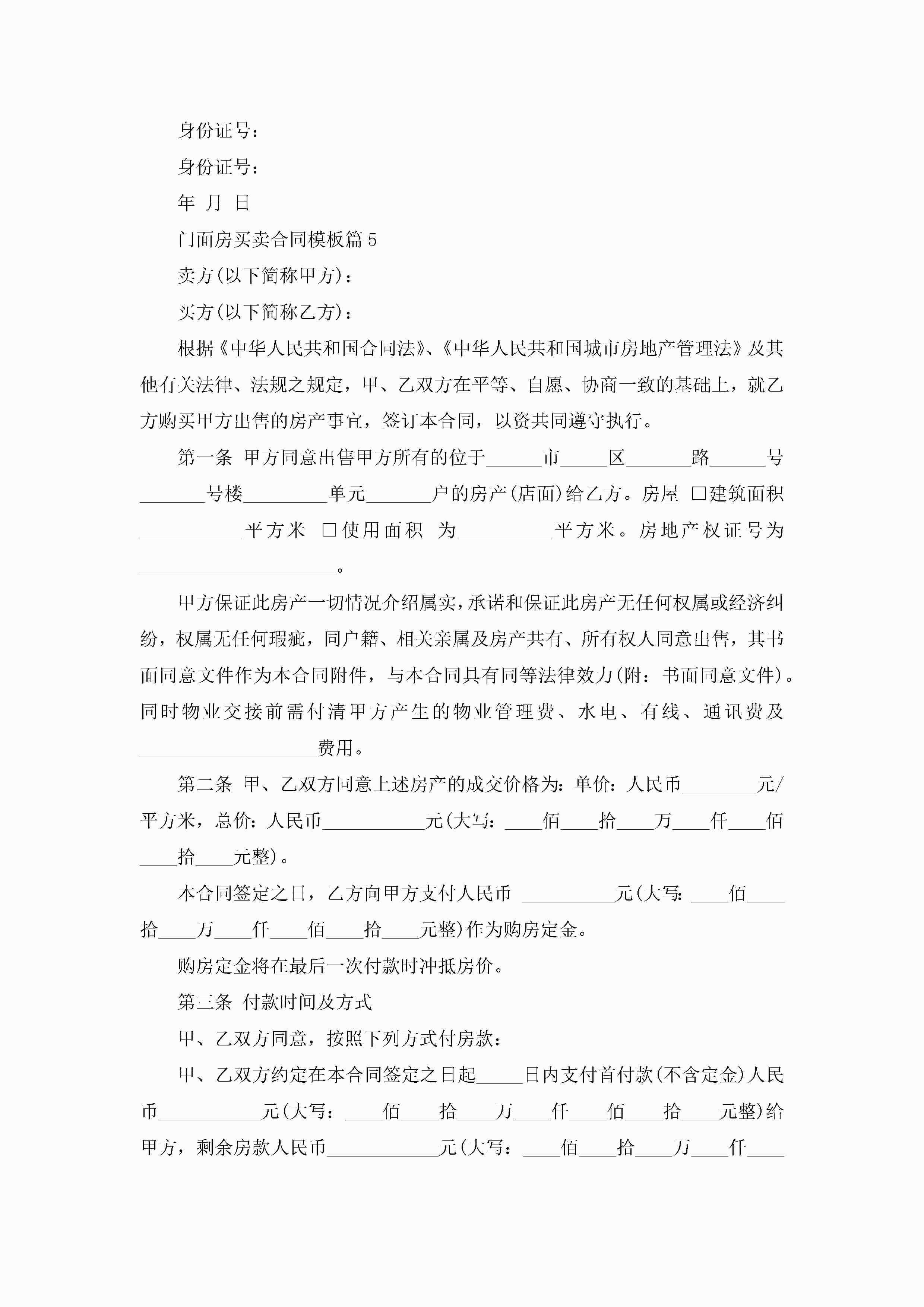 门面房买卖合同最新模板jugei3月23日 01:38发布关注186 门面房买卖合同最新模板此内容为付费资源,请付费后查看¥10.9 单篇文档限时特惠¥15个人会员开通企业会员开通立即下载无需登陆!可直接快捷下载单个模板付费资源© 版权声明THE ENDWord模板# 实用文档# 实用模板# 合同模板# 买卖合同 如有问题,可点击最底部“联系我们”联系客服 分享QQ空间微博QQ好友海报分享复制链接收藏