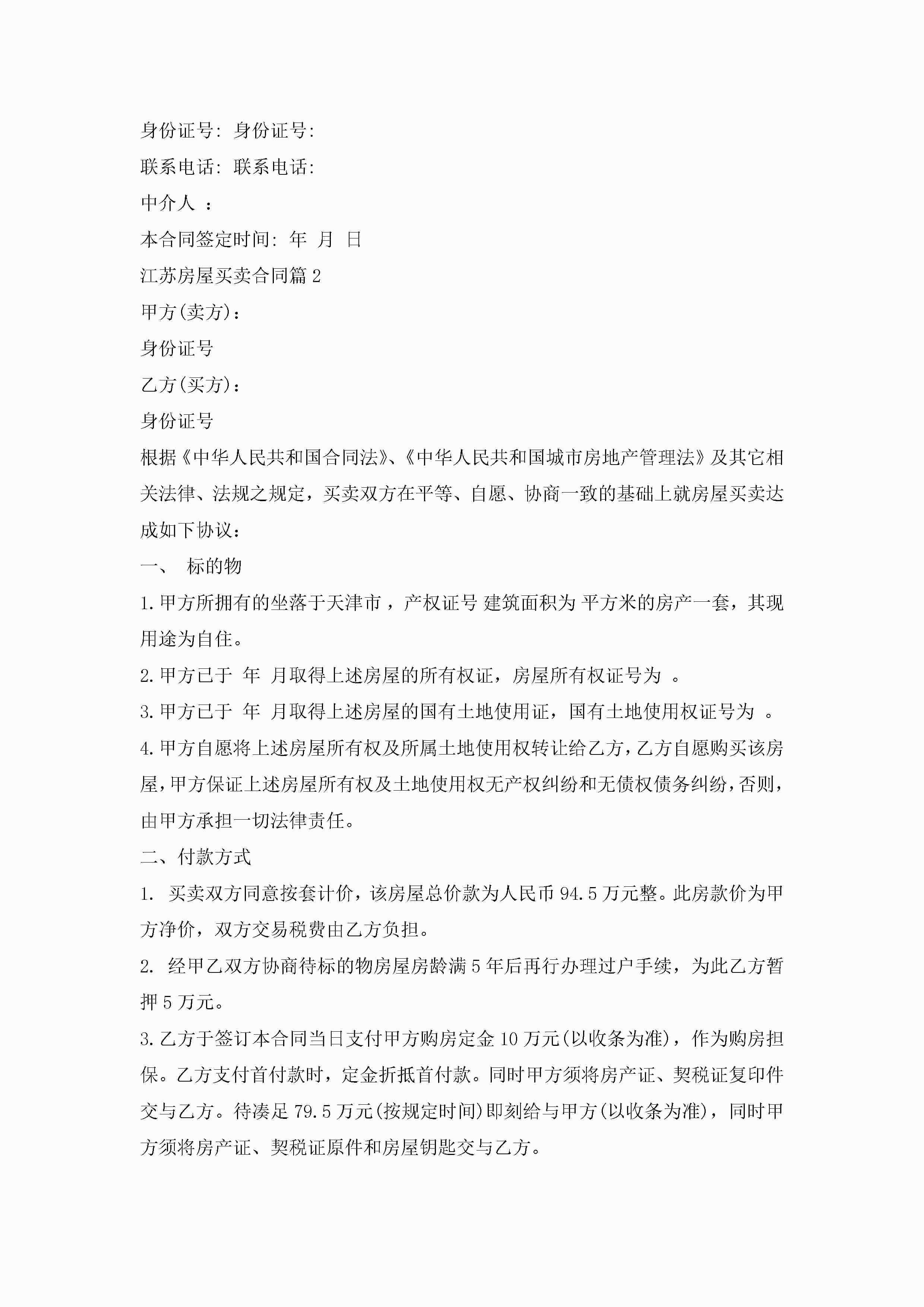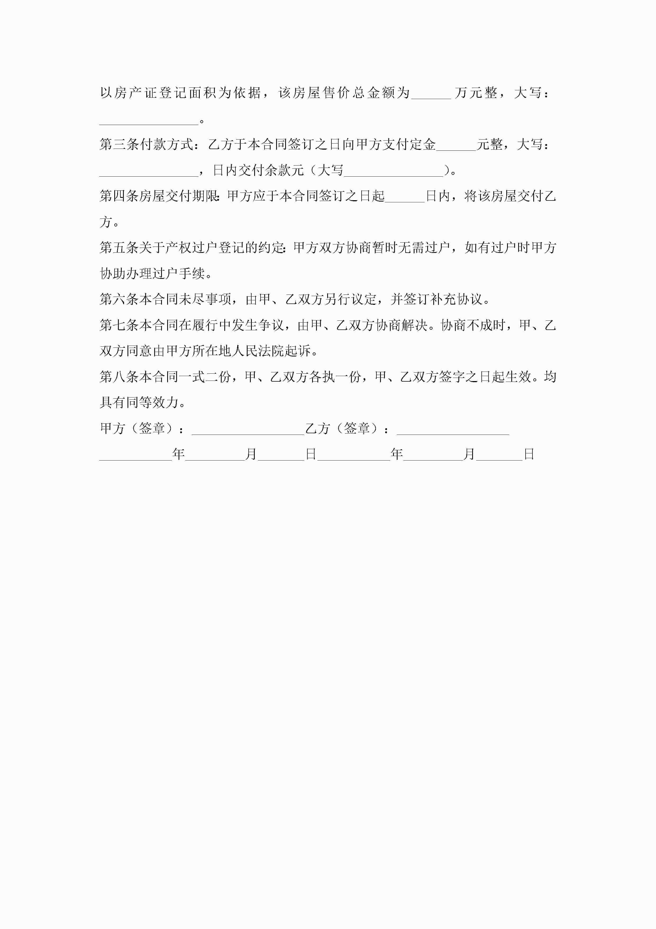江苏房屋买卖合同模板5篇jugei3月23日 01:38发布关注282 江苏房屋买卖合同模板5篇此内容为付费资源,请付费后查看¥10.9 单篇文档限时特惠¥15个人会员开通企业会员开通立即下载无需登陆!可直接快捷下载单个模板付费资源© 版权声明THE ENDWord模板# 实用文档# 实用模板# 合同模板# 买卖合同 如有问题,可点击最底部“联系我们”联系客服 分享QQ空间微博QQ好友海报分享复制链接收藏