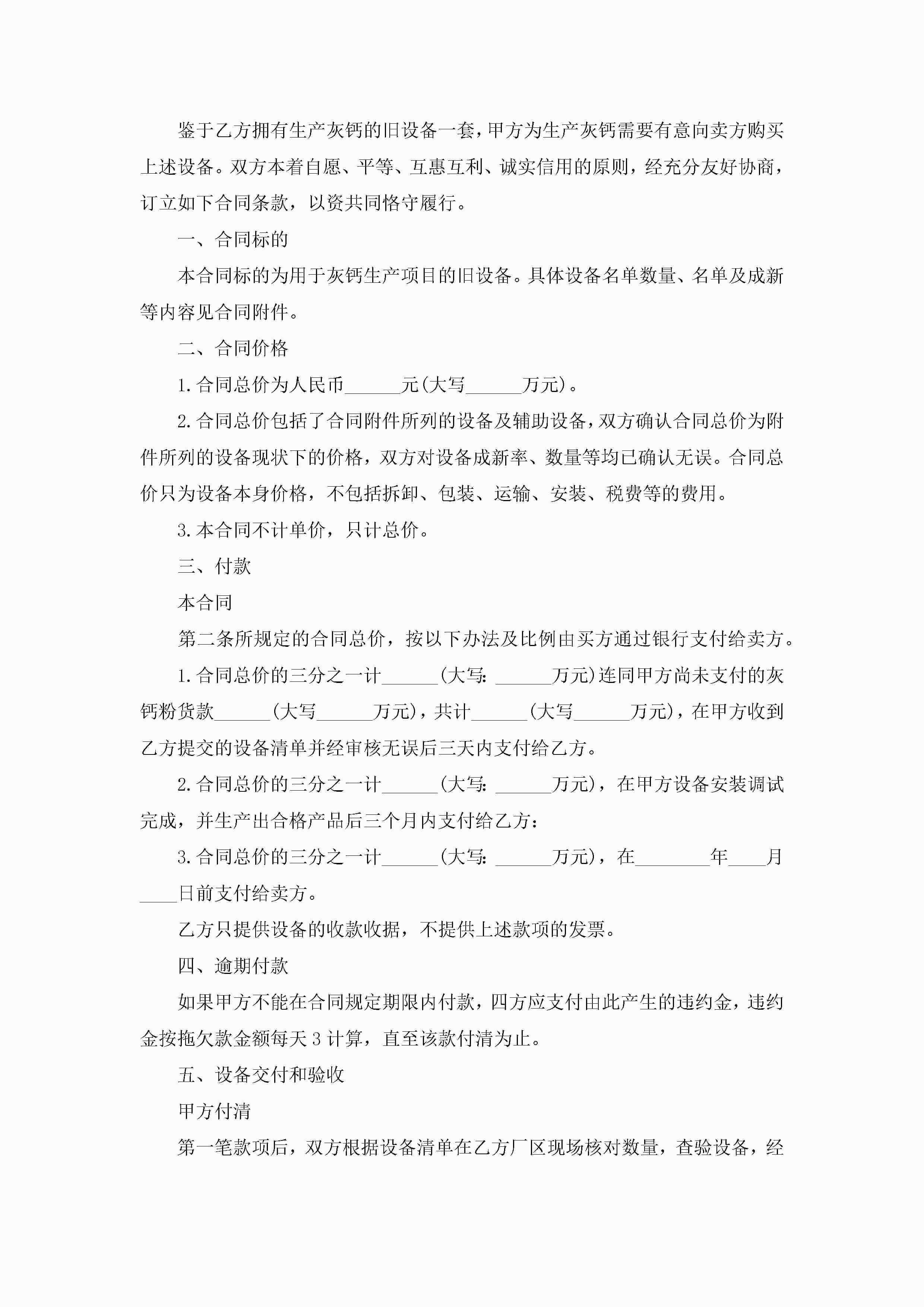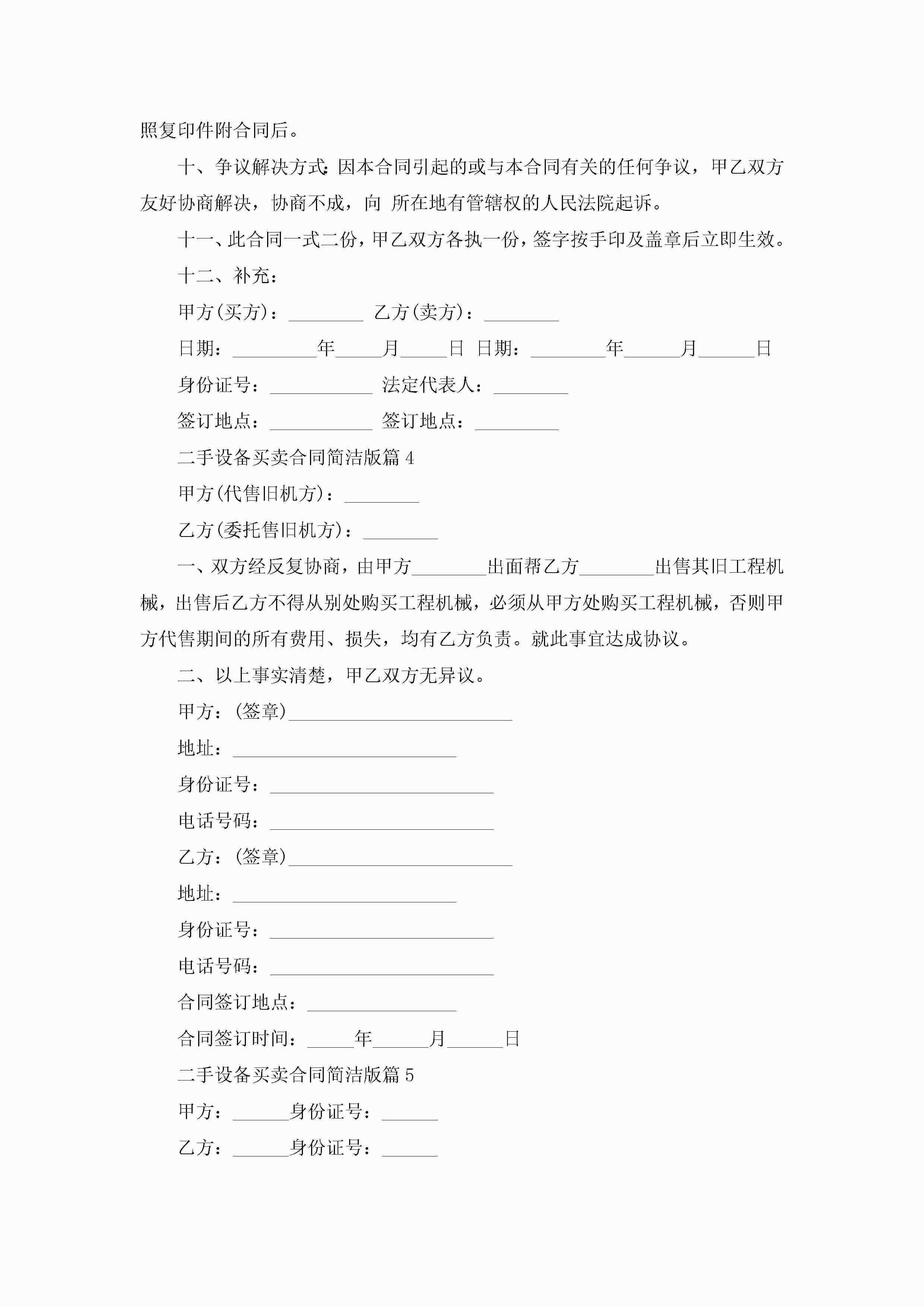 二手设备买卖合同模板简洁版jugei3月23日 01:38发布关注225 二手设备买卖合同模板简洁版此内容为付费资源,请付费后查看¥10.9 单篇文档限时特惠¥15个人会员开通企业会员开通立即下载无需登陆!可直接快捷下载单个模板付费资源© 版权声明THE ENDWord模板# 实用文档# 实用模板# 合同模板# 买卖合同 如有问题,可点击最底部“联系我们”联系客服 分享QQ空间微博QQ好友海报分享复制链接收藏