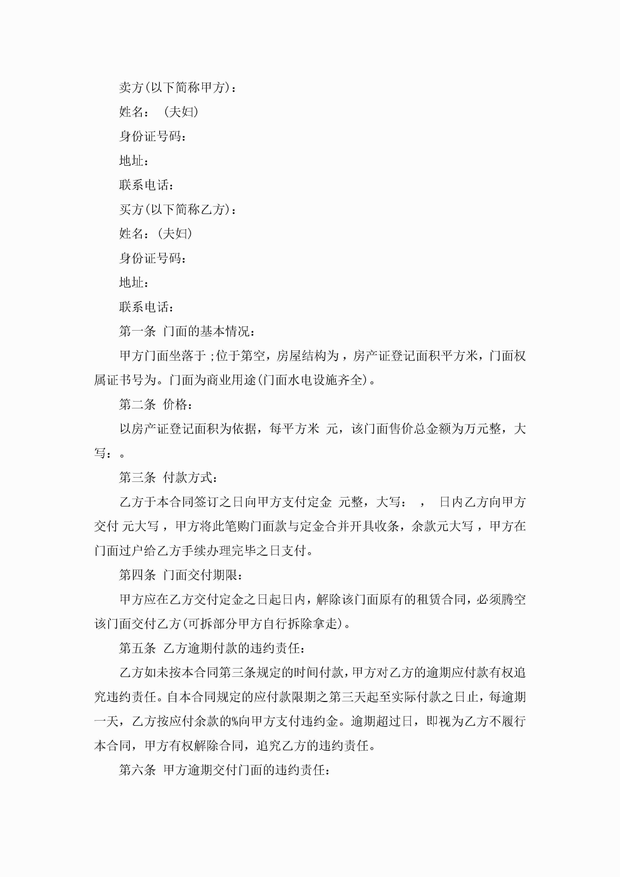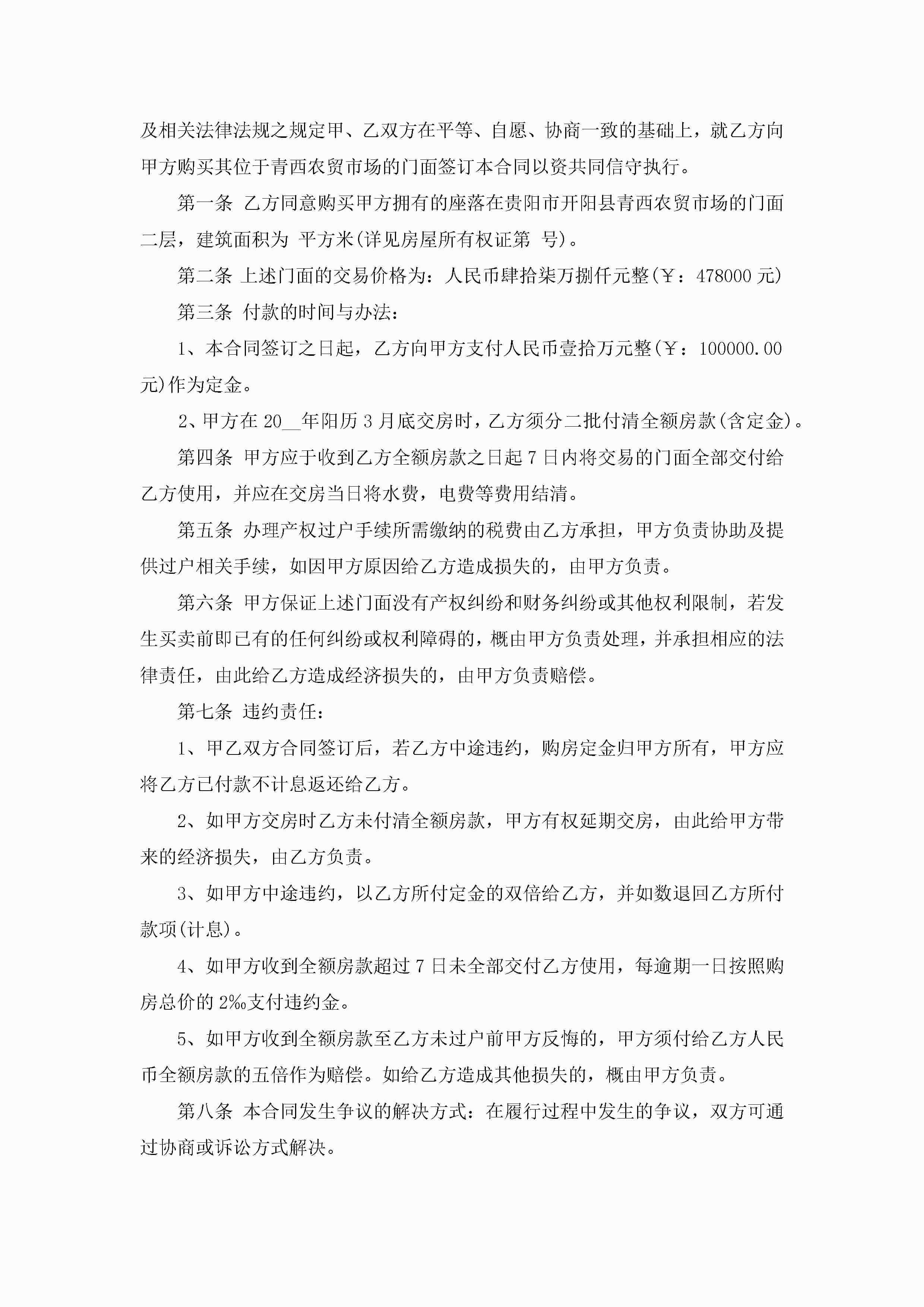 2022门面买卖合同最新范本jugei3月23日 01:38发布关注248 2022门面买卖合同最新范本此内容为付费资源,请付费后查看¥10.9 单篇文档限时特惠¥15个人会员开通企业会员开通立即下载无需登陆!可直接快捷下载单个模板付费资源© 版权声明THE ENDWord模板# 实用文档# 实用模板# 合同模板# 买卖合同 如有问题,可点击最底部“联系我们”联系客服 分享QQ空间微博QQ好友海报分享复制链接收藏