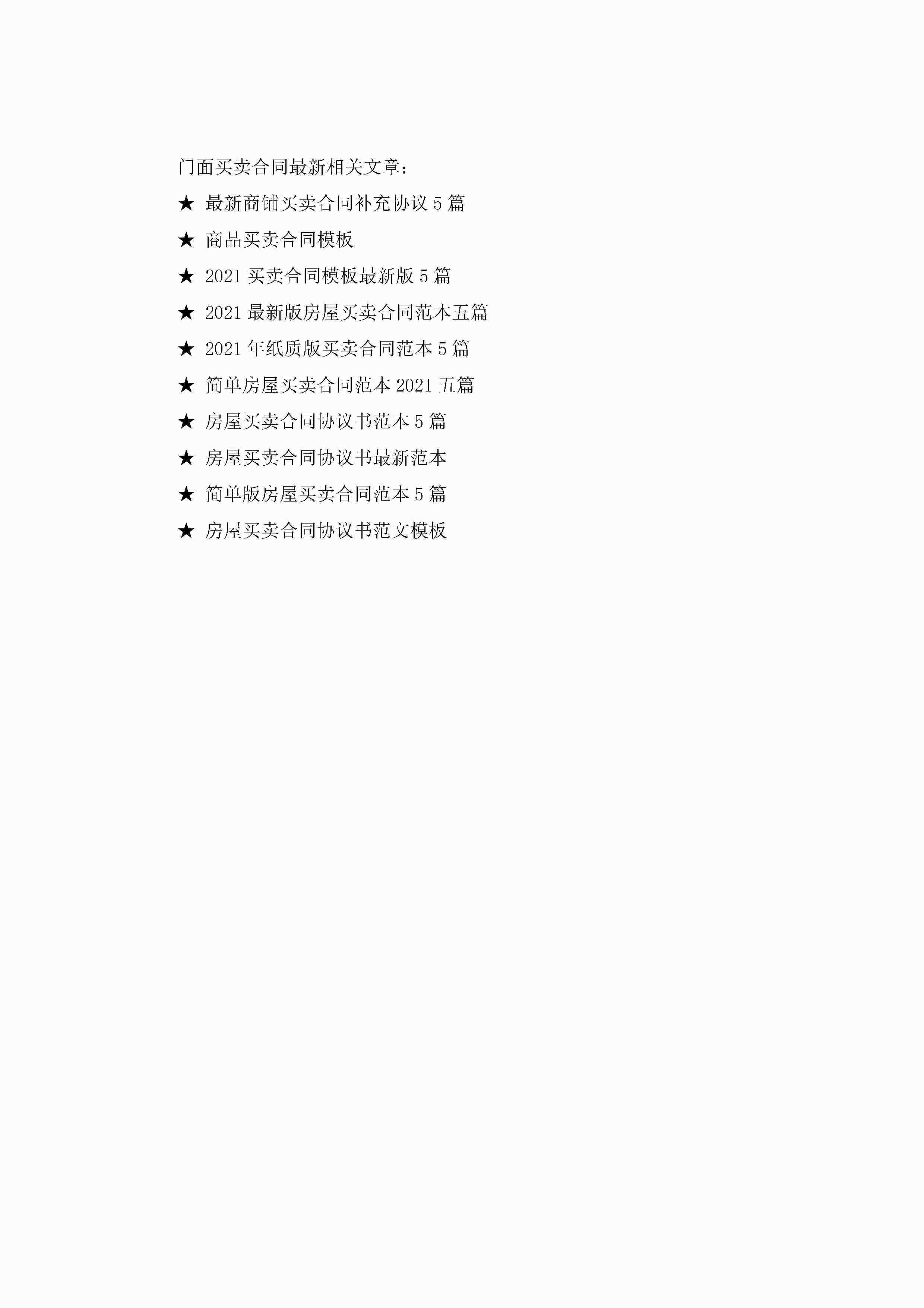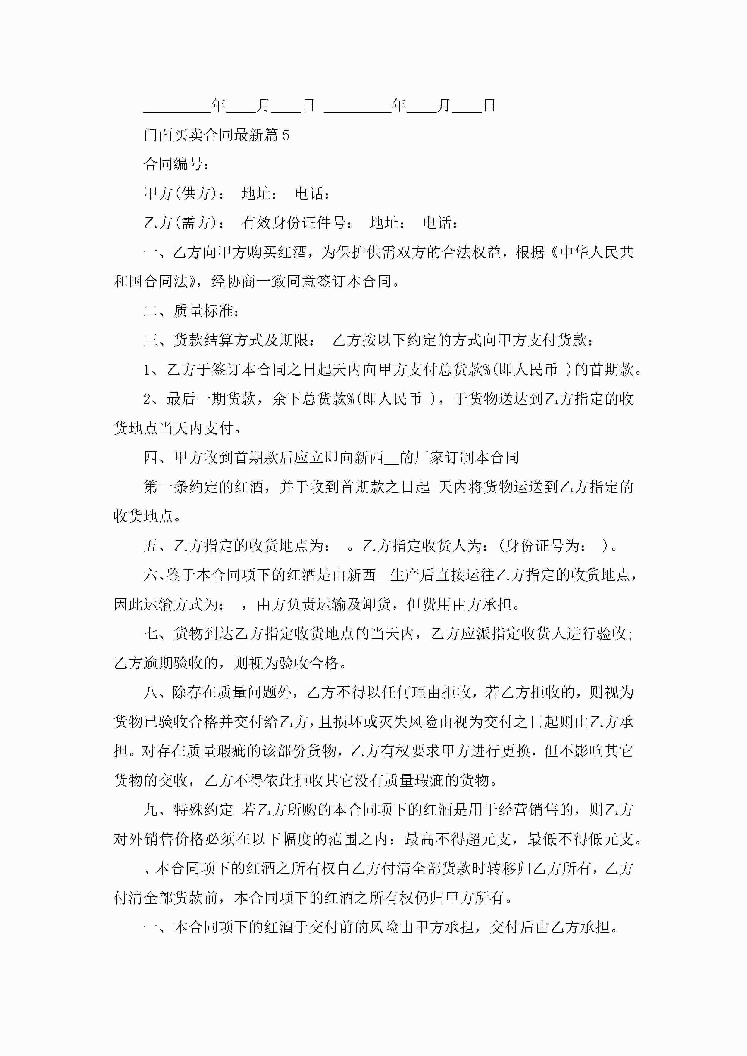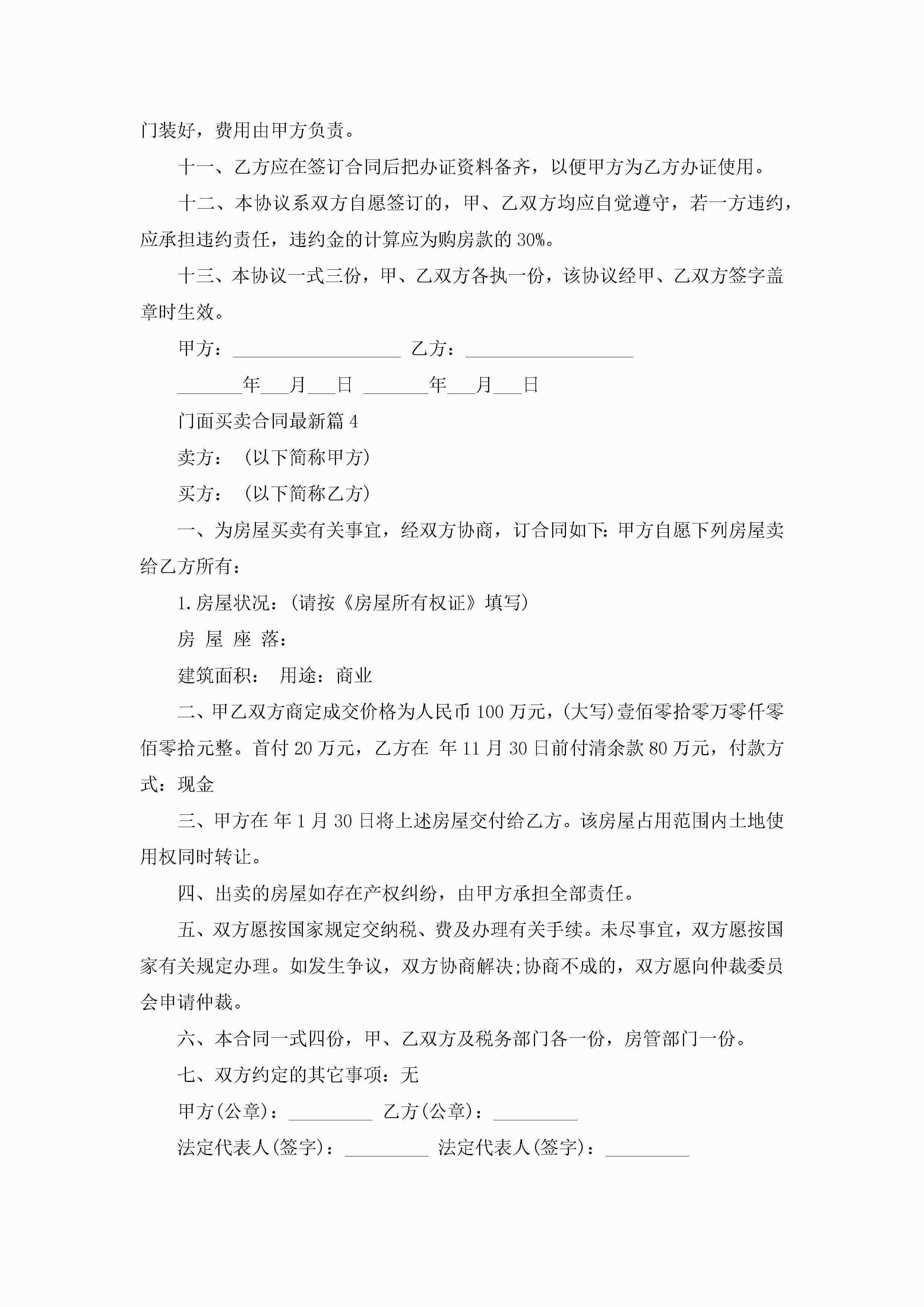 门面买卖合同最新范文jugei3月23日 01:38发布关注227 门面买卖合同最新范文此内容为付费资源,请付费后查看¥10.9 单篇文档限时特惠¥15个人会员开通企业会员开通立即下载无需登陆!可直接快捷下载单个模板付费资源© 版权声明THE ENDWord模板# 实用文档# 实用模板# 合同模板# 买卖合同 如有问题,可点击最底部“联系我们”联系客服 分享QQ空间微博QQ好友海报分享复制链接收藏