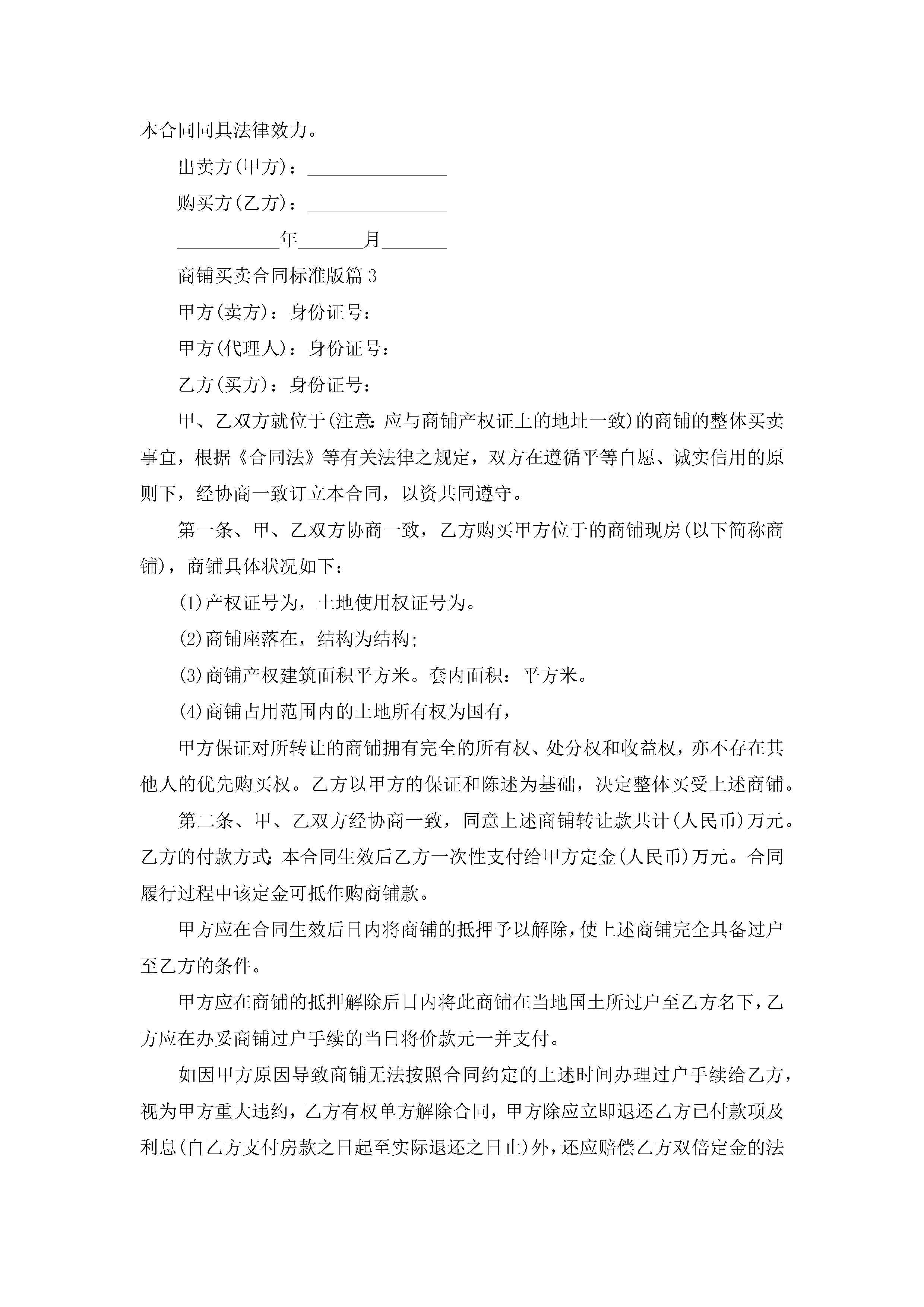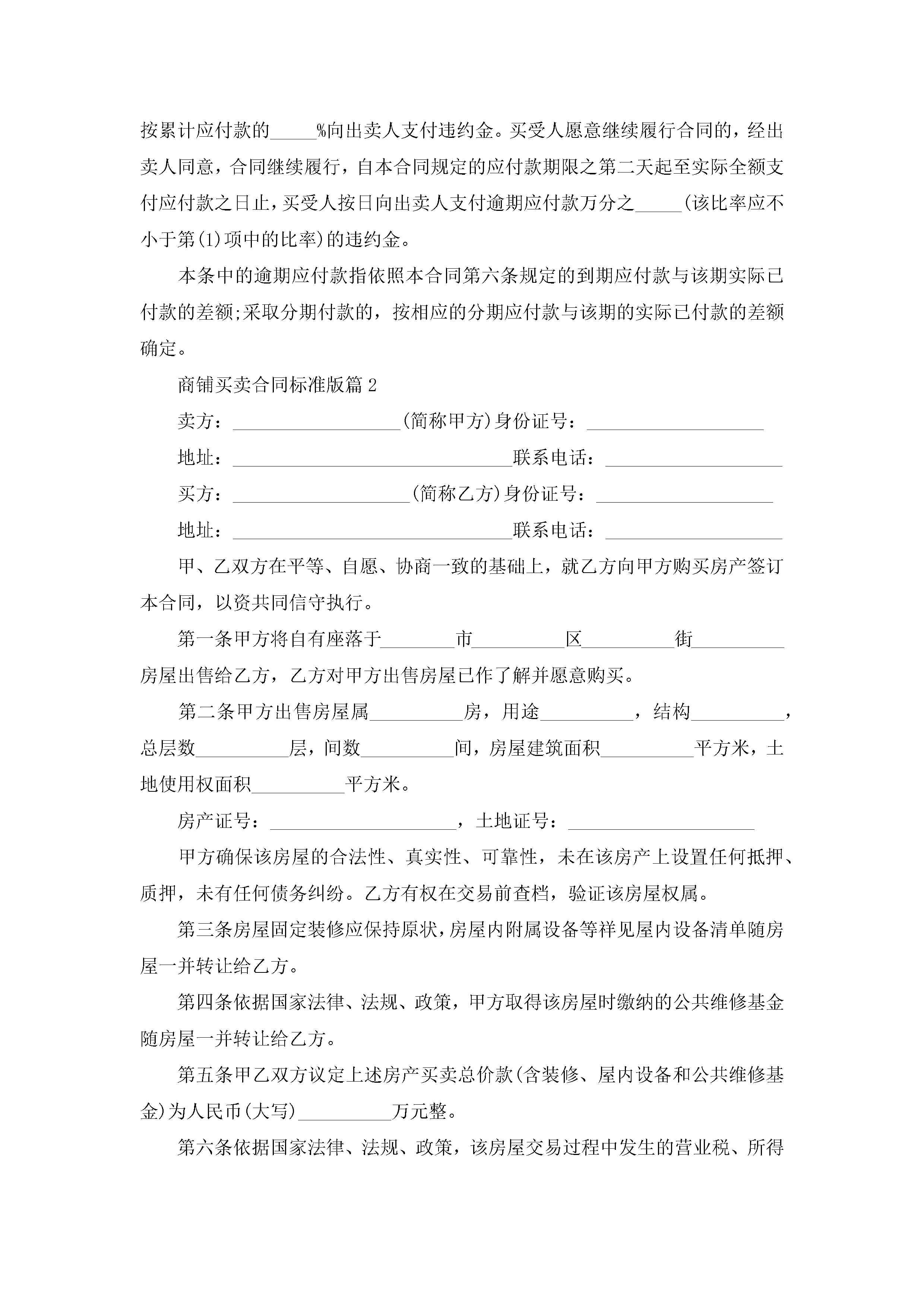 商铺买卖合同最新标准版jugei3月23日 01:38发布关注199 商铺买卖合同最新标准版此内容为付费资源,请付费后查看¥10.9 单篇文档限时特惠¥15个人会员开通企业会员开通立即下载无需登陆!可直接快捷下载单个模板付费资源© 版权声明THE ENDWord模板# 实用文档# 实用模板# 合同模板# 买卖合同 如有问题,可点击最底部“联系我们”联系客服 分享QQ空间微博QQ好友海报分享复制链接收藏