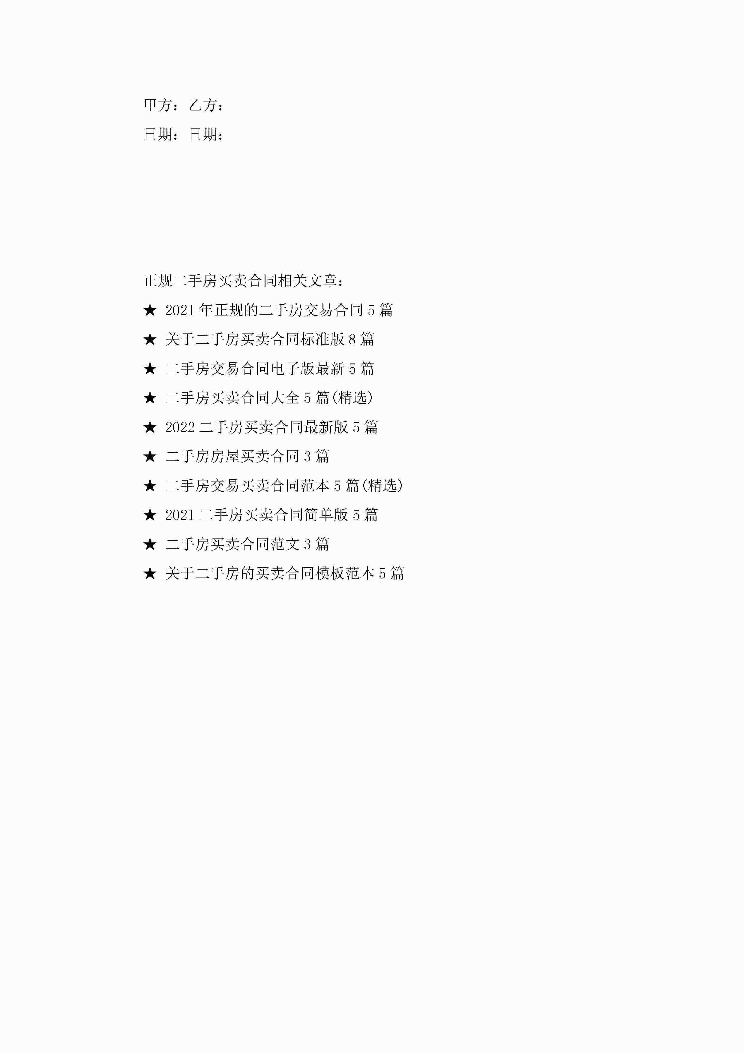 正规二手房买卖合同范文jugei3月23日 01:38发布关注212 正规二手房买卖合同范文此内容为付费资源,请付费后查看¥10.9 单篇文档限时特惠¥15个人会员开通企业会员开通立即下载无需登陆!可直接快捷下载单个模板付费资源© 版权声明THE ENDWord模板# 实用文档# 实用模板# 合同模板# 买卖合同 如有问题,可点击最底部“联系我们”联系客服 分享QQ空间微博QQ好友海报分享复制链接收藏