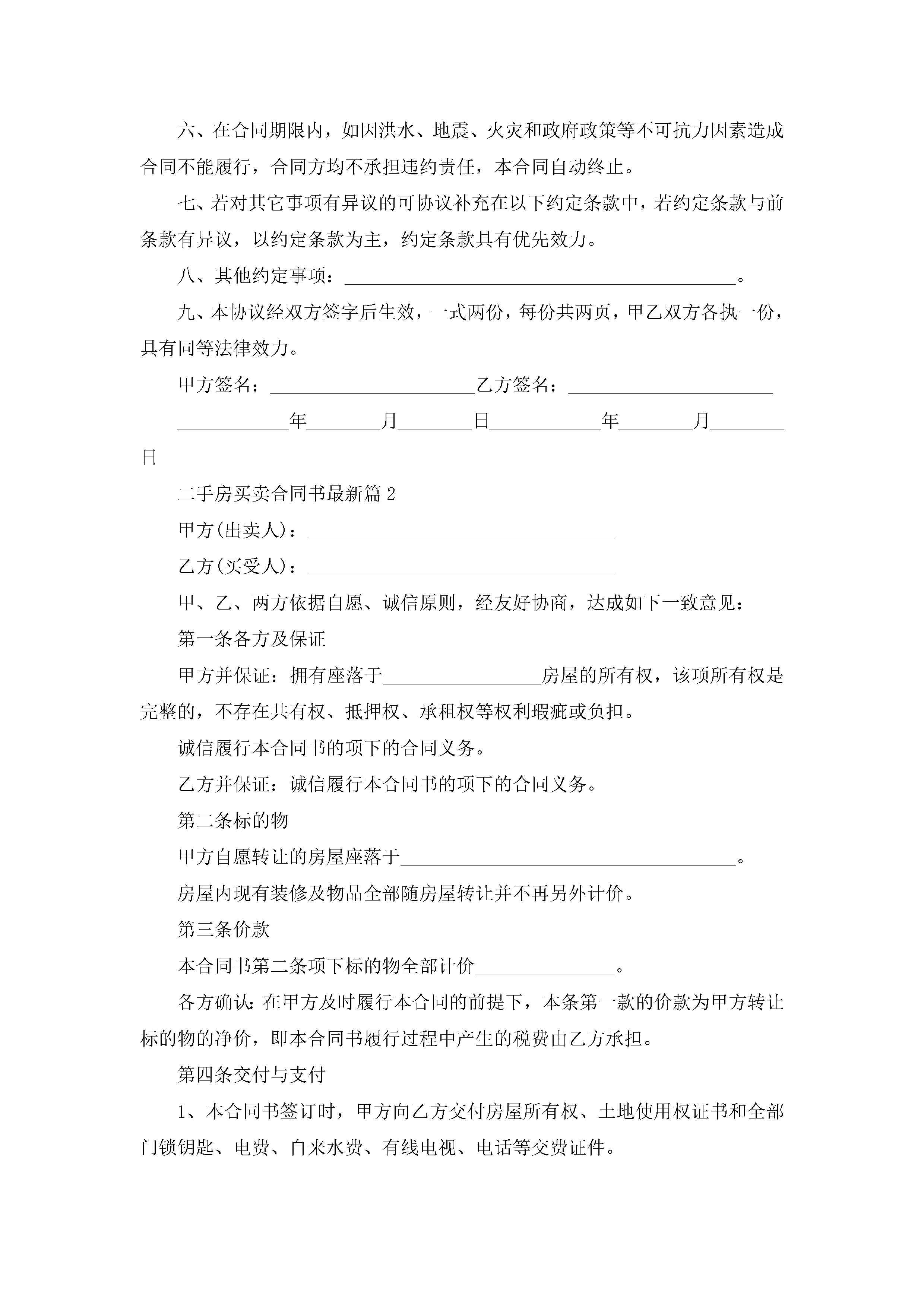 二手房买卖合同书最新范文jugei3月23日 01:38发布关注188 二手房买卖合同书最新范文此内容为付费资源,请付费后查看¥10.9 单篇文档限时特惠¥15个人会员开通企业会员开通立即下载无需登陆!可直接快捷下载单个模板付费资源© 版权声明THE ENDWord模板# 实用文档# 实用模板# 合同模板# 买卖合同 如有问题,可点击最底部“联系我们”联系客服 分享QQ空间微博QQ好友海报分享复制链接收藏