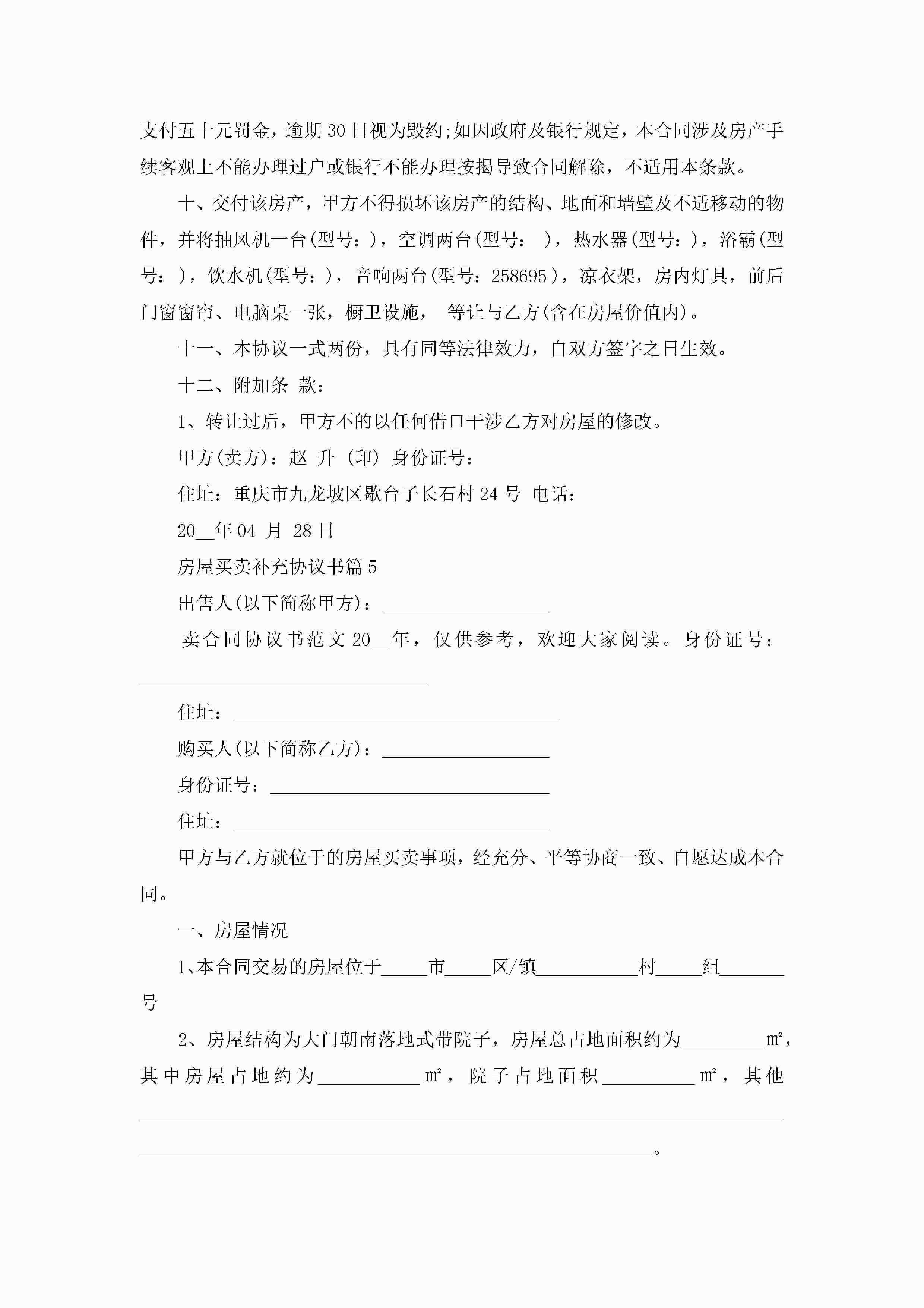 房屋买卖补充协议书模板jugei3月23日 01:38发布关注212 房屋买卖补充协议书模板此内容为付费资源,请付费后查看¥10.9 单篇文档限时特惠¥15个人会员开通企业会员开通立即下载无需登陆!可直接快捷下载单个模板付费资源© 版权声明THE ENDWord模板# 实用文档# 实用模板# 合同模板# 买卖合同 如有问题,可点击最底部“联系我们”联系客服 分享QQ空间微博QQ好友海报分享复制链接收藏