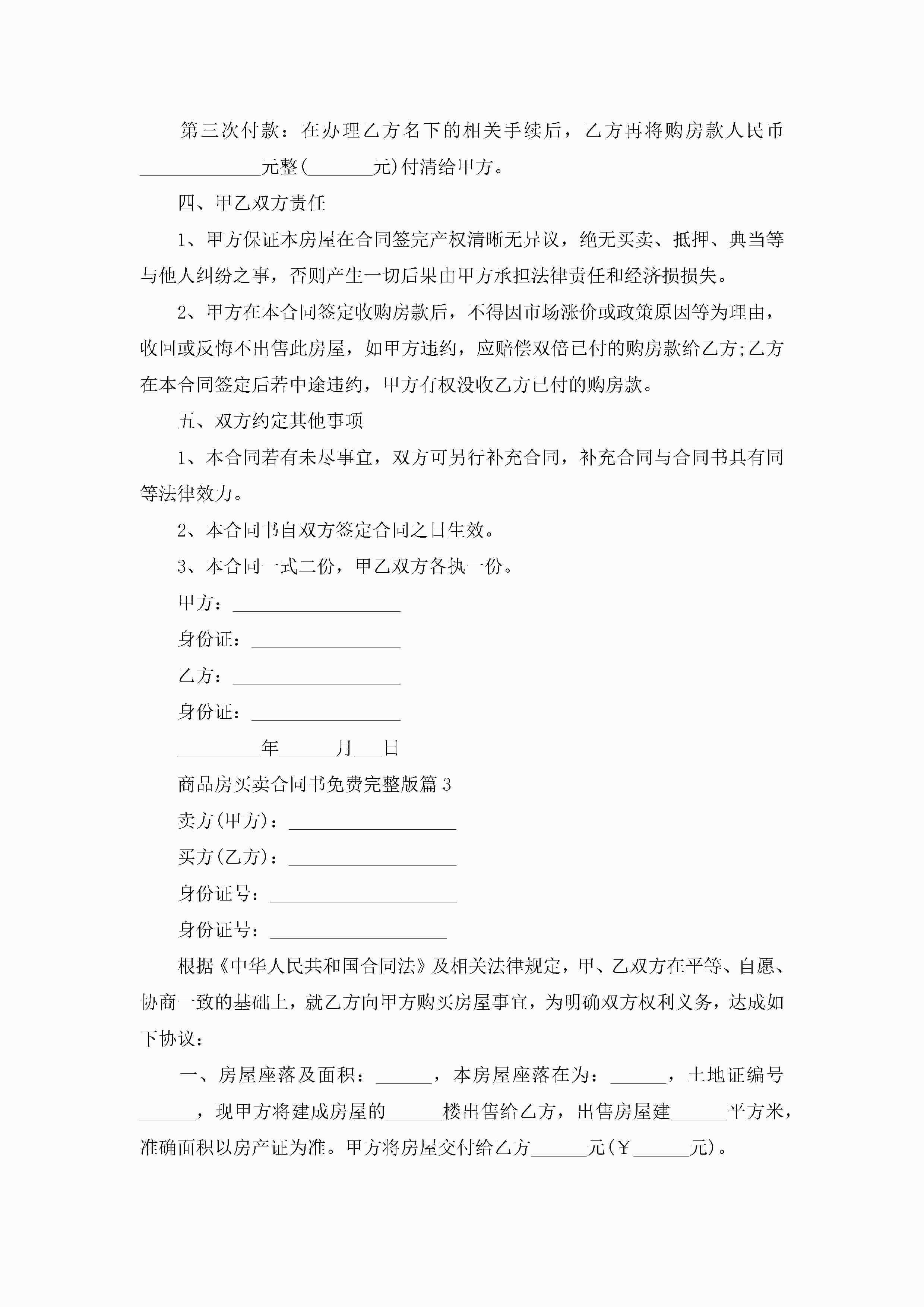 商品房买卖合同书范文免费完整版jugei3月23日 01:38发布关注188 商品房买卖合同书范文免费完整版此内容为付费资源,请付费后查看¥10.9 单篇文档限时特惠¥15个人会员开通企业会员开通立即下载无需登陆!可直接快捷下载单个模板付费资源© 版权声明THE ENDWord模板# 实用文档# 实用模板# 合同模板# 买卖合同 如有问题,可点击最底部“联系我们”联系客服 分享QQ空间微博QQ好友海报分享复制链接收藏