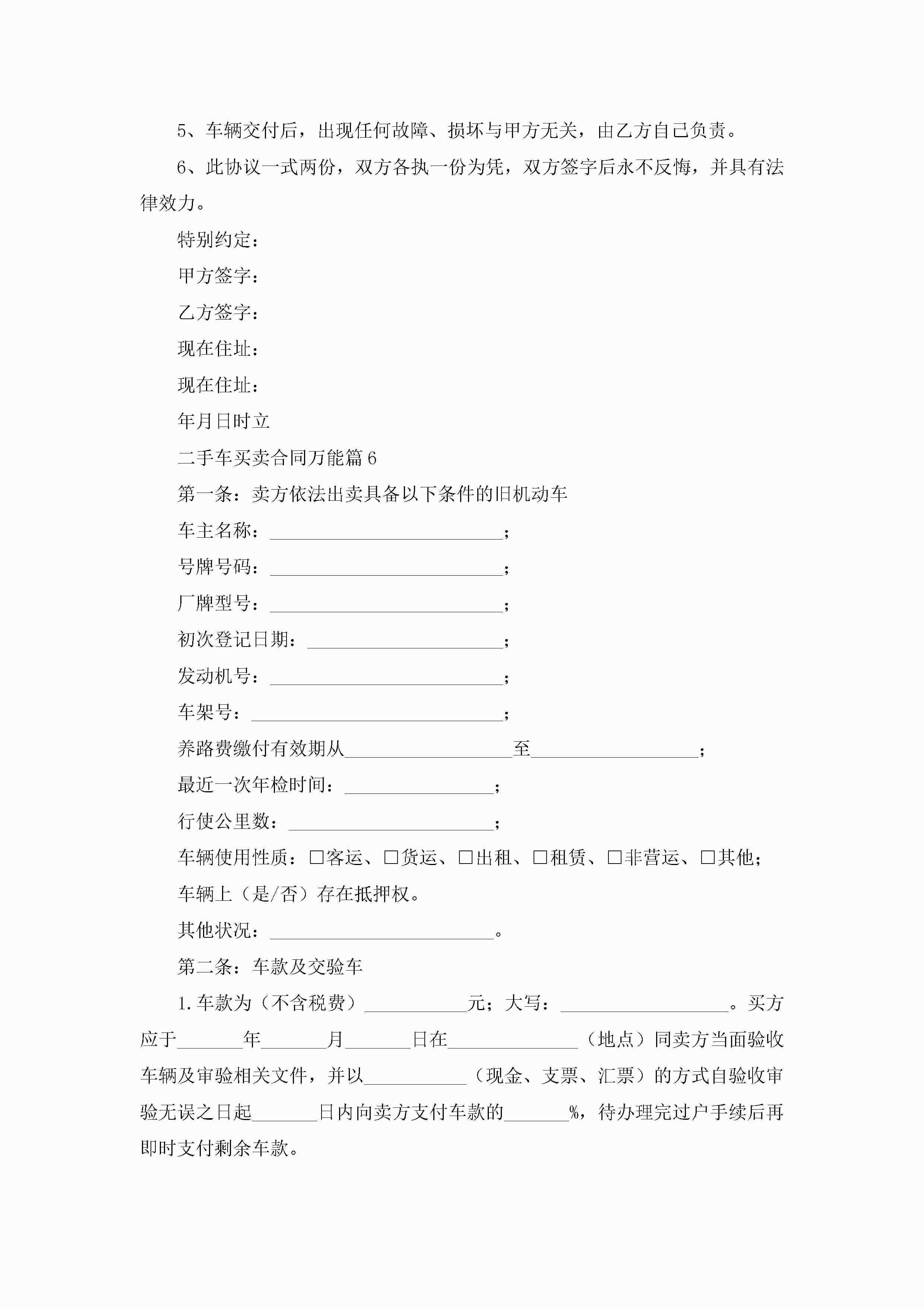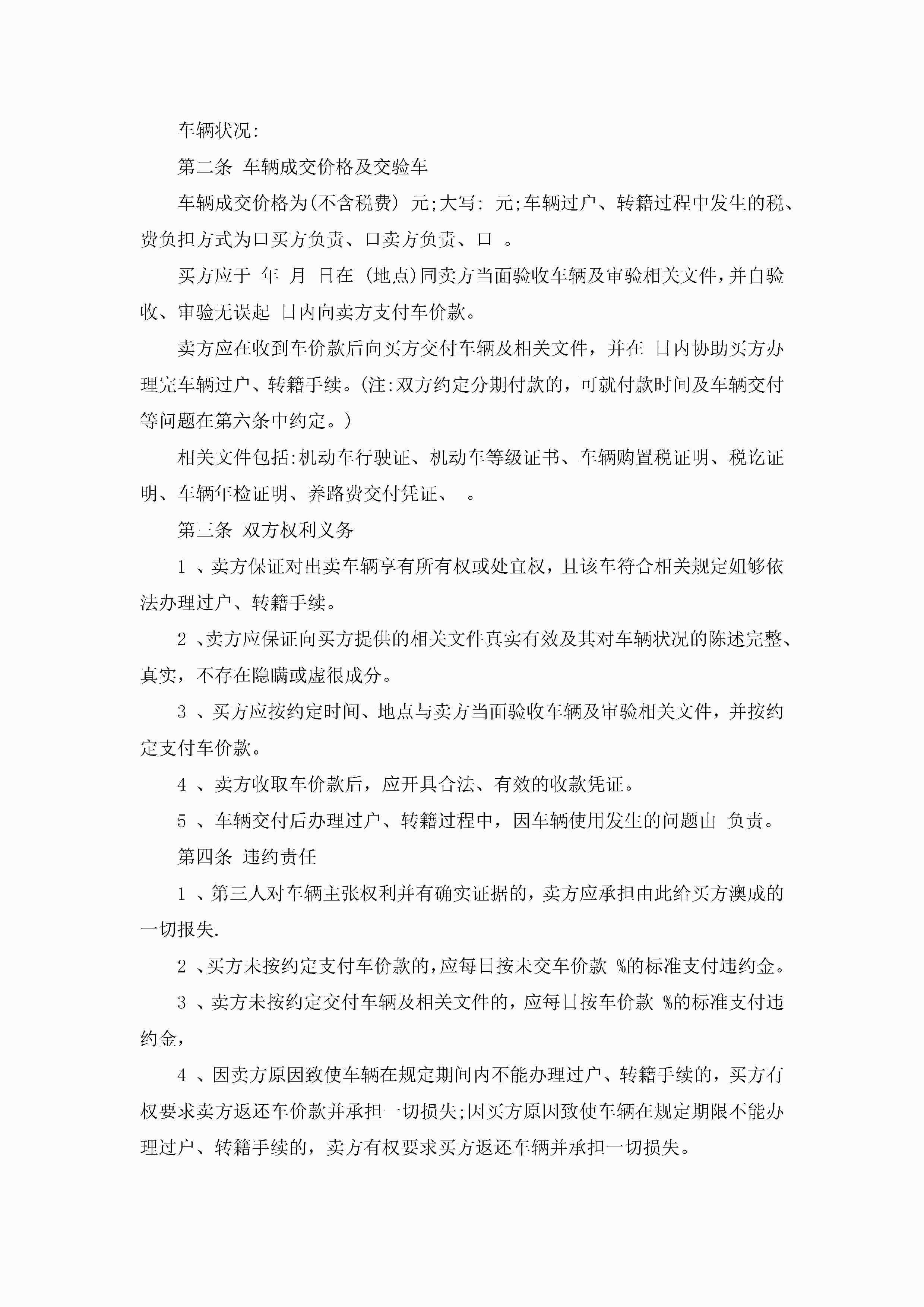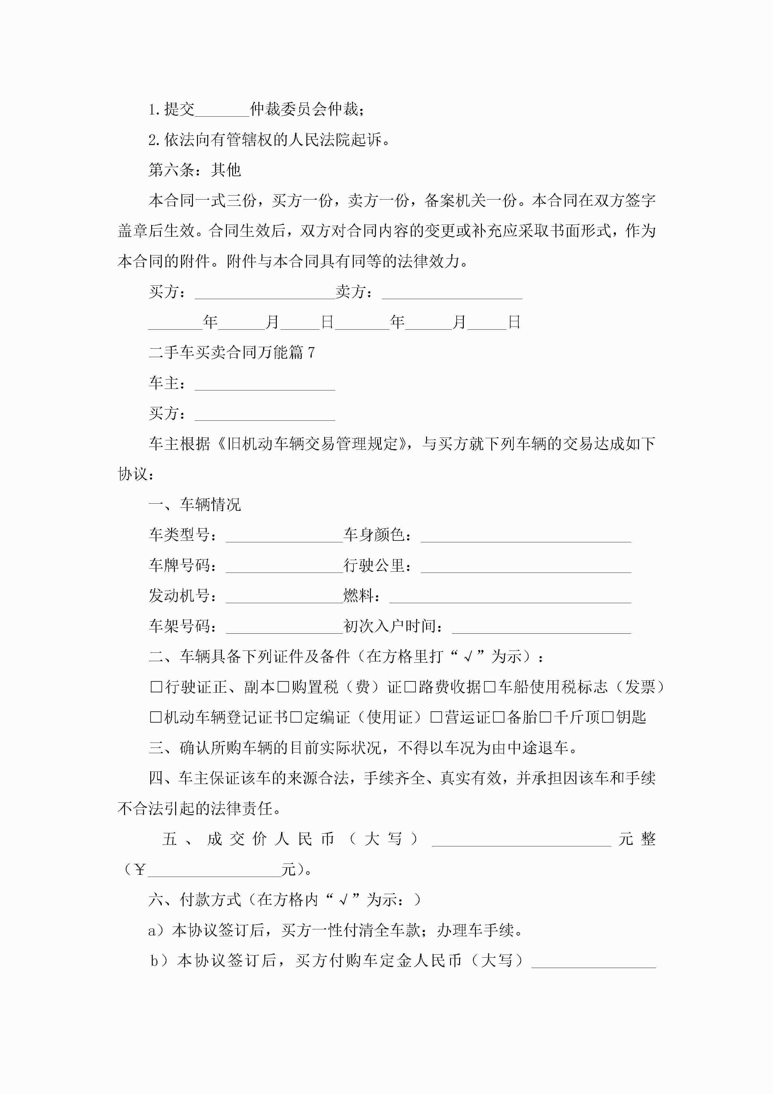 二手车买卖合同万能7篇(精选)jugei3月23日 01:38发布关注222 二手车买卖合同万能7篇(精选)此内容为付费资源,请付费后查看¥10.9 单篇文档限时特惠¥15个人会员开通企业会员开通立即下载无需登陆!可直接快捷下载单个模板付费资源© 版权声明THE ENDWord模板# 实用文档# 实用模板# 合同模板# 买卖合同 如有问题,可点击最底部“联系我们”联系客服 分享QQ空间微博QQ好友海报分享复制链接收藏