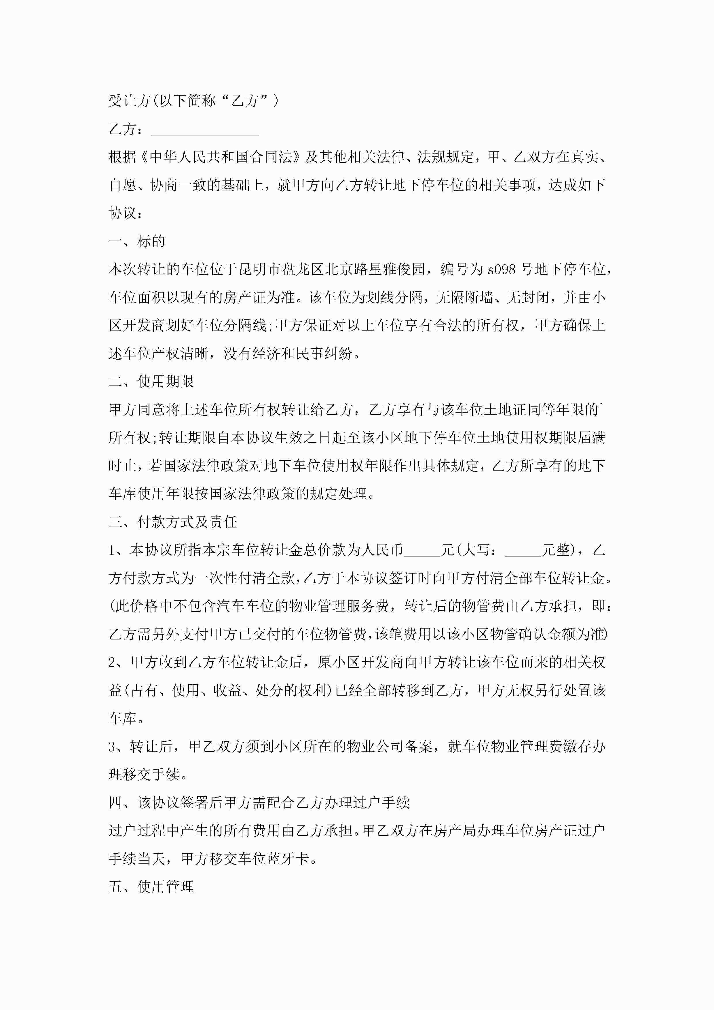 停车位买卖合同【7篇】jugei3月23日 01:38发布关注188 停车位买卖合同【7篇】此内容为付费资源,请付费后查看¥10.9 单篇文档限时特惠¥15个人会员开通企业会员开通立即下载无需登陆!可直接快捷下载单个模板付费资源© 版权声明THE ENDWord模板# 实用文档# 实用模板# 合同模板# 买卖合同 如有问题,可点击最底部“联系我们”联系客服 分享QQ空间微博QQ好友海报分享复制链接收藏