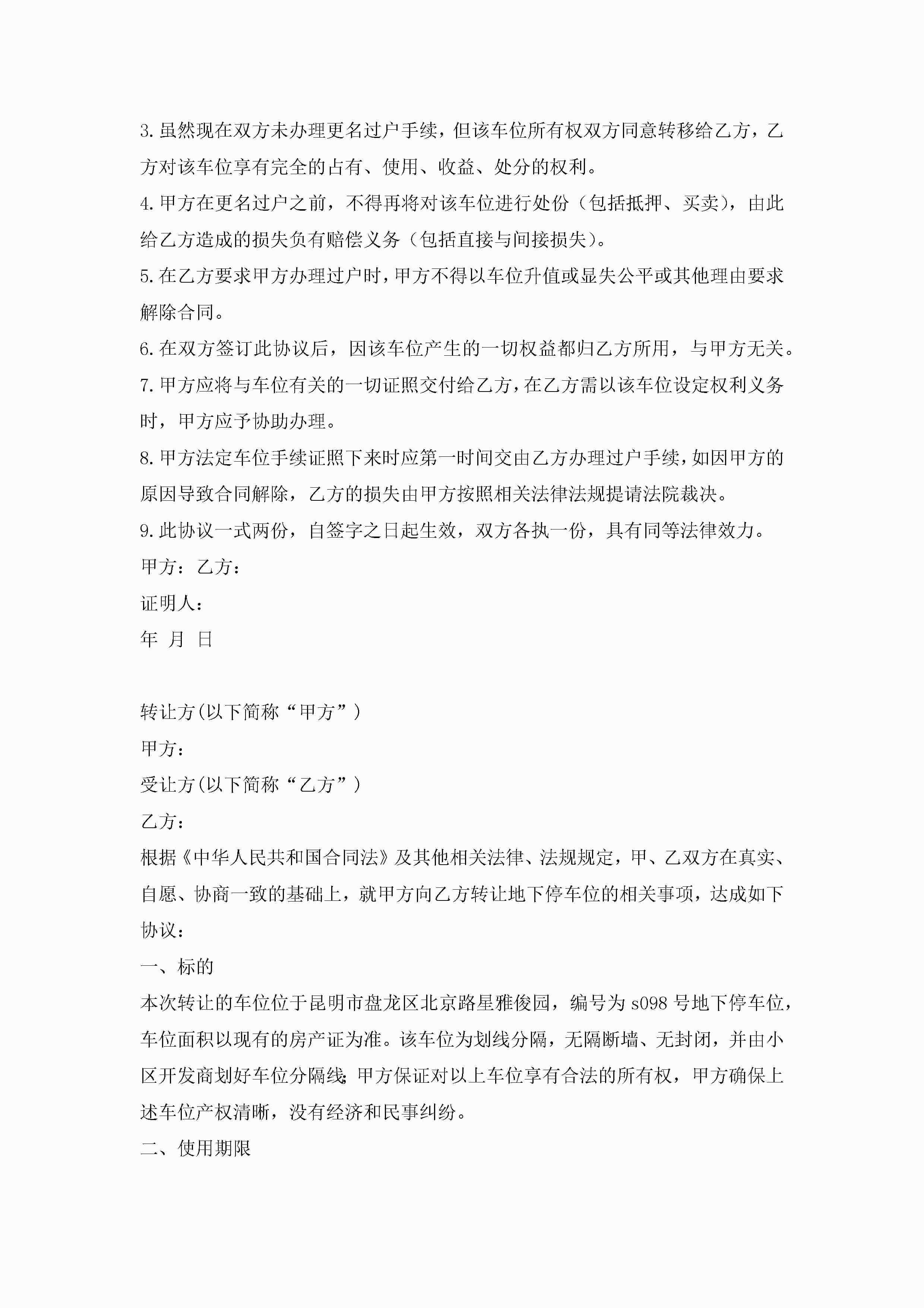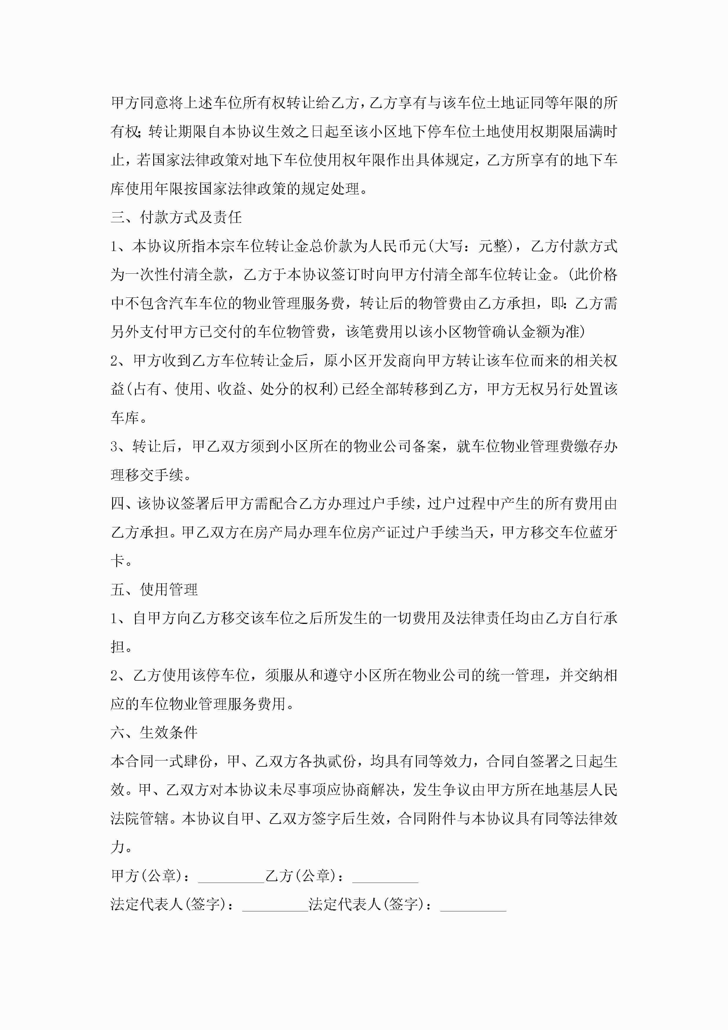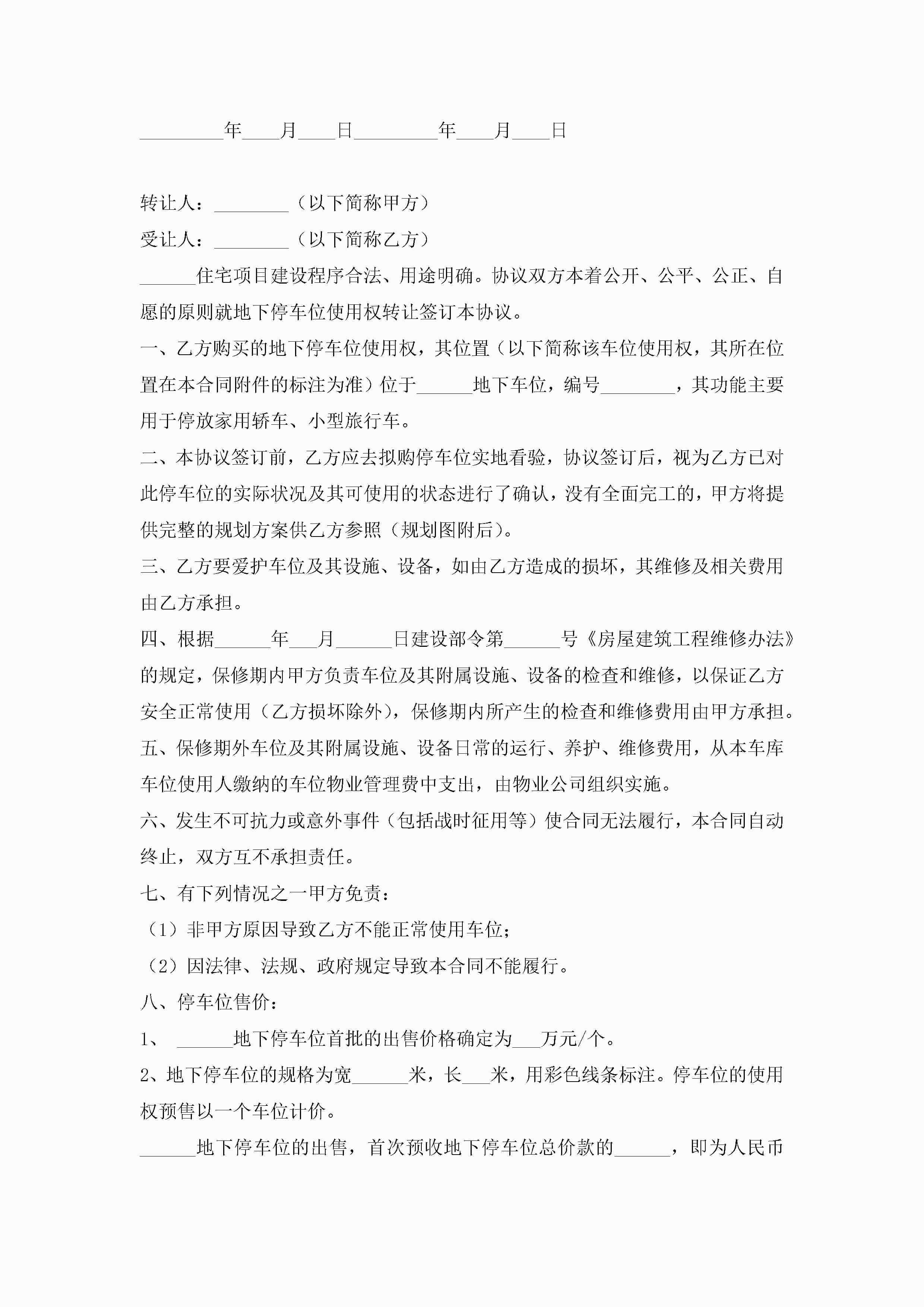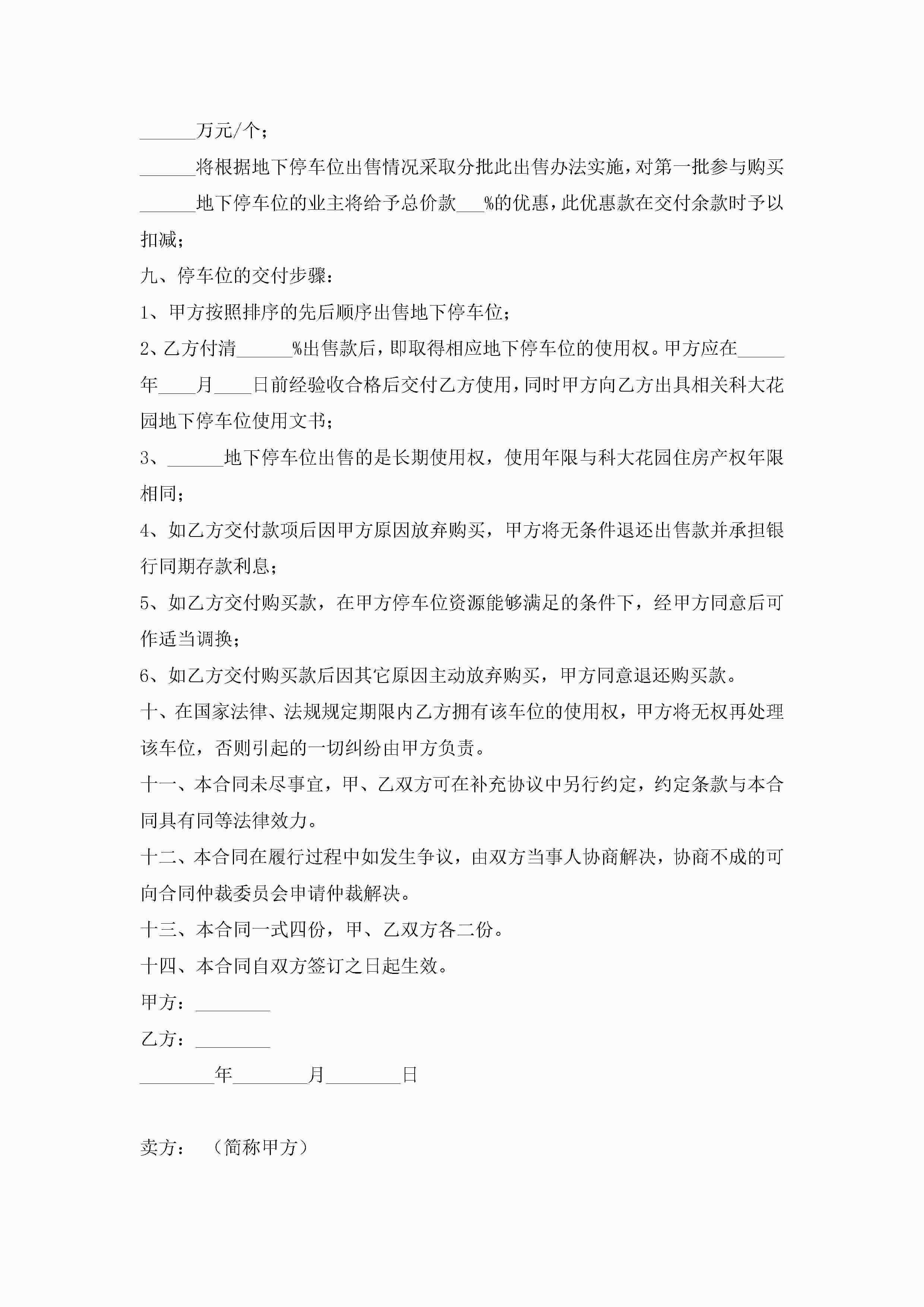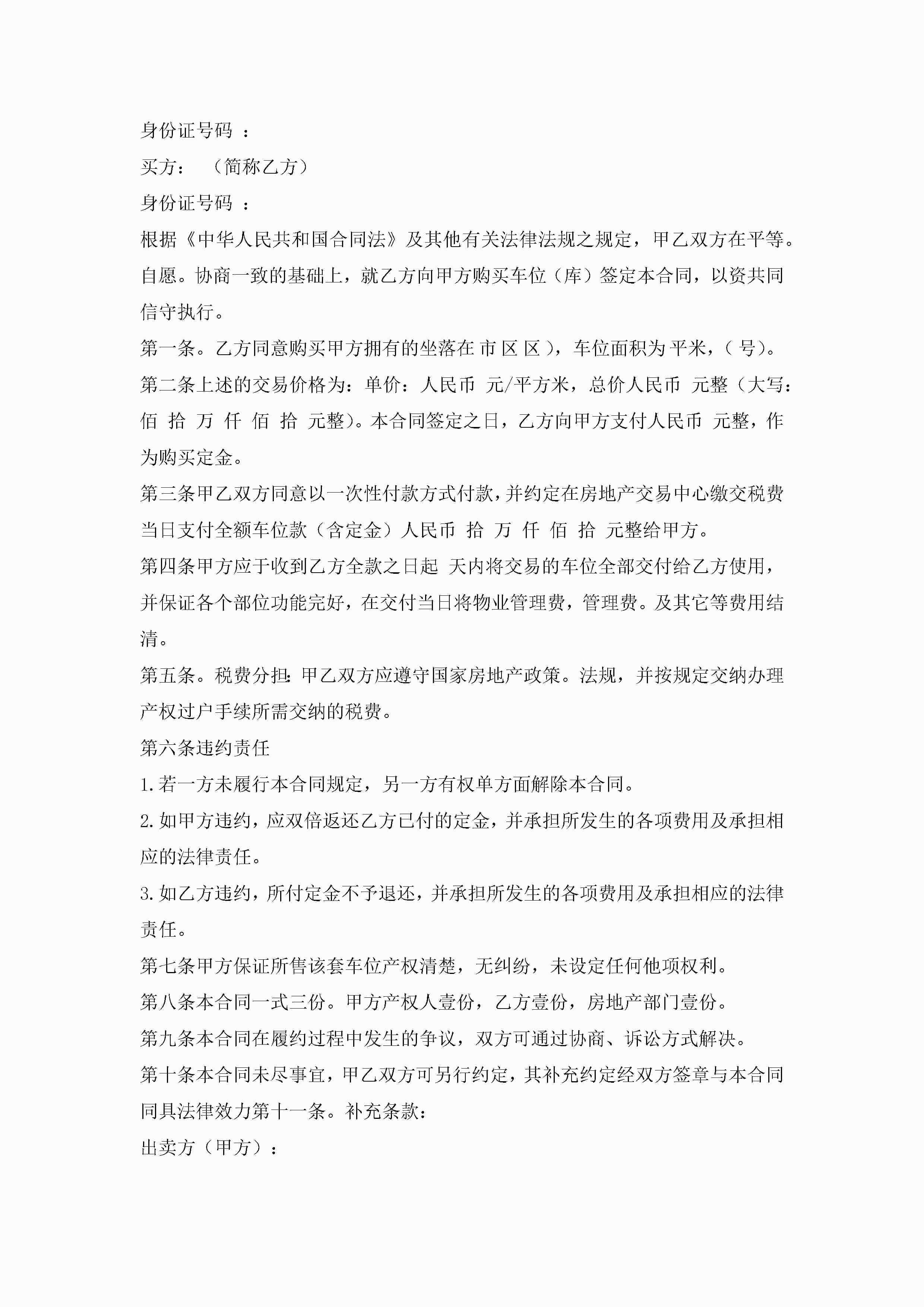 车位买卖合同协议书7篇(实用)jugei3月23日 01:38发布关注251 车位买卖合同协议书7篇(实用)此内容为付费资源,请付费后查看¥10.9 单篇文档限时特惠¥15个人会员开通企业会员开通立即下载无需登陆!可直接快捷下载单个模板付费资源© 版权声明THE ENDWord模板# 实用文档# 实用模板# 合同模板# 买卖合同 如有问题,可点击最底部“联系我们”联系客服 分享QQ空间微博QQ好友海报分享复制链接收藏